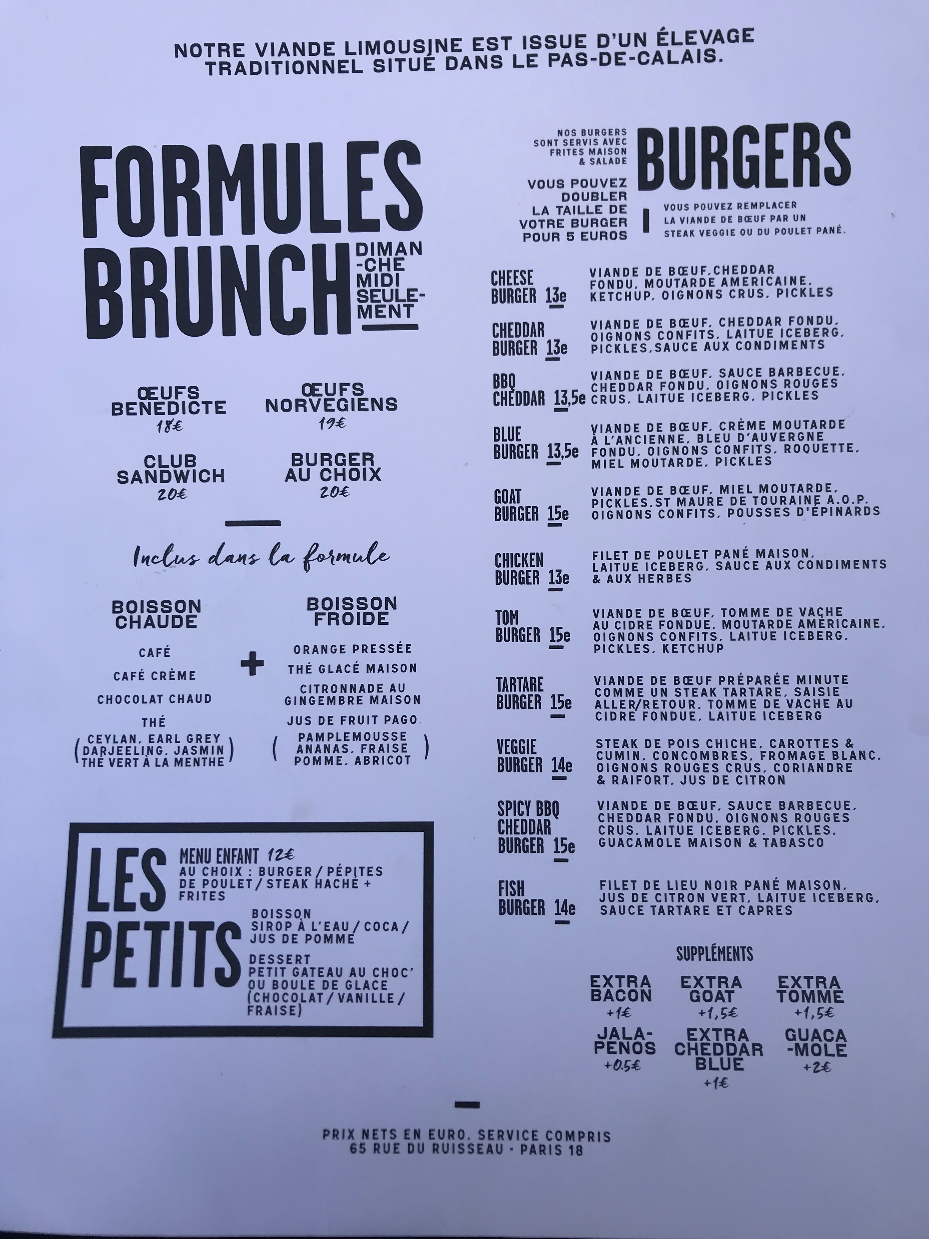 Pour une première visite dans ce restaurant j’ai opté pour le menu brunch du dimanche midi à 20€. Le burger Goat était super, pas trop gras ni lourd, le goût est très bon et les produits sont de qualité, je recommande ce burger.