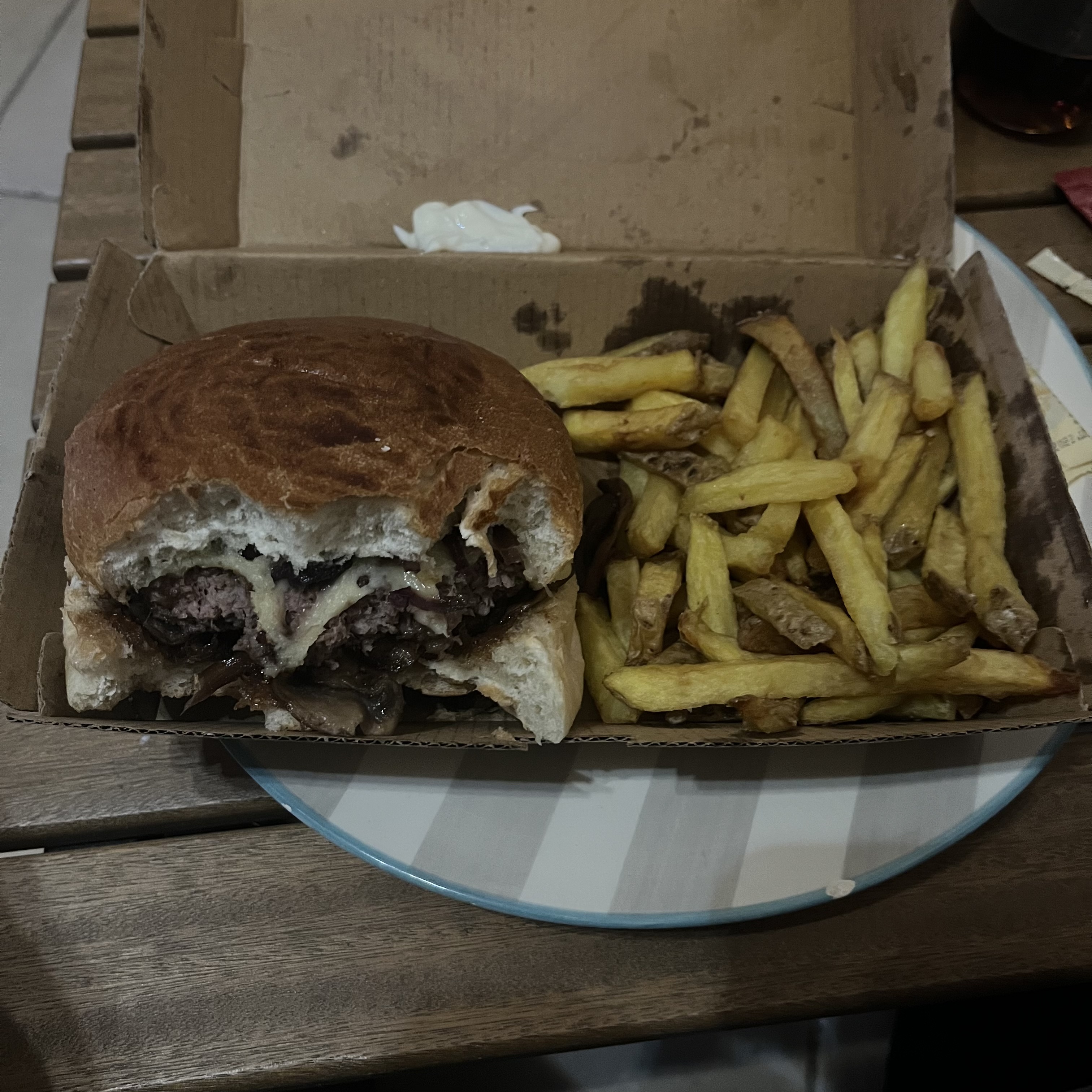 Très très bon burger ainsi que ces frites Leur viande direct du boucher et leur frite maison Enfin un burger autentik Merci au rustik