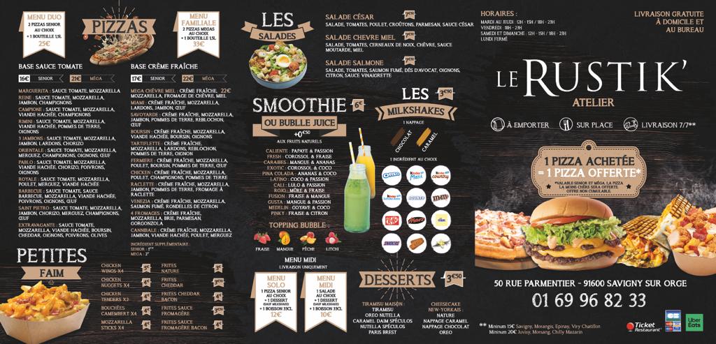 Super les burgers, la viande, les frites tous et super bon bravo le rustik l'atelier et bon courage à vous en ces temps difficiles