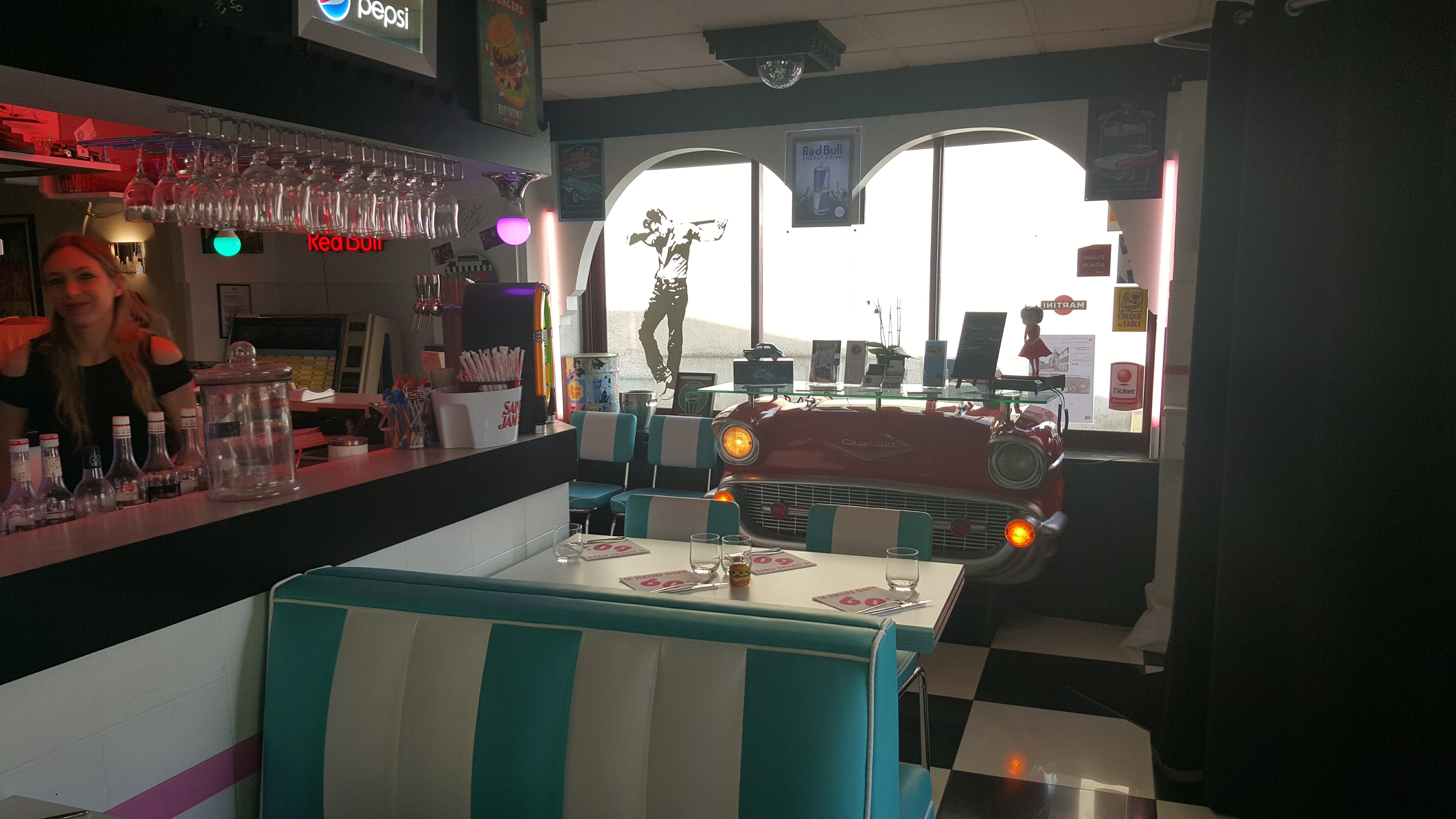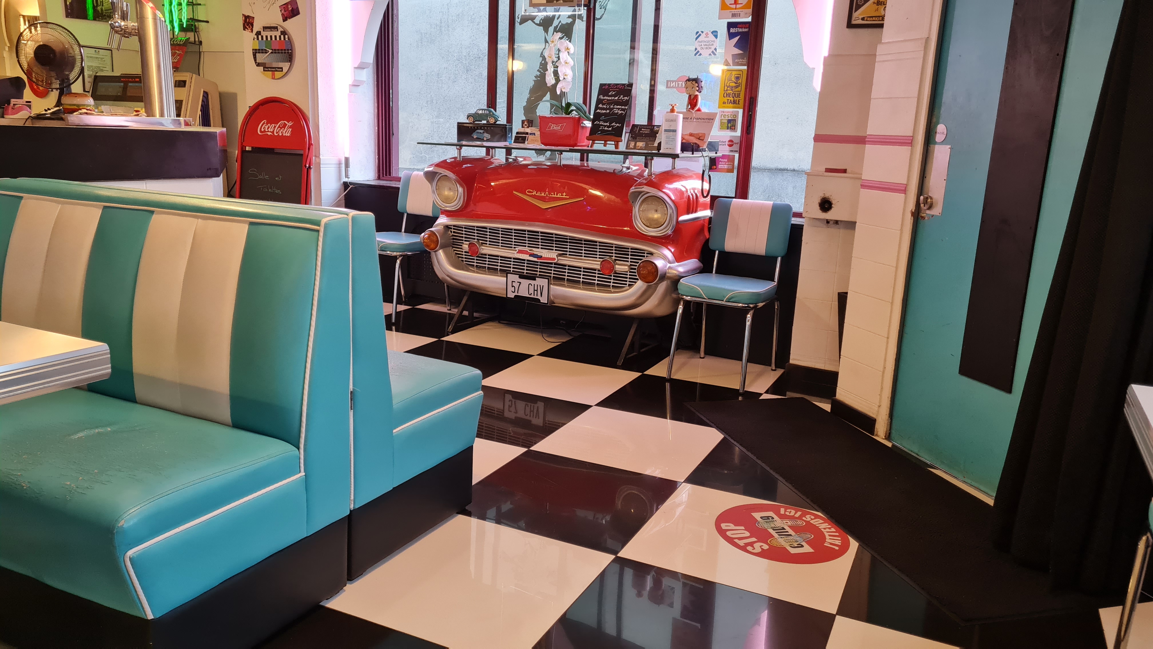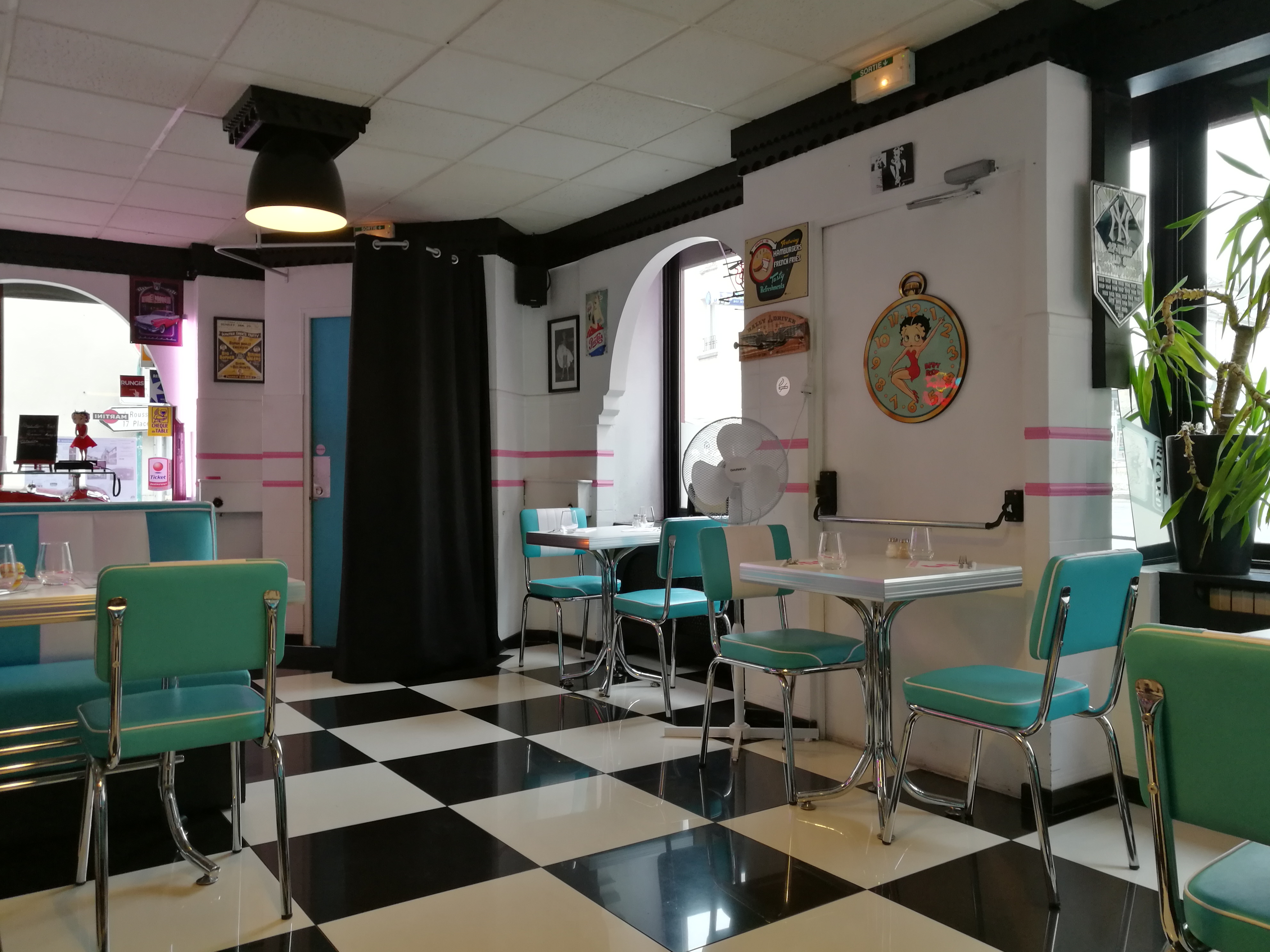 La déco de ce restaurant est très sympa : année 60. Très bon service, très bon burger. Pensez à réserver.