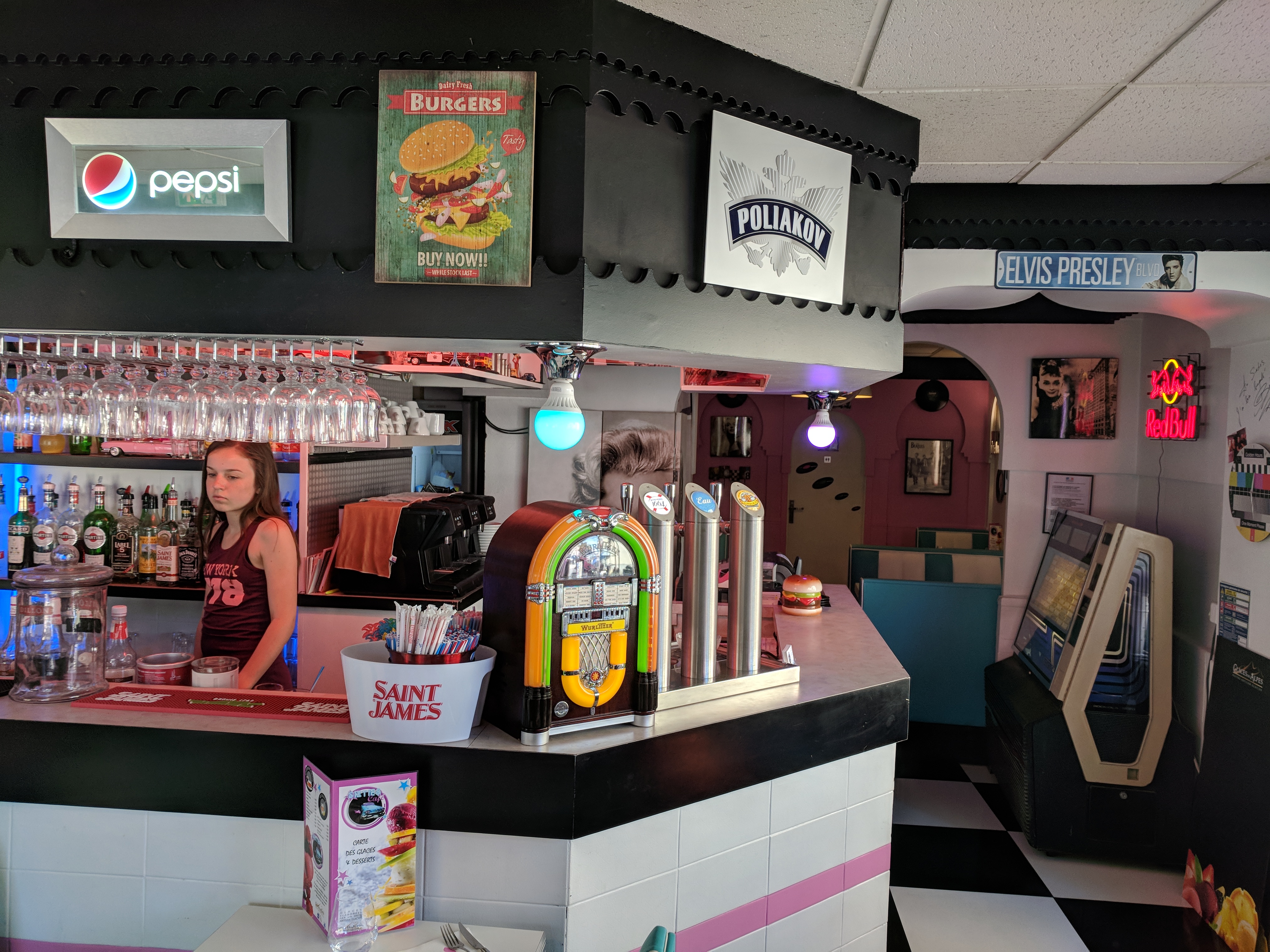 Une décoration soignée qui mets dans l'ambiance des diners américains. Les burgers sont délicieux et copieux. Chaque produit est de qualité. Les frites sont fraiches et très bonnes. Et petit plus pour les glaces qui sont à tomber par terre. Une bonne adresse que nous recommandons.