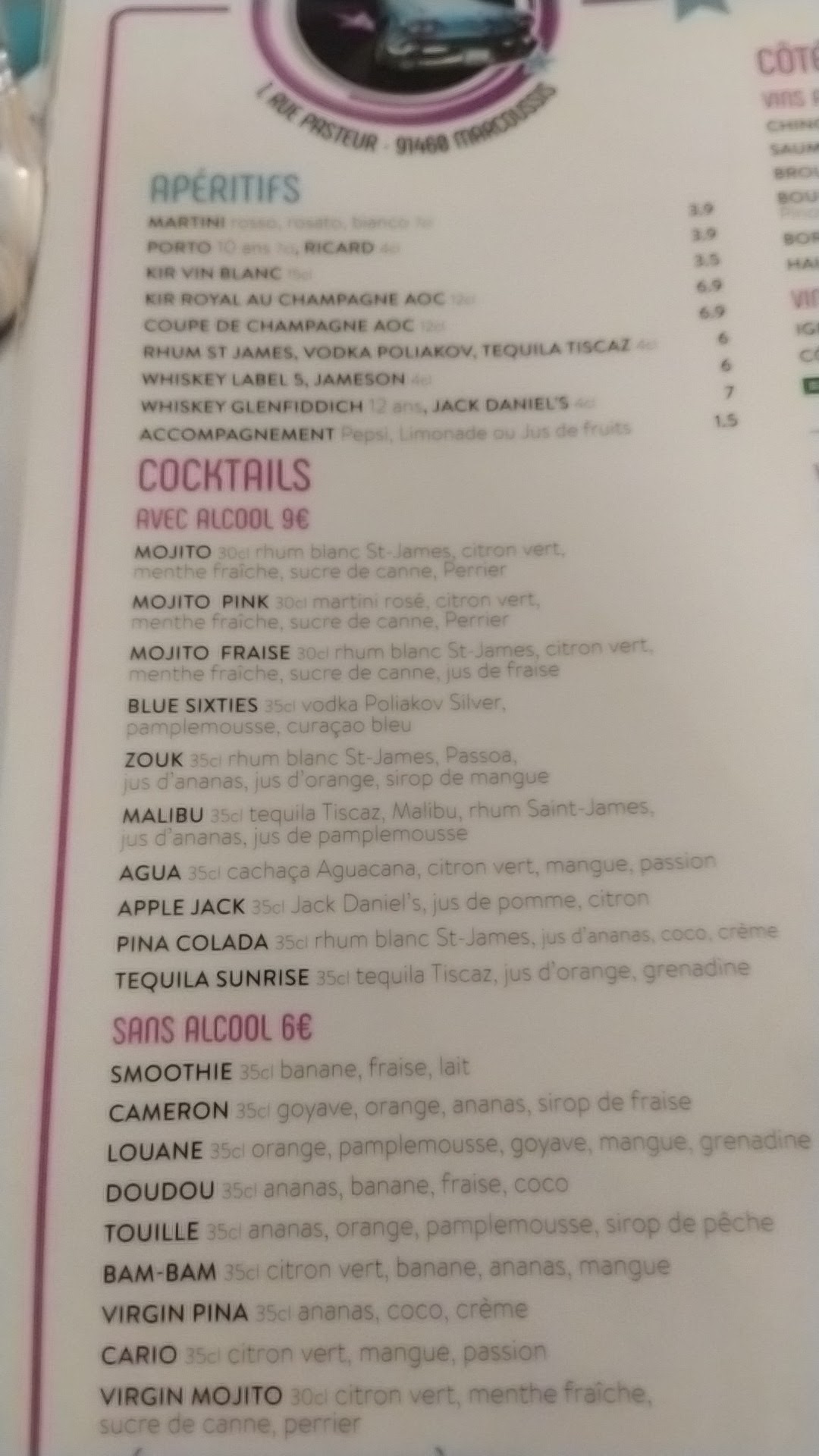 - ✔️ Cocktails et apéritifs
