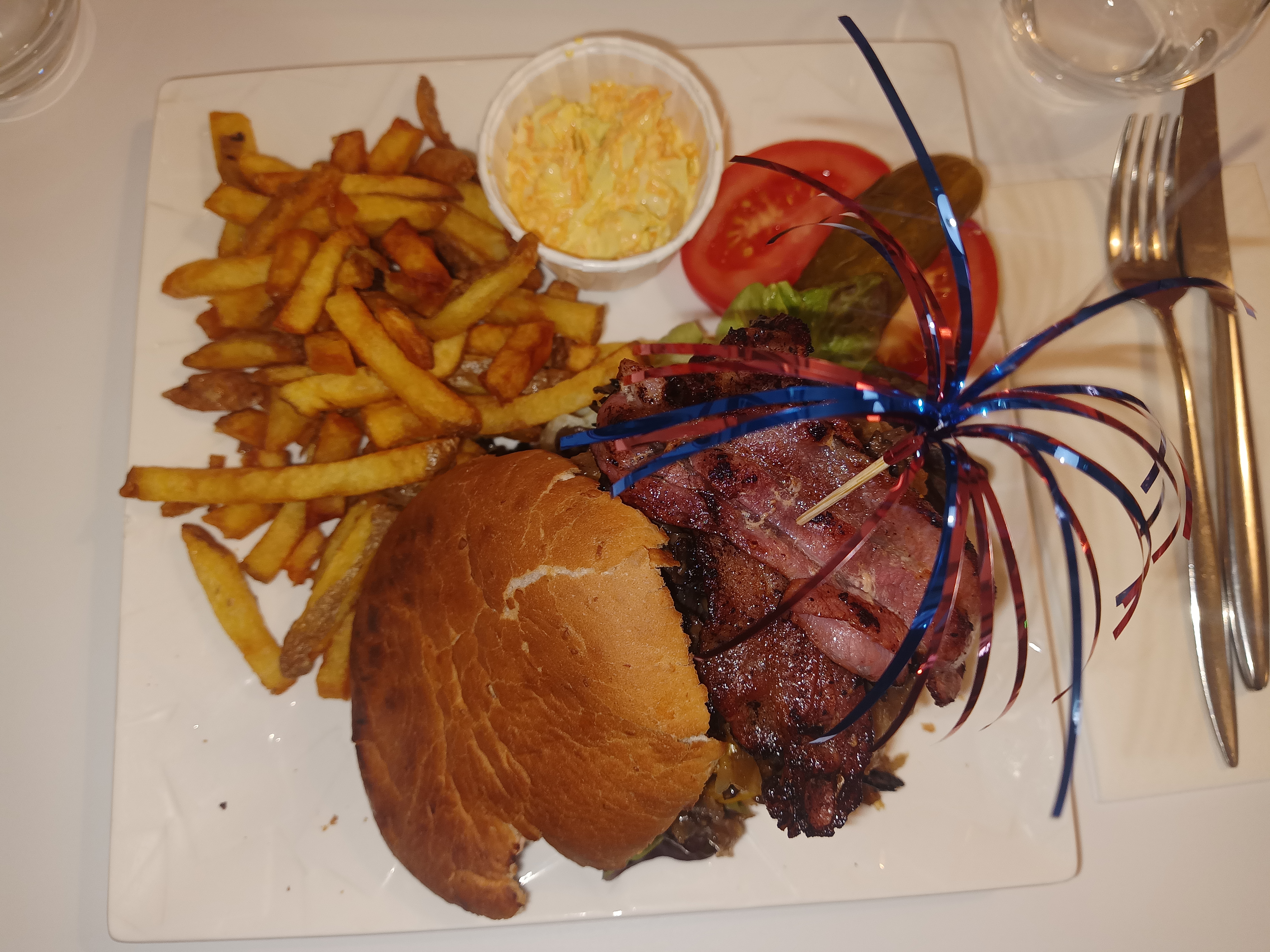 C'est plutôt copieux. Donc évitez de prendre une entrée sinon vous aurez du mal à finir votre hamburger. Le restaurant n'est pas climatisé et les jours de très forte chaleur l'ambiance est un peu surchauffée.