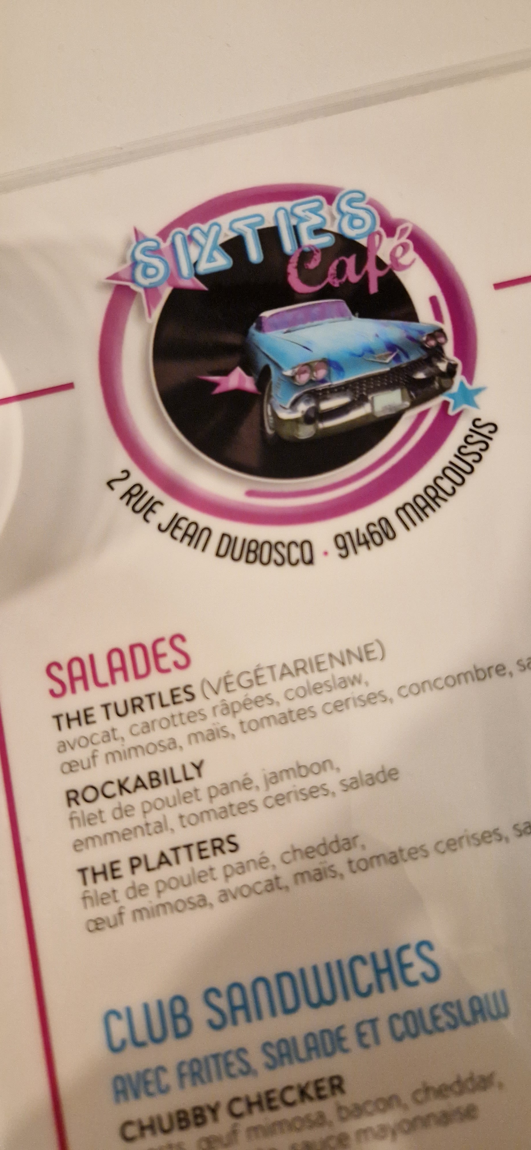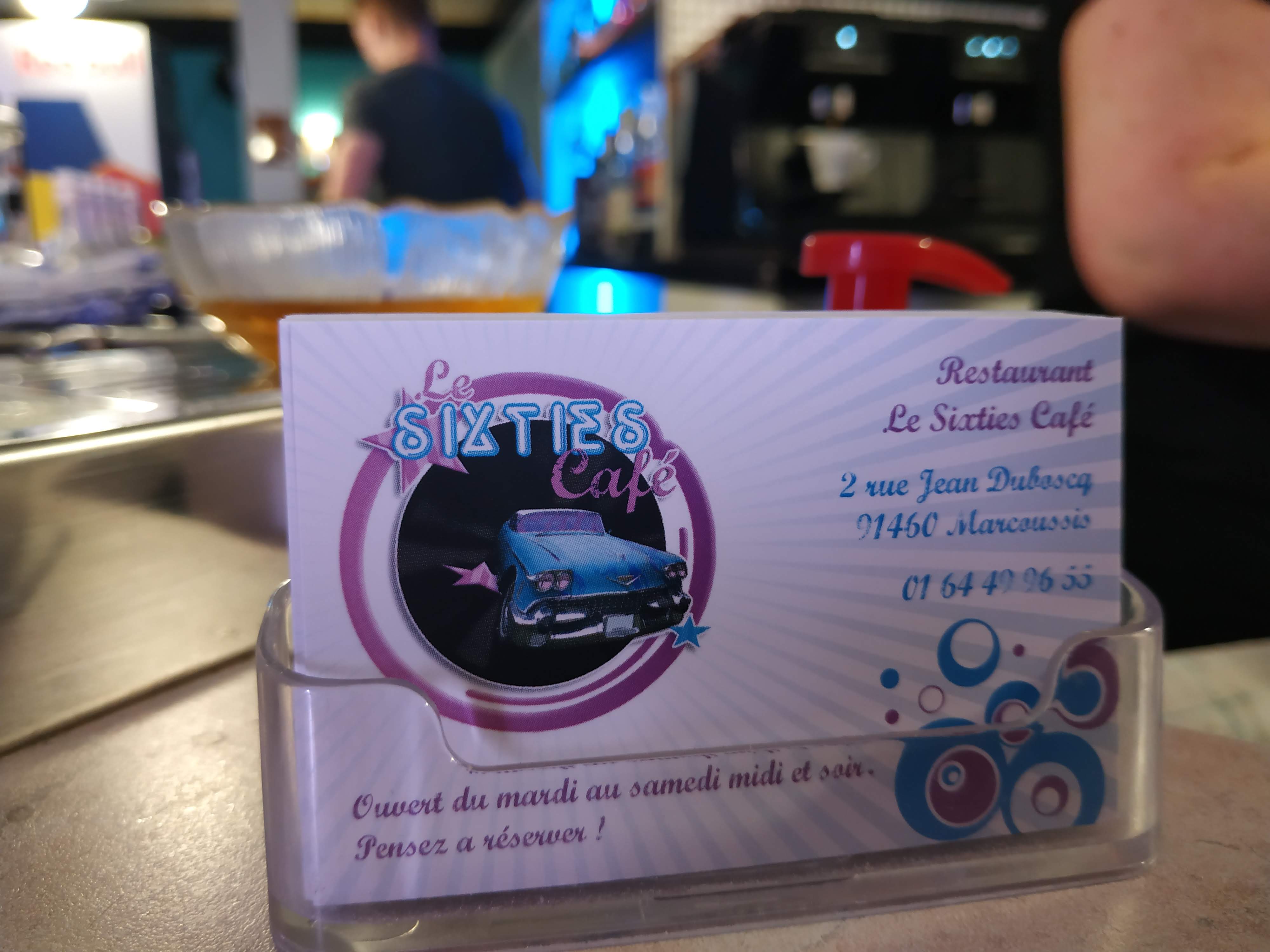 Voici toutes les informations sur le Restaurant de hamburgers Le Sixties Café qui ce trouve au 2 Rue Jean Duboscq, 91460 Marcoussis (91). Sur cette fiche vous trouverez les photos, l'adresse, les horaires d'ouverture, le numero de téléphone et les avis clients.Vous pouvez églement rédiger un avis si vous le souhaitez en bas de page.