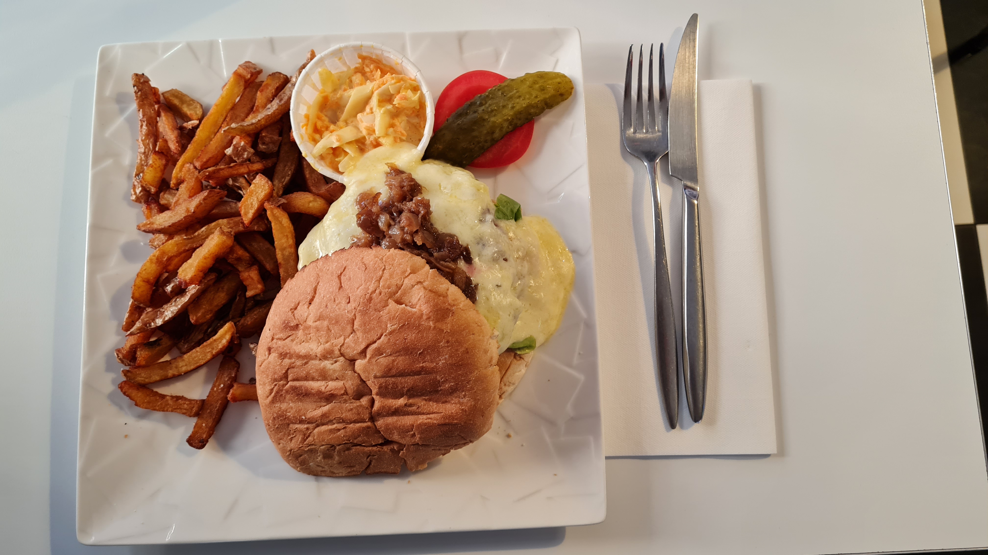 Première vente à emporter cette semaine et c’était délicieux ! Le burger comme les frites, tout comme le coleslaw et la mousse au chocolat. La propriétaire est très sympathique. J’y reviendrai sans aucun doute.