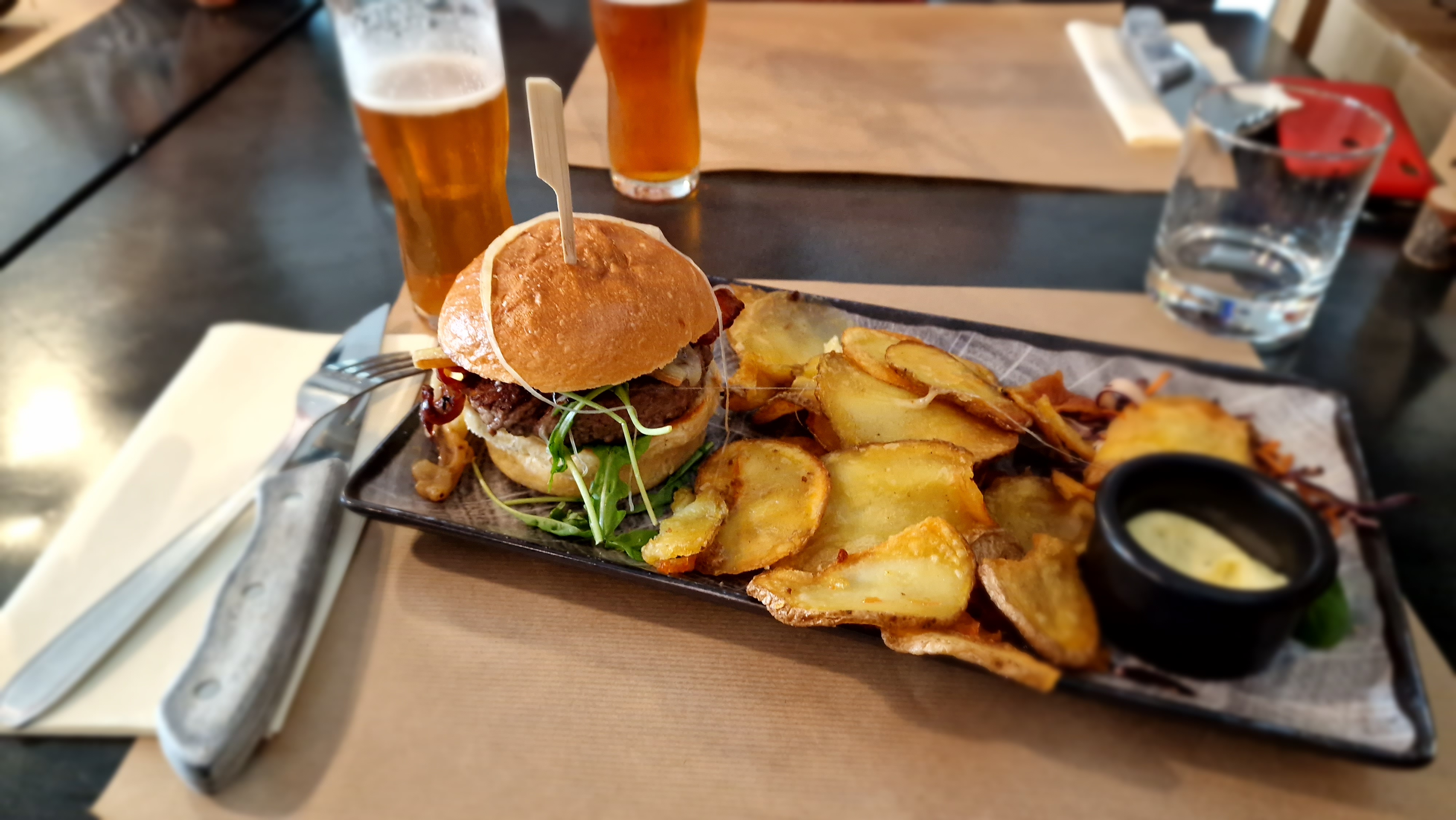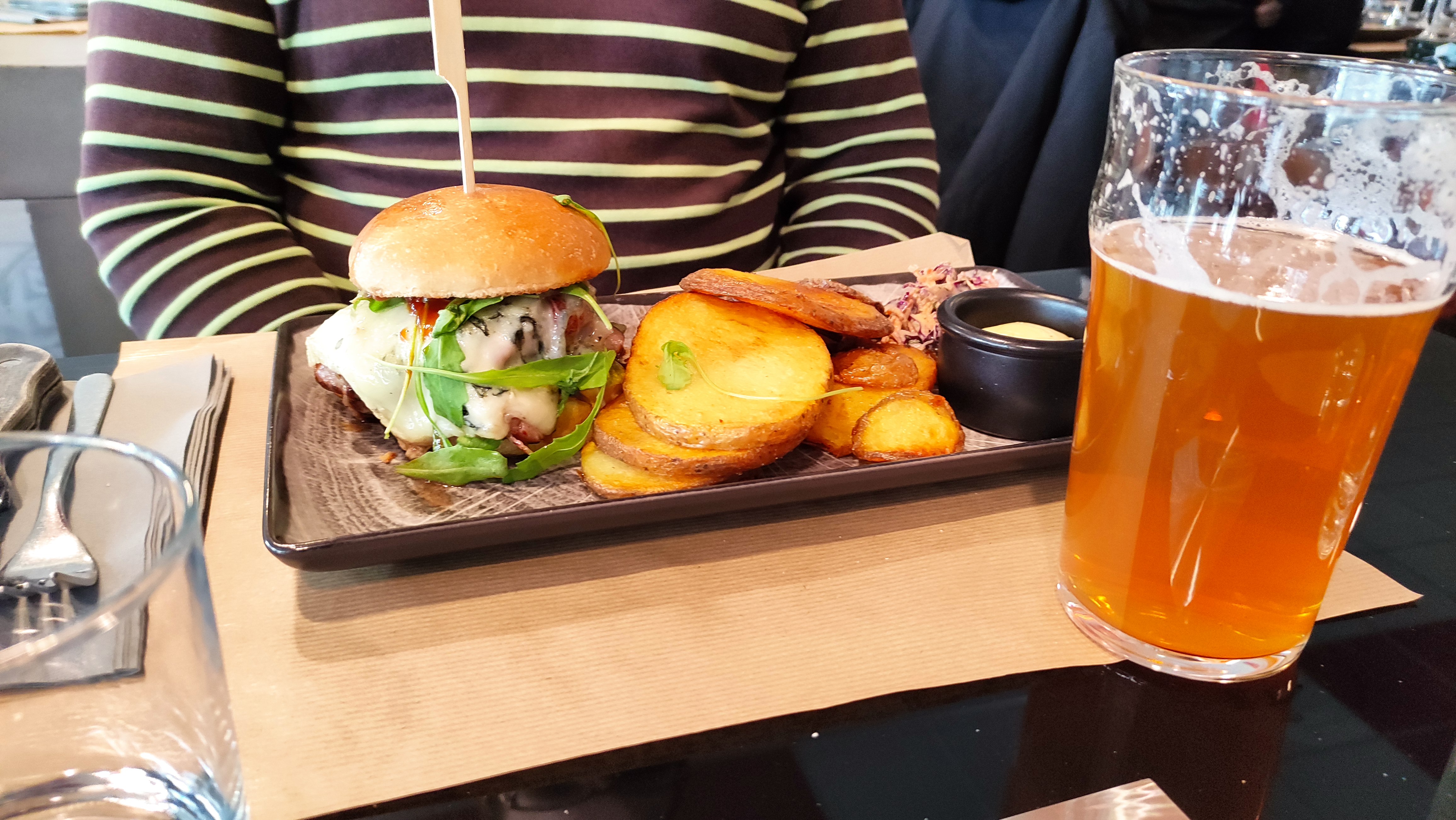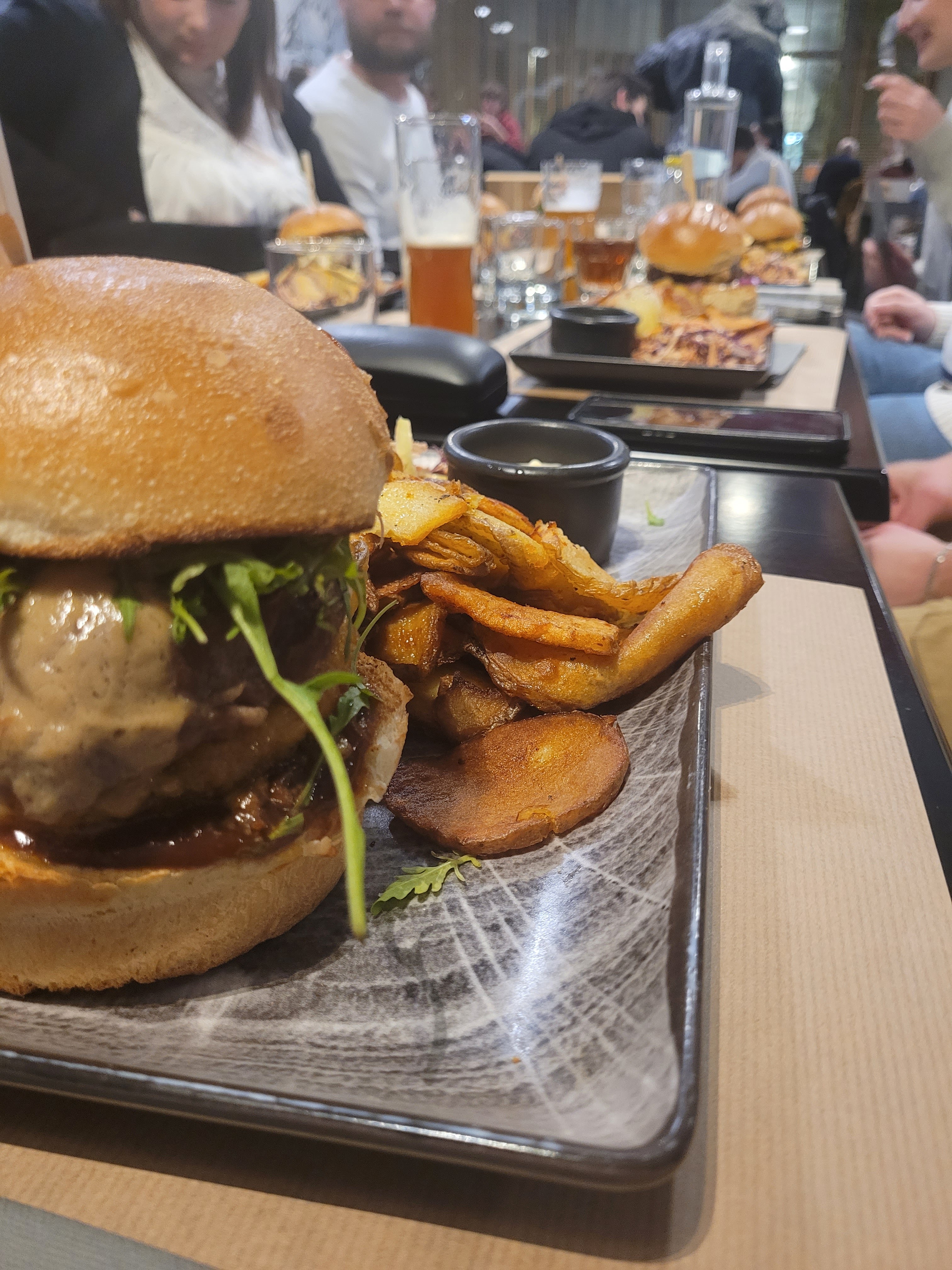 Un service au top, avec un personnel souriant et très attentifs quant aux allergies et intolerances. Bières et vin très bons, cocktail sans alcool bien punchy, des burgers copieux et savoureux sans parler d'un dessert tout aussi extra. Que du positif, on a passé un excellent repas !