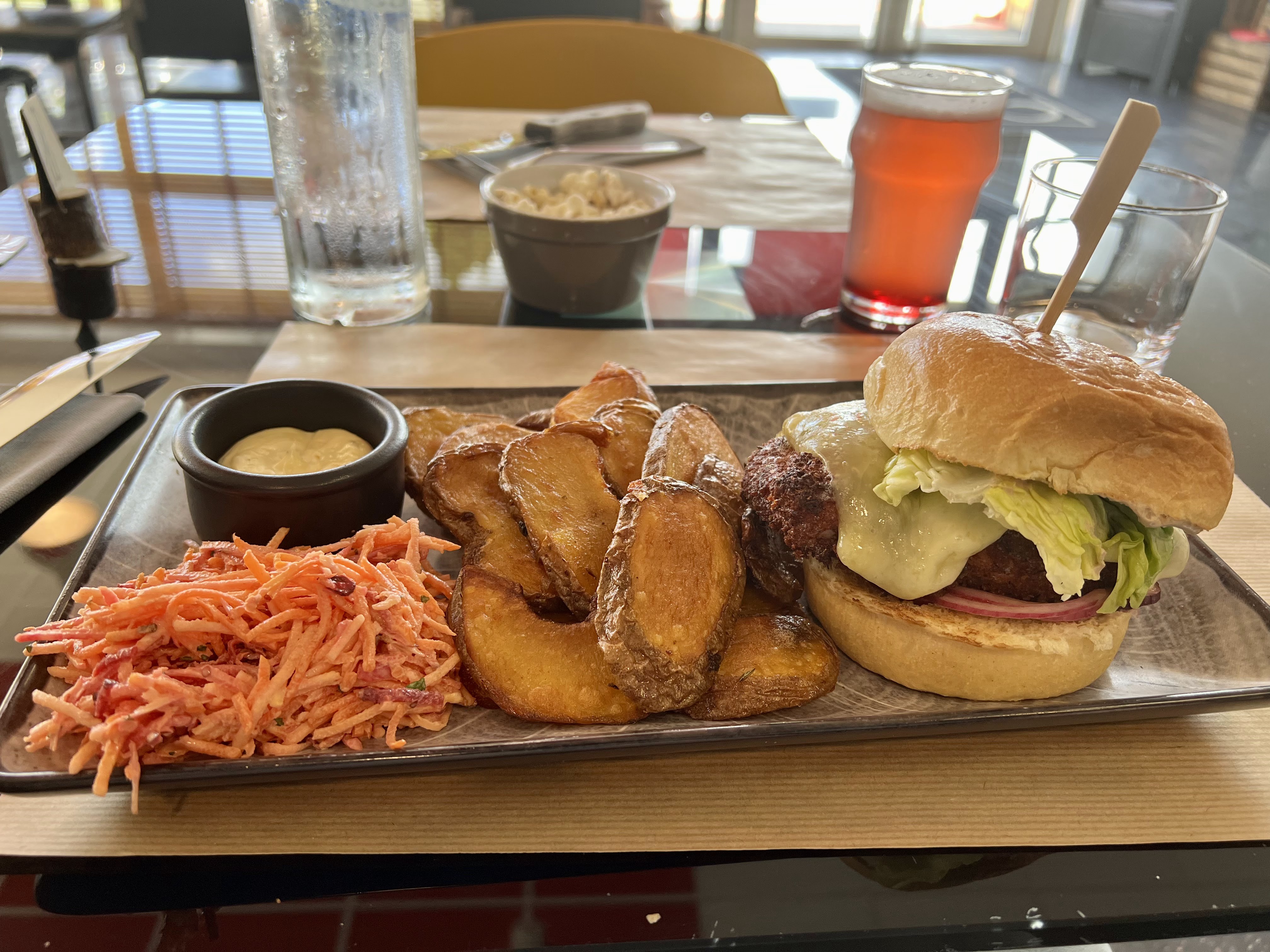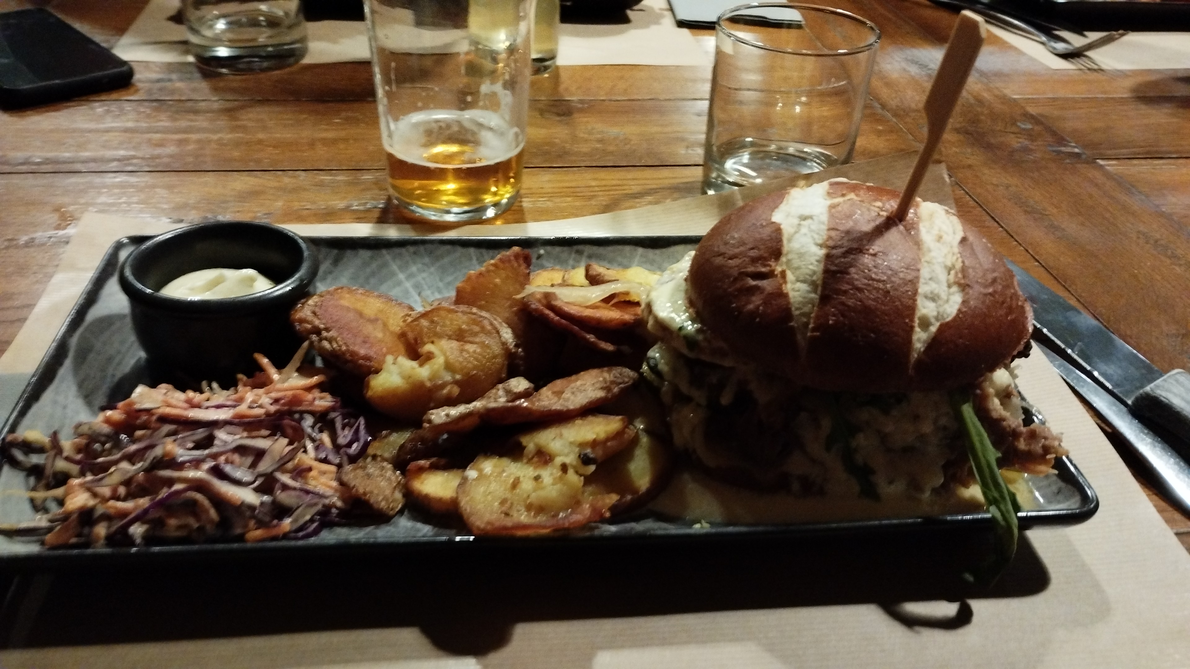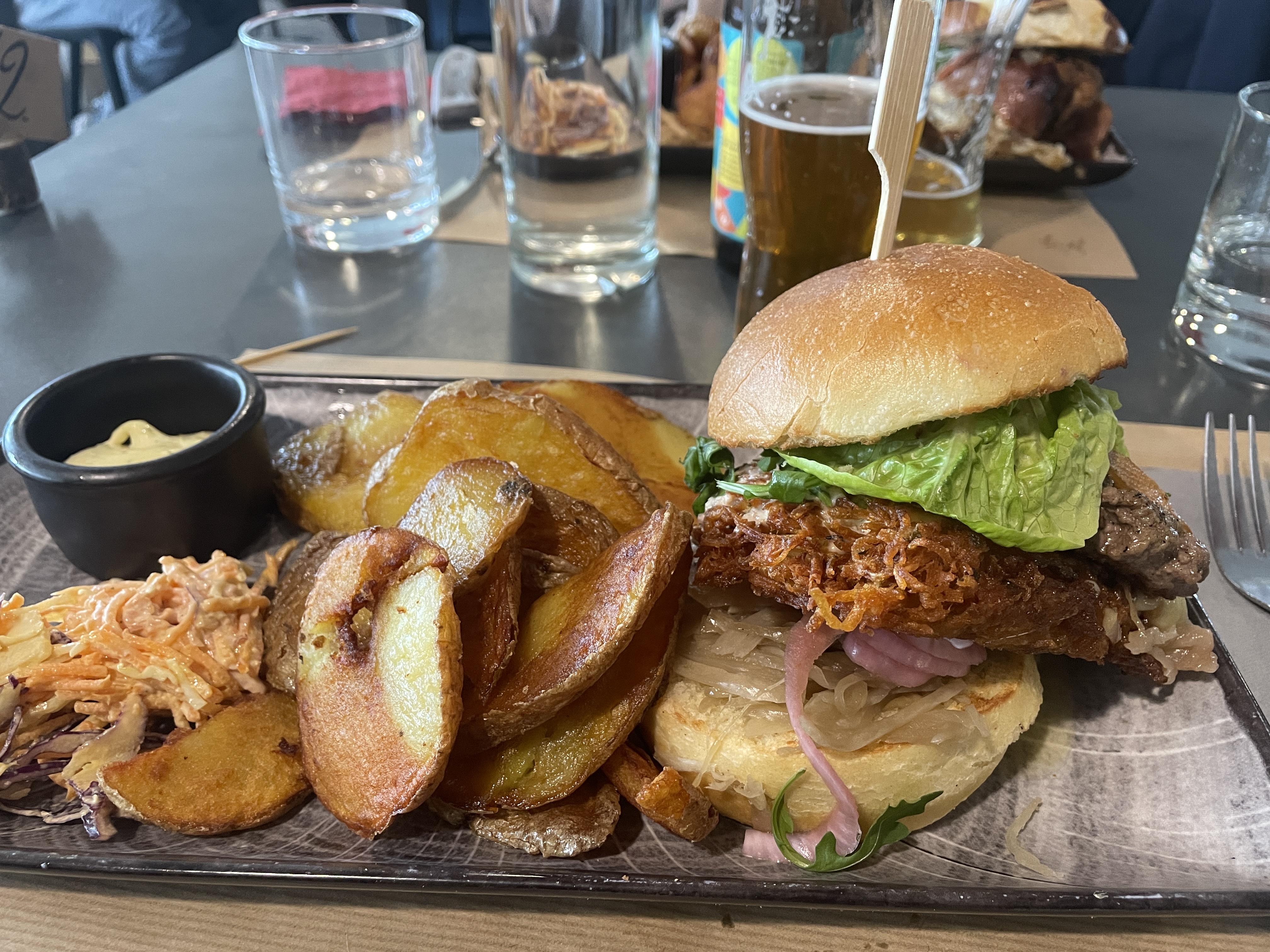 Un service au top, avec un personnel souriant et très attentifs quant aux allergies et intolerances. Bières et vin très bons, cocktail sans alcool bien punchy, des burgers copieux et savoureux sans parler d'un dessert tout aussi extra. Que du positif, on a passé un excellent repas !