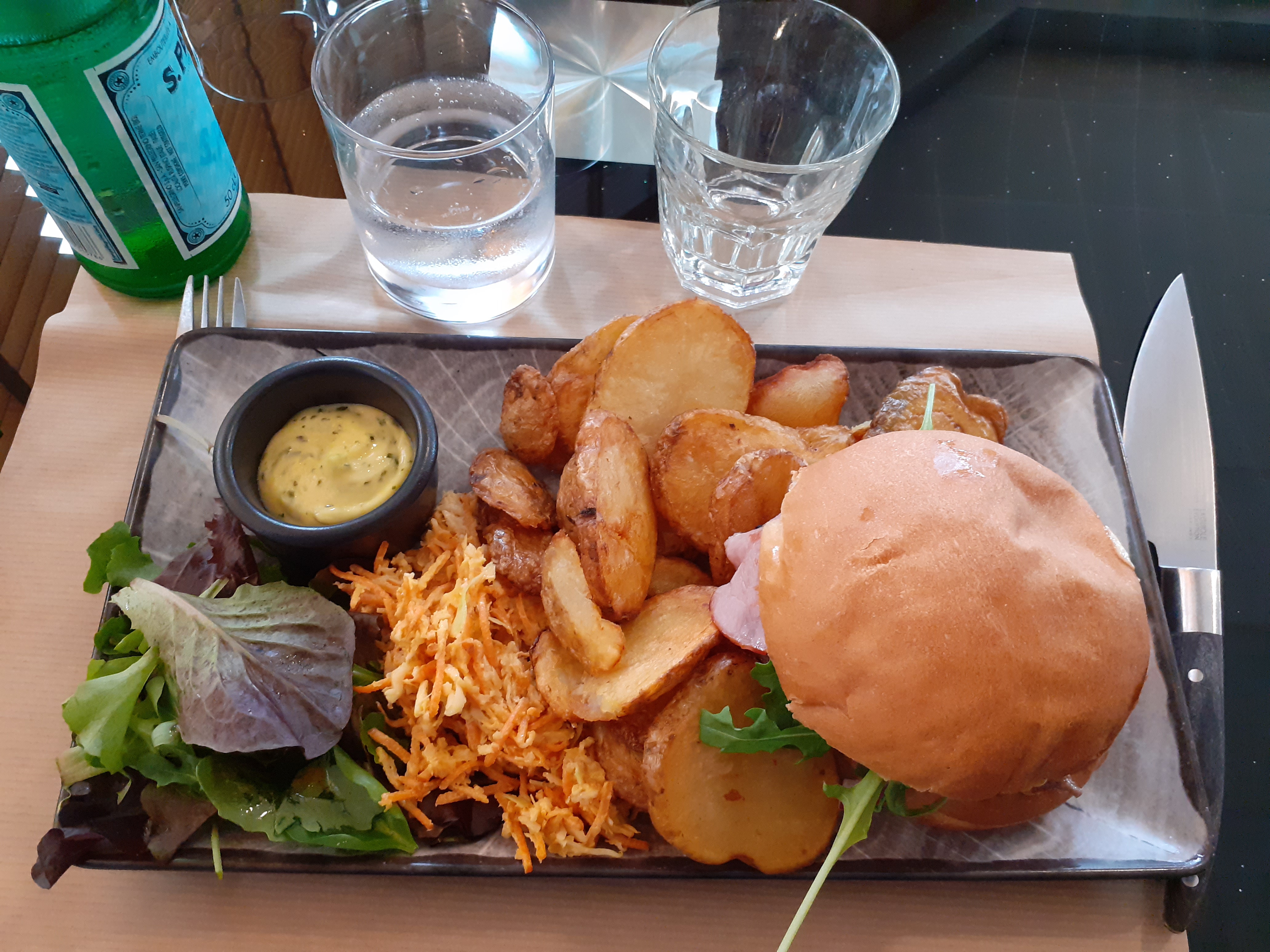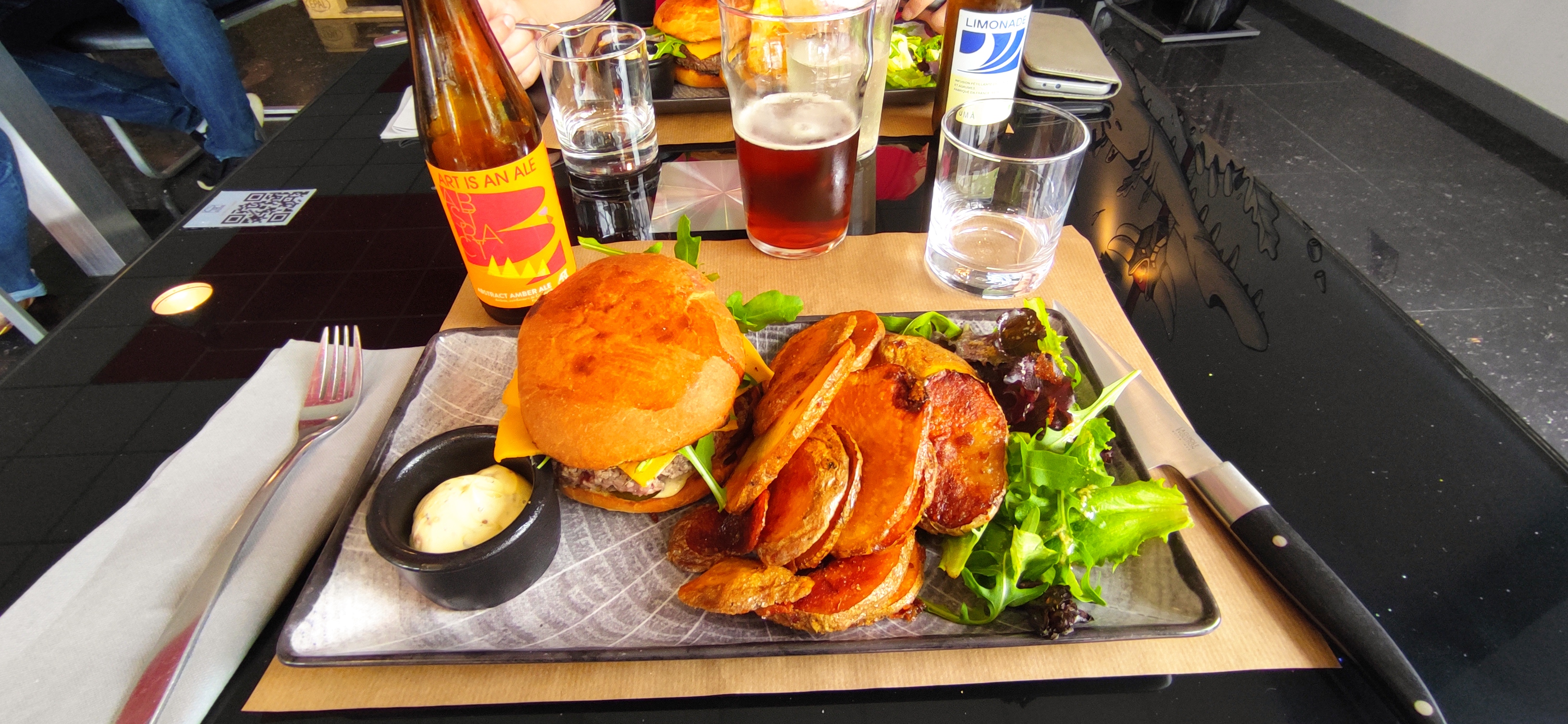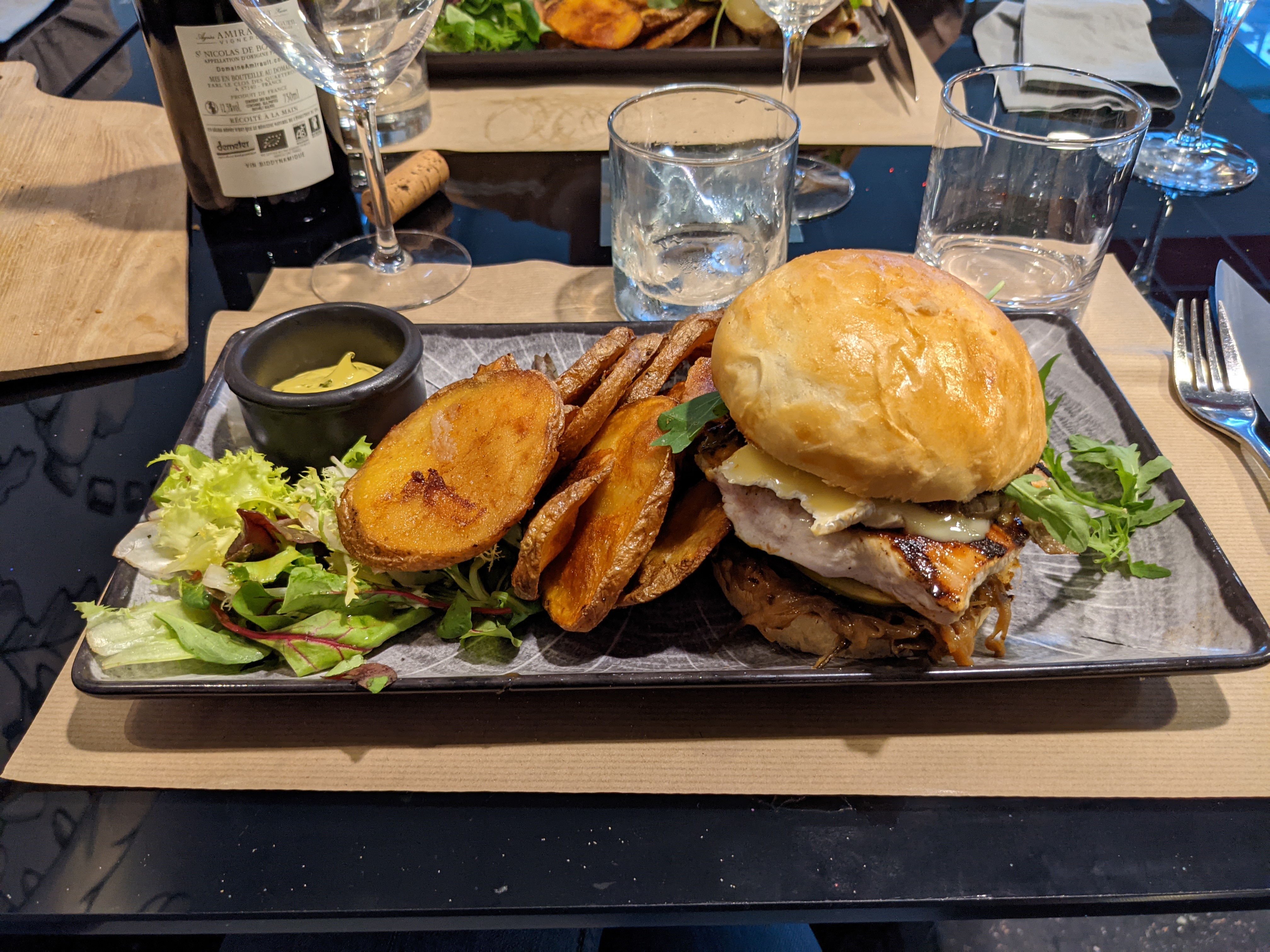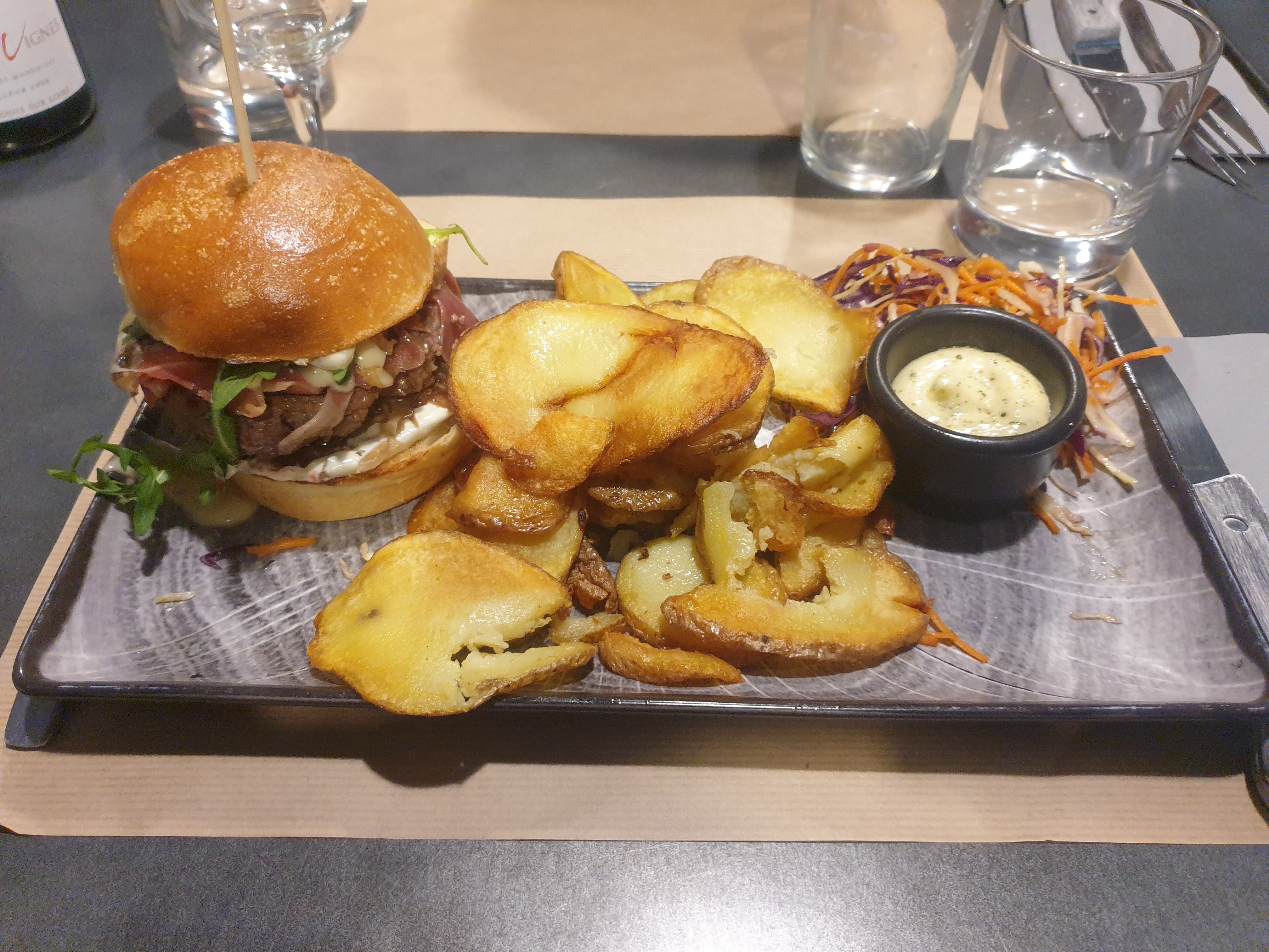 Un excellent restaurant ! Une première visite qui invite à revenir!! Un accueil comme il faut , une équipe à l'écoute ! Nous avons pris chacun un burger très frais accompagné de pommes de terre au four, très très bon !!