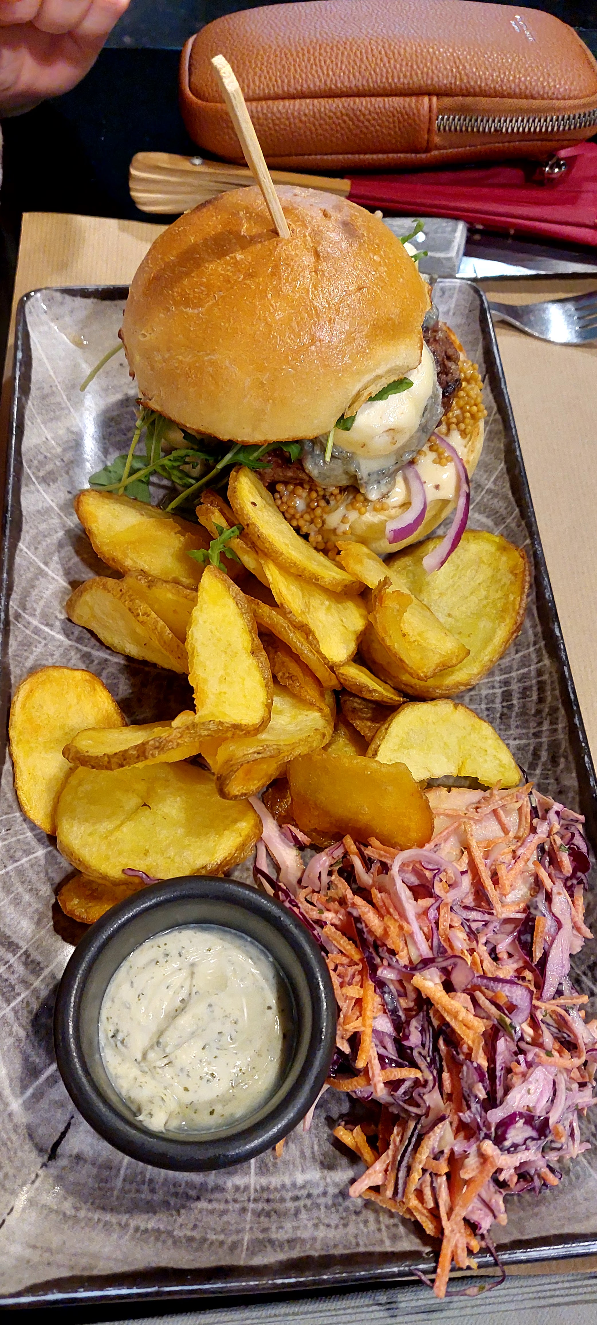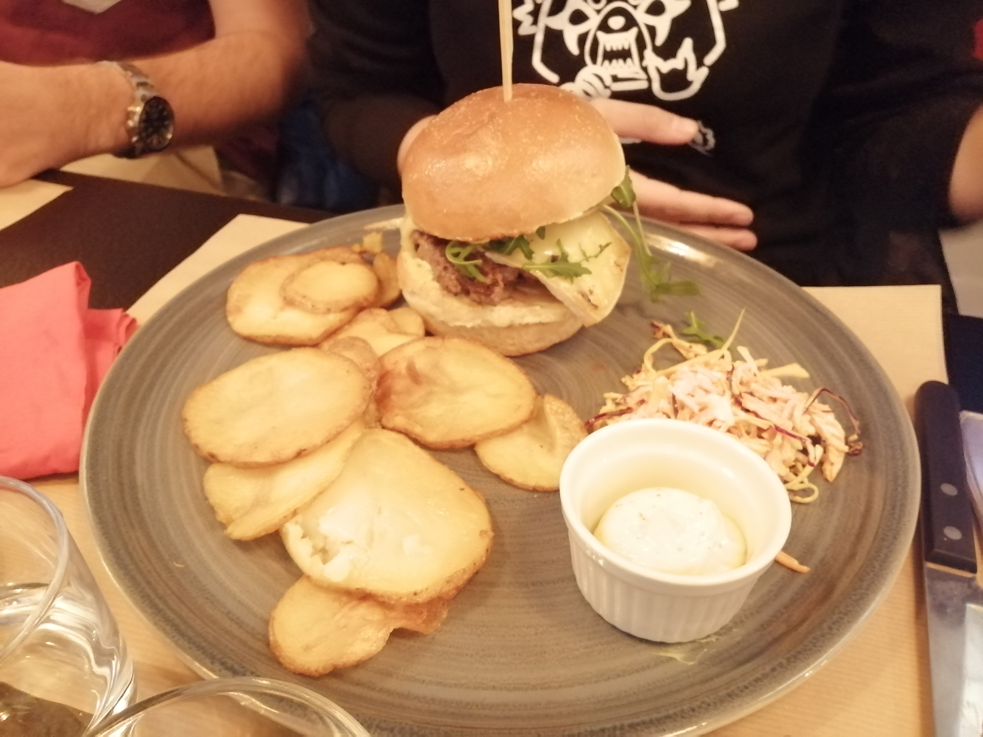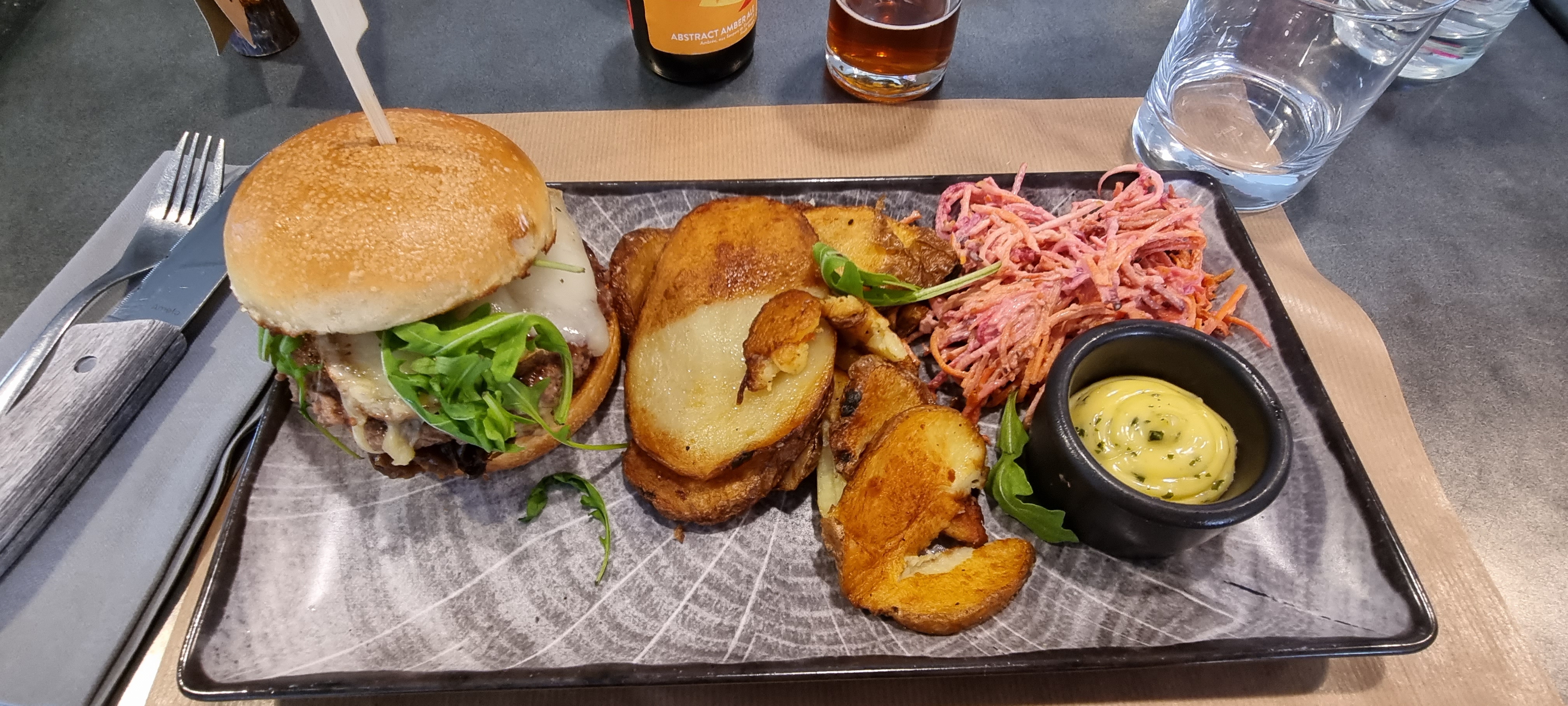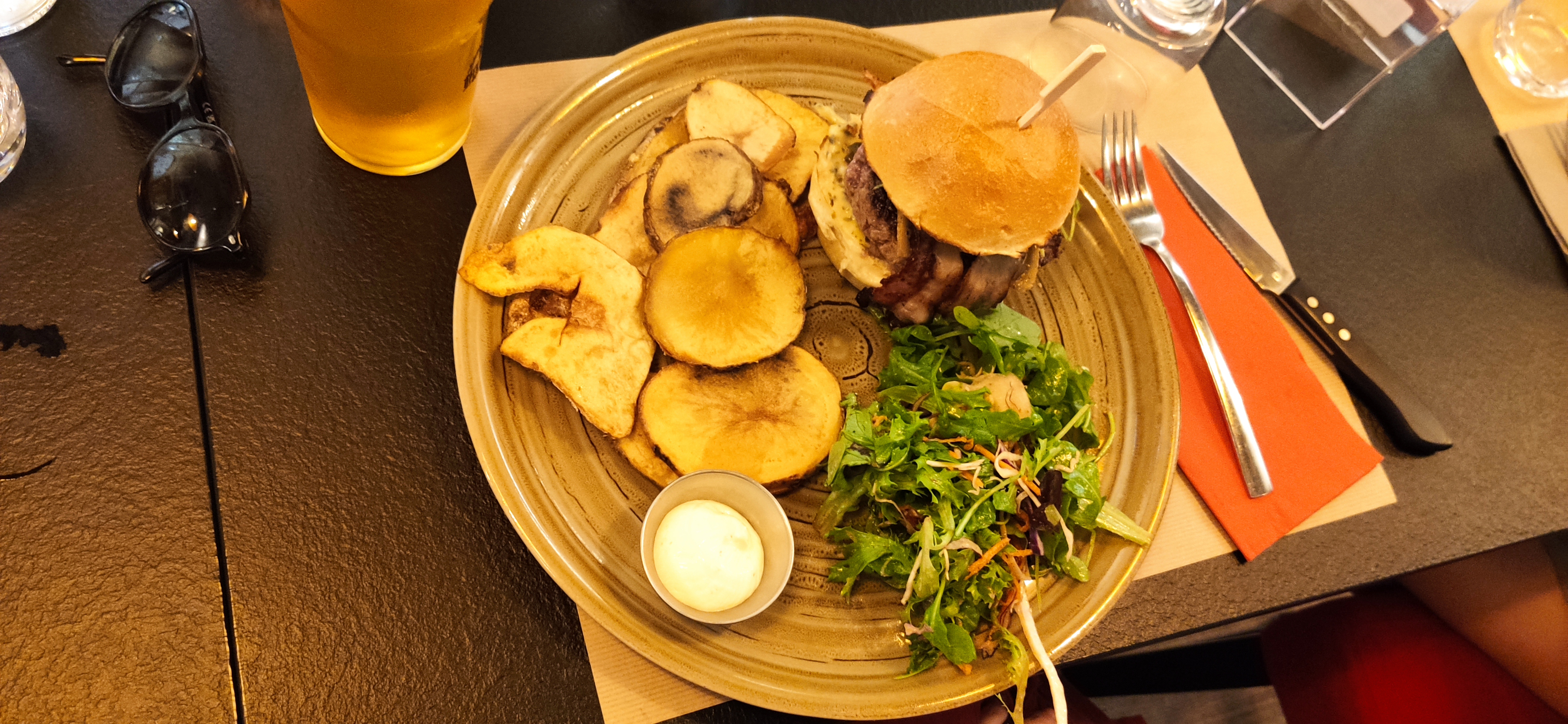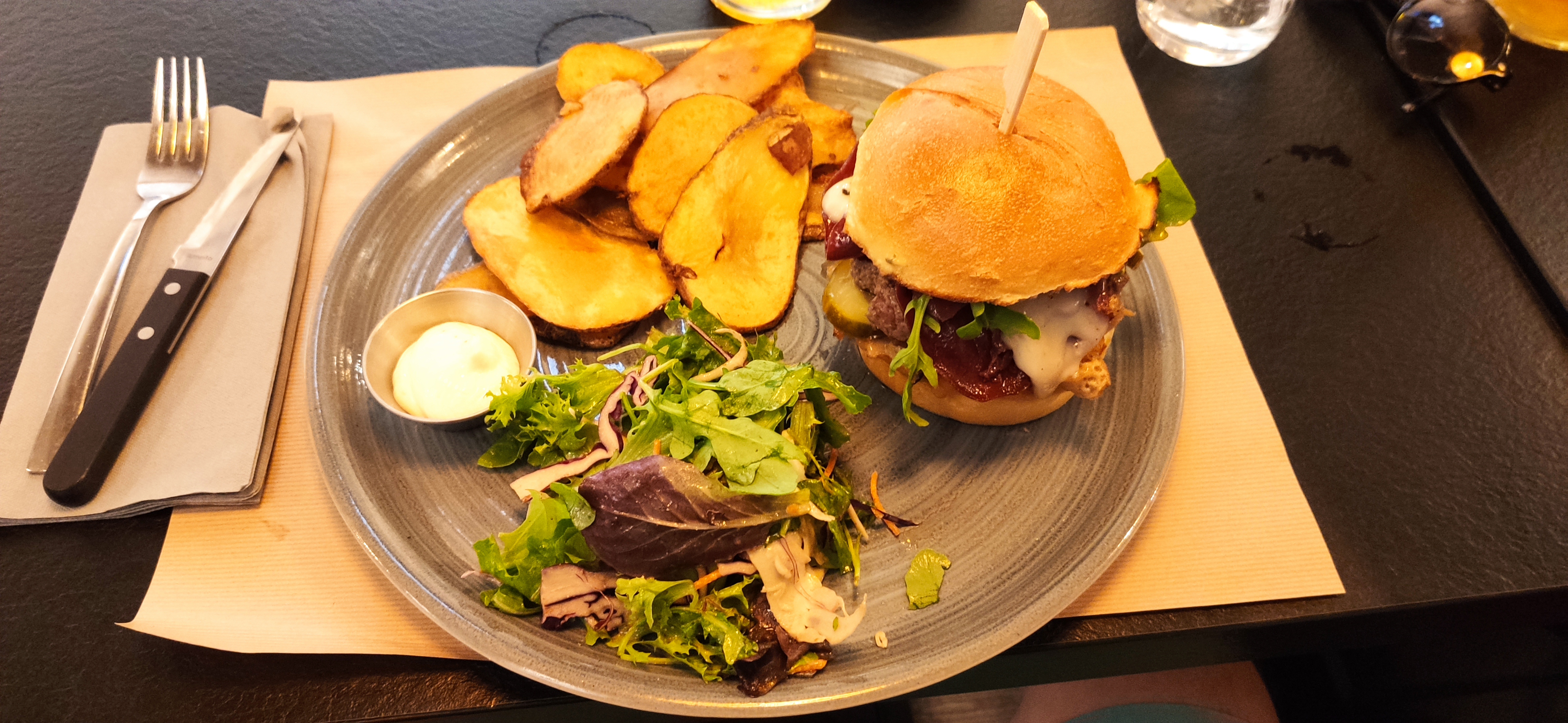 Un excellent restaurant ! Une première visite qui invite à revenir!! Un accueil comme il faut , une équipe à l'écoute ! Nous avons pris chacun un burger très frais accompagné de pommes de terre au four, très très bon !!