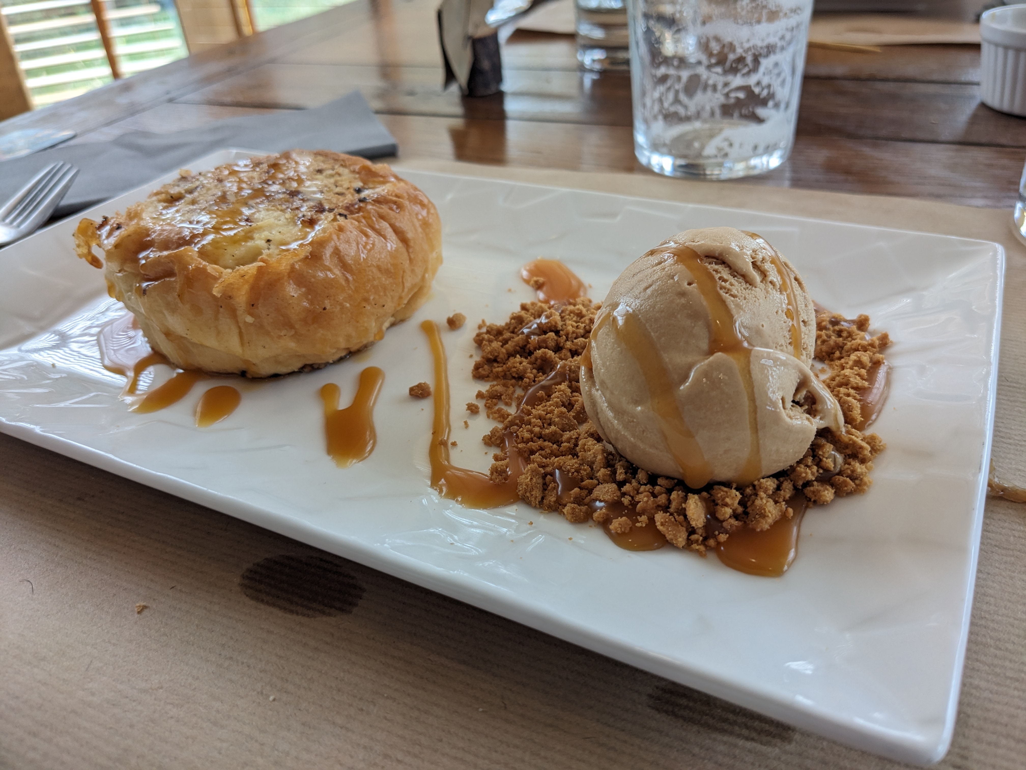 Bien installés. Service rapide. J'aurais aimé plus de choix. J'ai pris un HB canard avec une sauce aux fruits rouges. J'ai dû être rationnée sur les pommes de terre quand je vois les photos. C'était bien préparé mais j'ai moyennement aimé. Peut-être le sucré salé. Le déssert une glace en pot décevant. Le décor est sobre et fonctionnel.