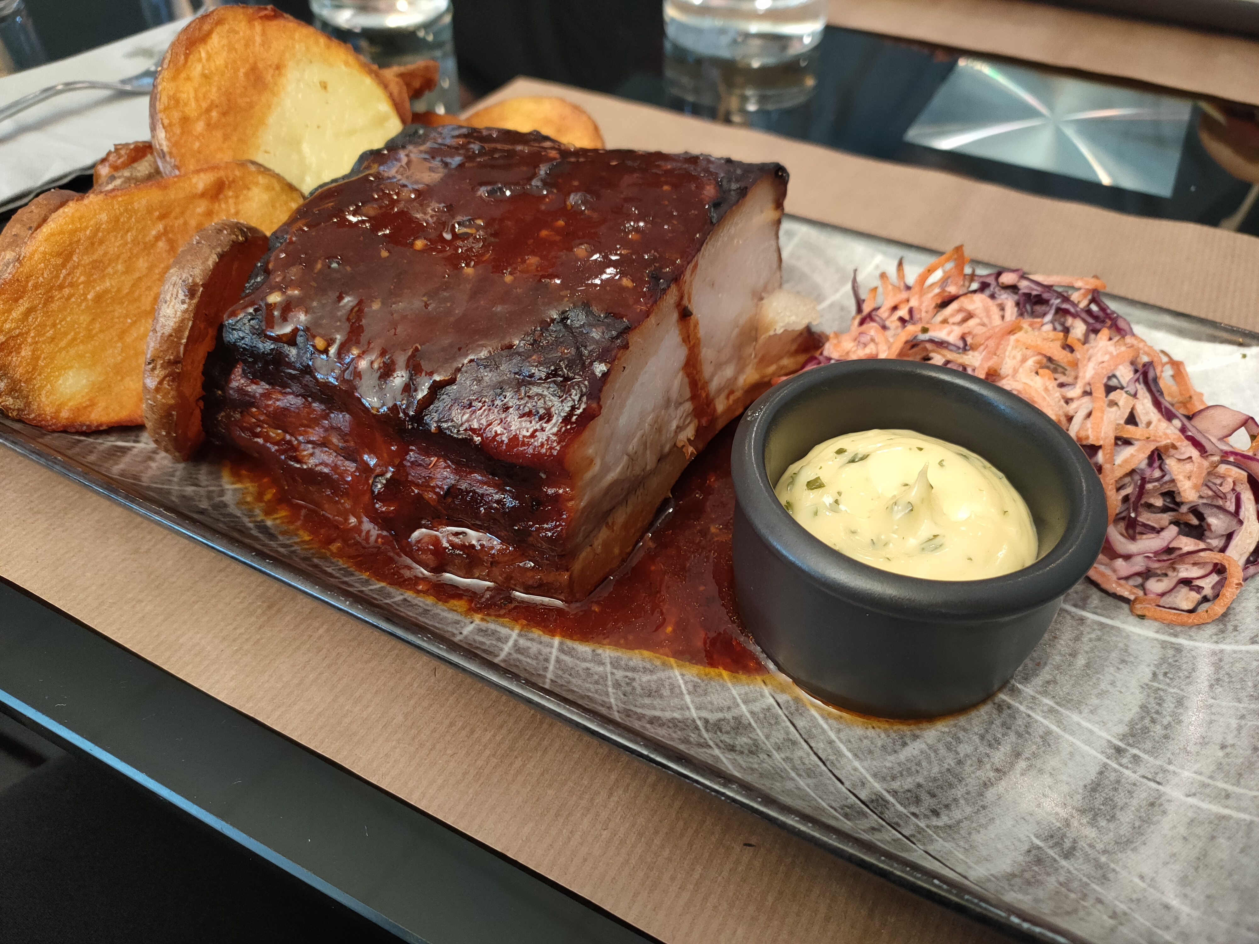 Produits frais et de bon qualité, plat copieux, service rapide et correcte. Par contre, 17€ un burger, ça commence à devenir cher. Pour les burger, viande épaisse, mais les autres ingrédients ne sont pas bien réparti, manque un peu de sauce et légumes qui aurait pu rendre le burger moins lourd. Et le travers de porc est hyper écœurant, manque de fraîcheur ou acidité pour équilibrer le plat. Un peu déçu pour un restaurant élu meilleur burger.