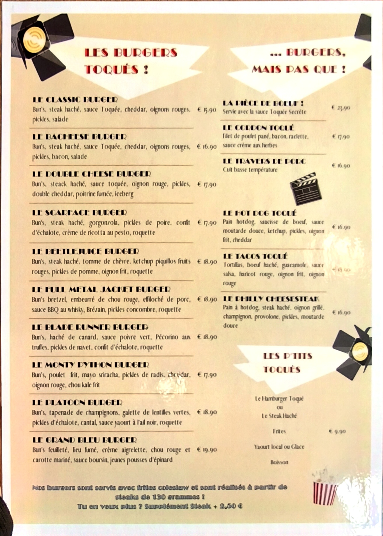 Situé dans une petite ZC, j'entre dans la salle, déco cinéma, dessin animé tout de suite j'aime les lieux. Accueil chaleureux, je n'avais pas réservé mais la serveuse m'accepte, sympa. Du coup pensez à réserver. Une carte qui donne envie de tout goûter avec des noms faisant allusion au cinéma. Je me laisse tenter par la suggestion du chef pour la St Patrick. Et là, une tuerie, je n'ai jamais mangé un Burger comme celui-là, c'est un Burger gastronomique sauf pour la générosité dedans il est copieu, c'est gourmand et bien équilibré. Le Bun's est moelleux et léger à souhait. Je vous recommande de faire le détour.