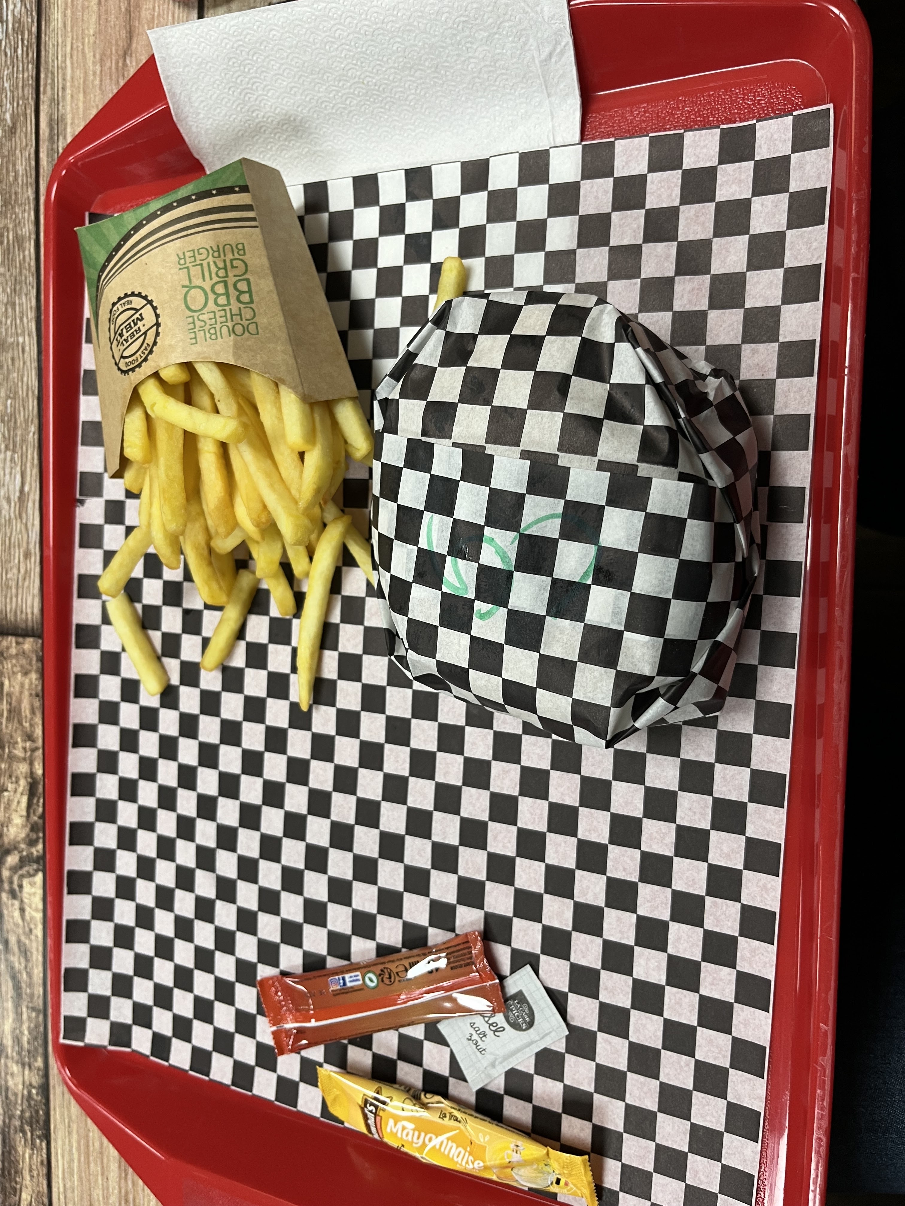 Frites et steacks surgelés c est dommage ça apporte une touche de goût supérieure. Steacks non assaisonnés. De simple petites choses qui ne retire rien au fait que les burger sont bons.