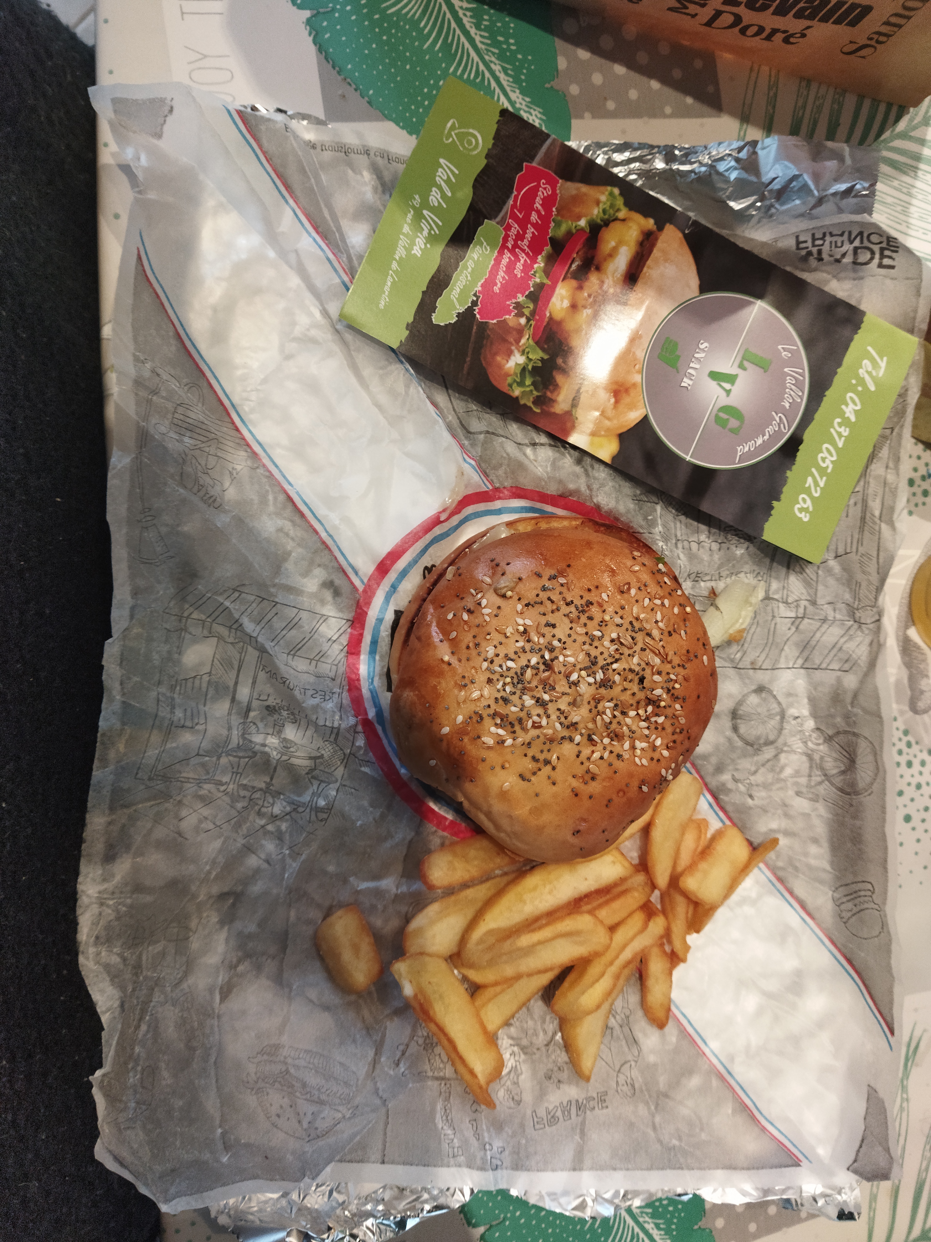 Une affaire qui marche! Super idée d'ouvrir un restaurant dans un petit vilage qui propose des burgers et pizzas sans compter gratin de ravioles et dessert. Le restaurant propose de manger sur place avec une décoration moderne. Le service est très agréable et le restaurant est tenu par des jeunes. Nous avions pris 2 menus : un taille L avec un steak et un XL avec 2 steak haché. Autant vous dire que le rapport qualité prix est incontestable.le double steak est énorme en viande et je dirai que compte tenu de la quantité de viande, il manque de la sauce (je pinaille). Les frites sont excellentes et le prix des boissons sont corrects. Le burger manquait de chaleur au moins pour le pain, il faudrait un mini four pour le chauffer sans cuire la viande. (il est vrai que j'aurai pu demander à le chauffer). Mais félicitations Pour cet établissement qui mérite de réussir. (Désolé, sur la photo il y a un burger qui est un peu écrasé mais c'est parce que j'avais commencé à le manger ).j'y suis retourné une deuxième fois avec cette fois un burger a 1 steak. Il y avait suffisamment de sauce mais nous avons été plusieurs a se dire que la viande est trop cuite et/ou pas assez assaisonner ce qui fait que la viande n'a pas de goût Peut être est il possible de la demander saignante et l'assaisonner plus. Cela est bien sûr seulement une remarque.
