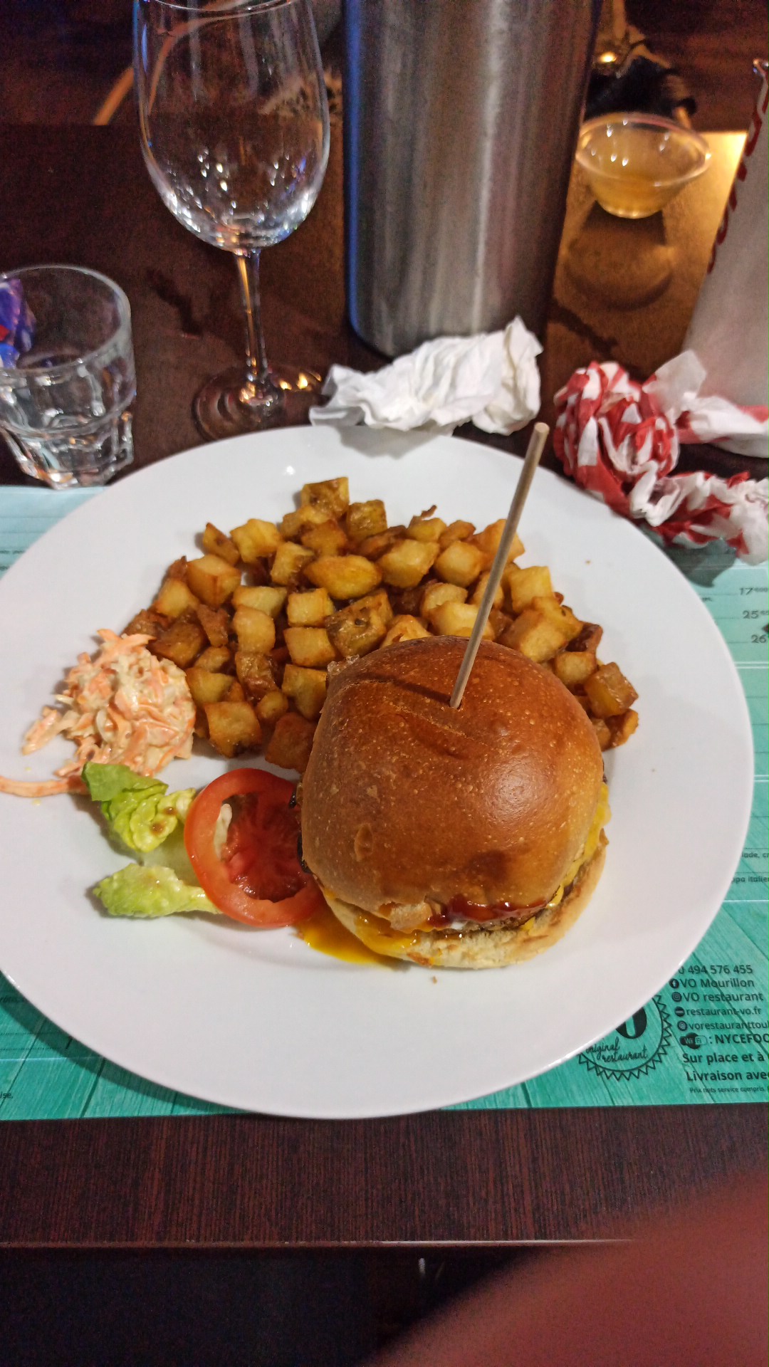 Nous avons passé un bon moment et nous nous sommes régalés avec nos burgers, néanmoins les pommes de terre étaient un peu trop grasses à mon goût. 😊