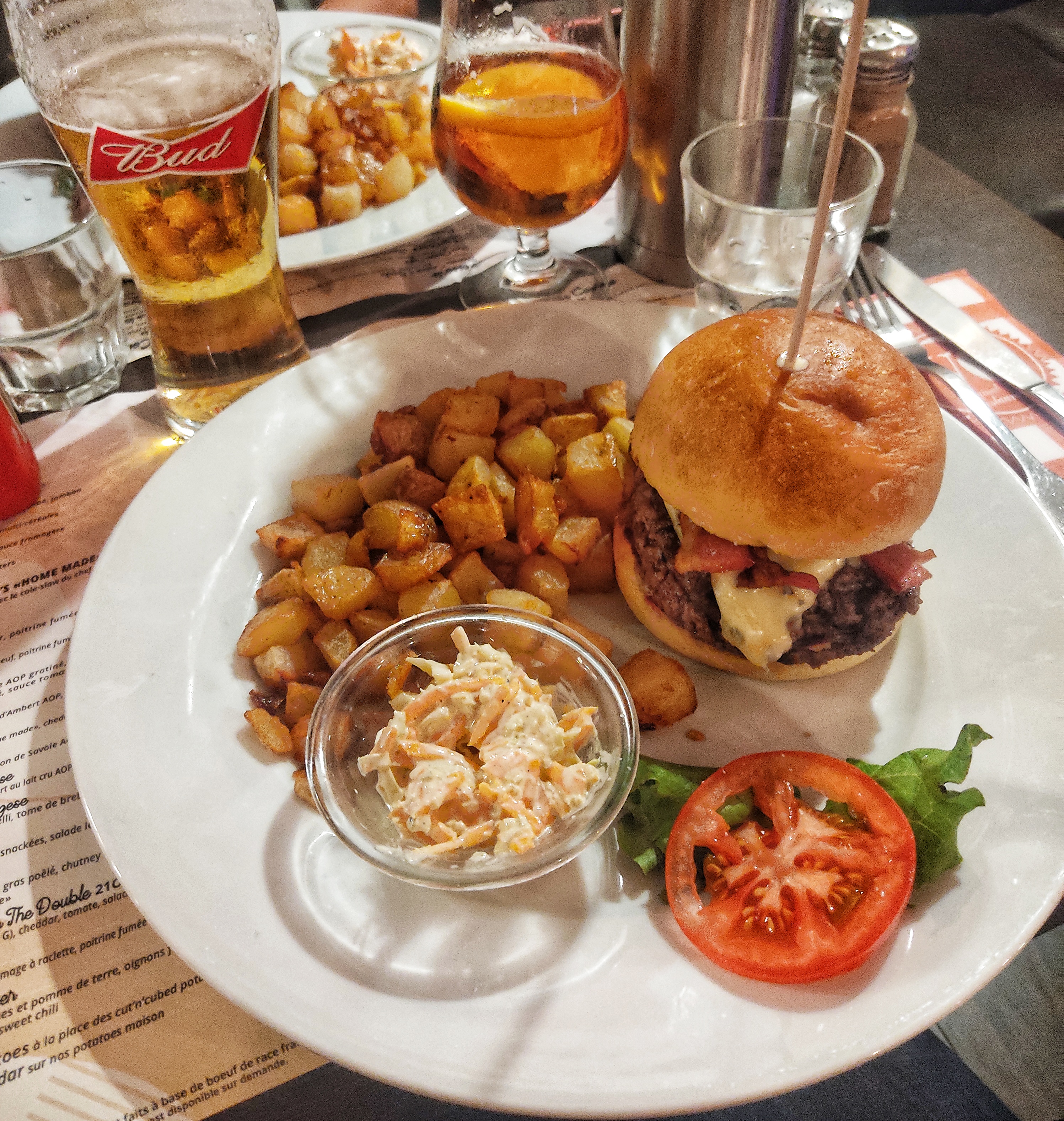 Très bon accueil, une belle carte avec beaucoup de choix et de très bons burgers !! Prix raisonnable au vu de la qualité et quantité de ce qu on a pris.