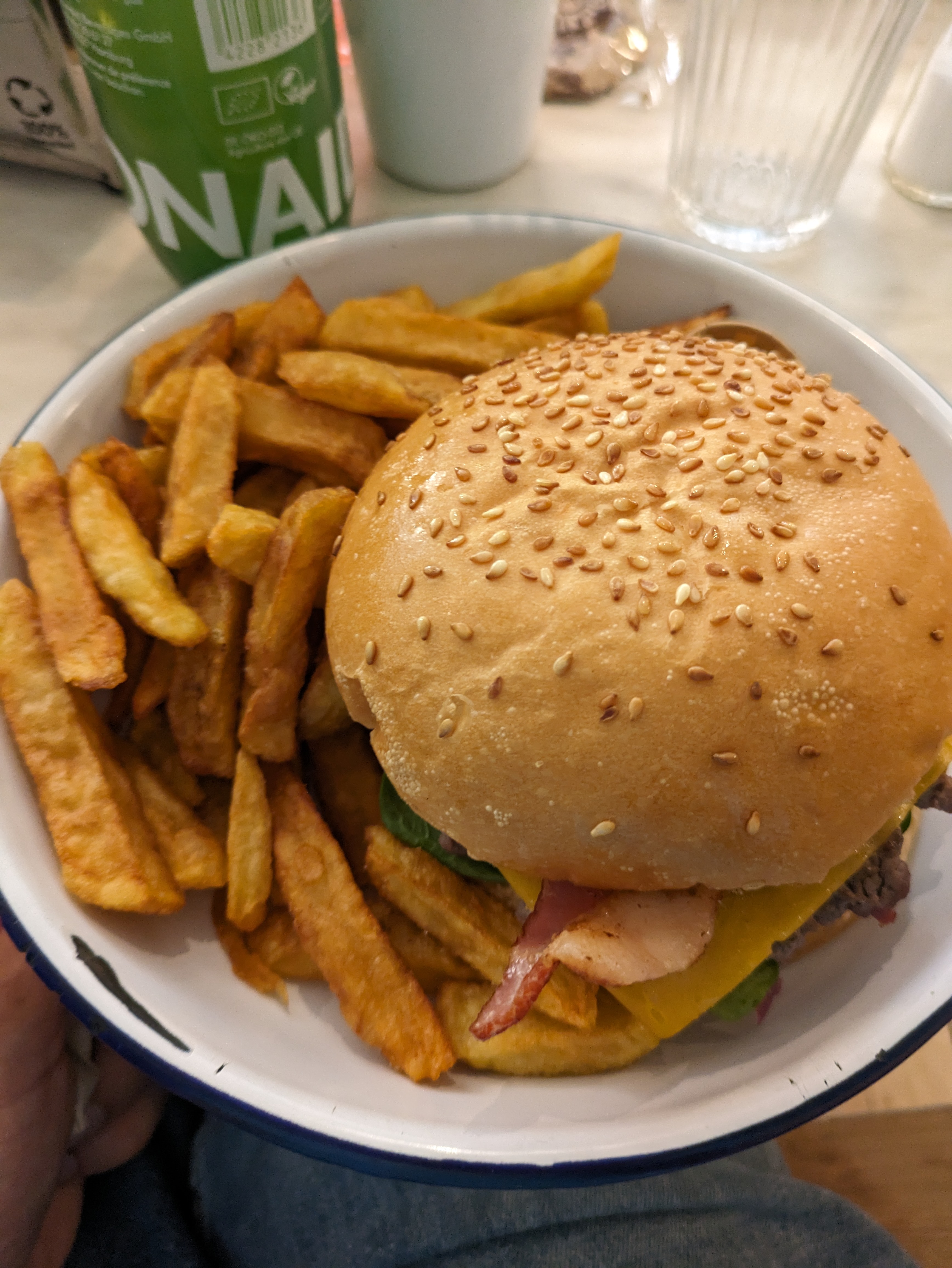 Cadre super sympa et équipe super agréable. Je me suis bien régalé avec un burger Ginette. Je recommande. ☺️