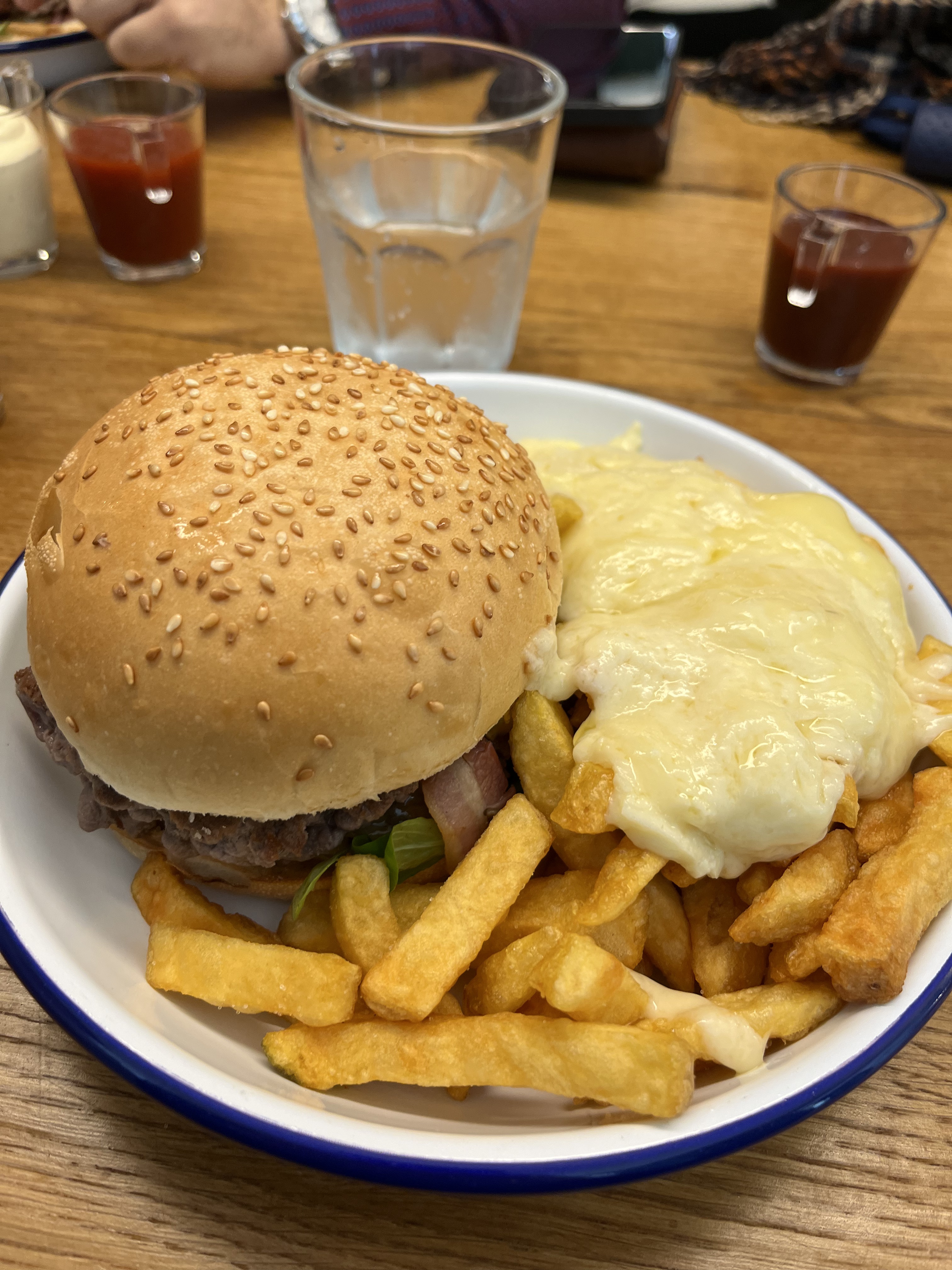 L'accueil est très chaleureux et le service rapide. Les frites au fromage à raclette sont très bonnes mais le burger chèvre - Fourme d'Ambert manquait de goût. Le seul ingrédient qui dominait était la tomate confite. Je repasserai sûrement au besoin.