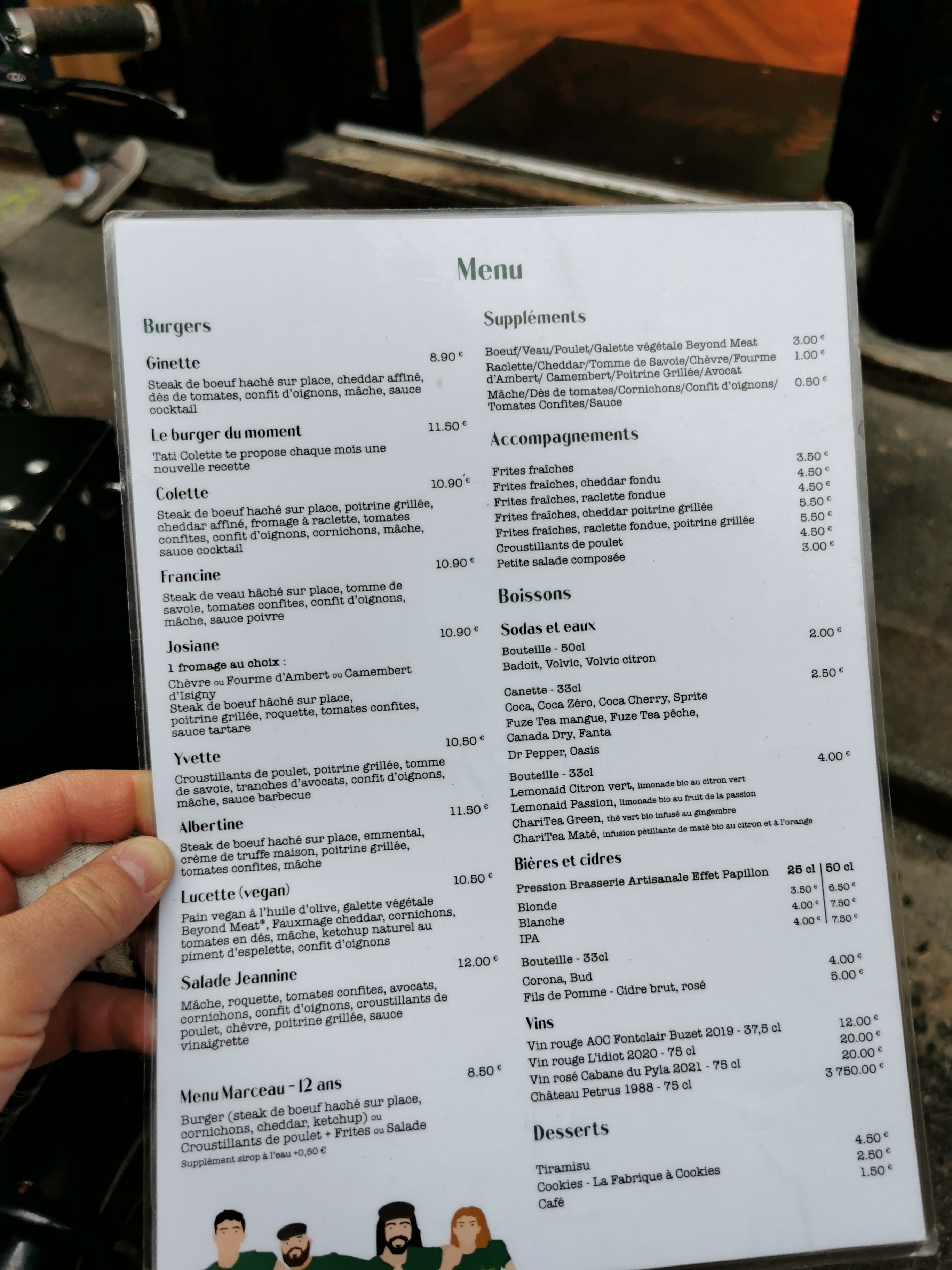 L’endroit est très joli ! Les burgers sont bon et pas trop chers cependant les frites sont vraiment acides et dans le Ginette en tout cas les oignons sont un peu trop présents mais dans l’ensemble je recommande !!
