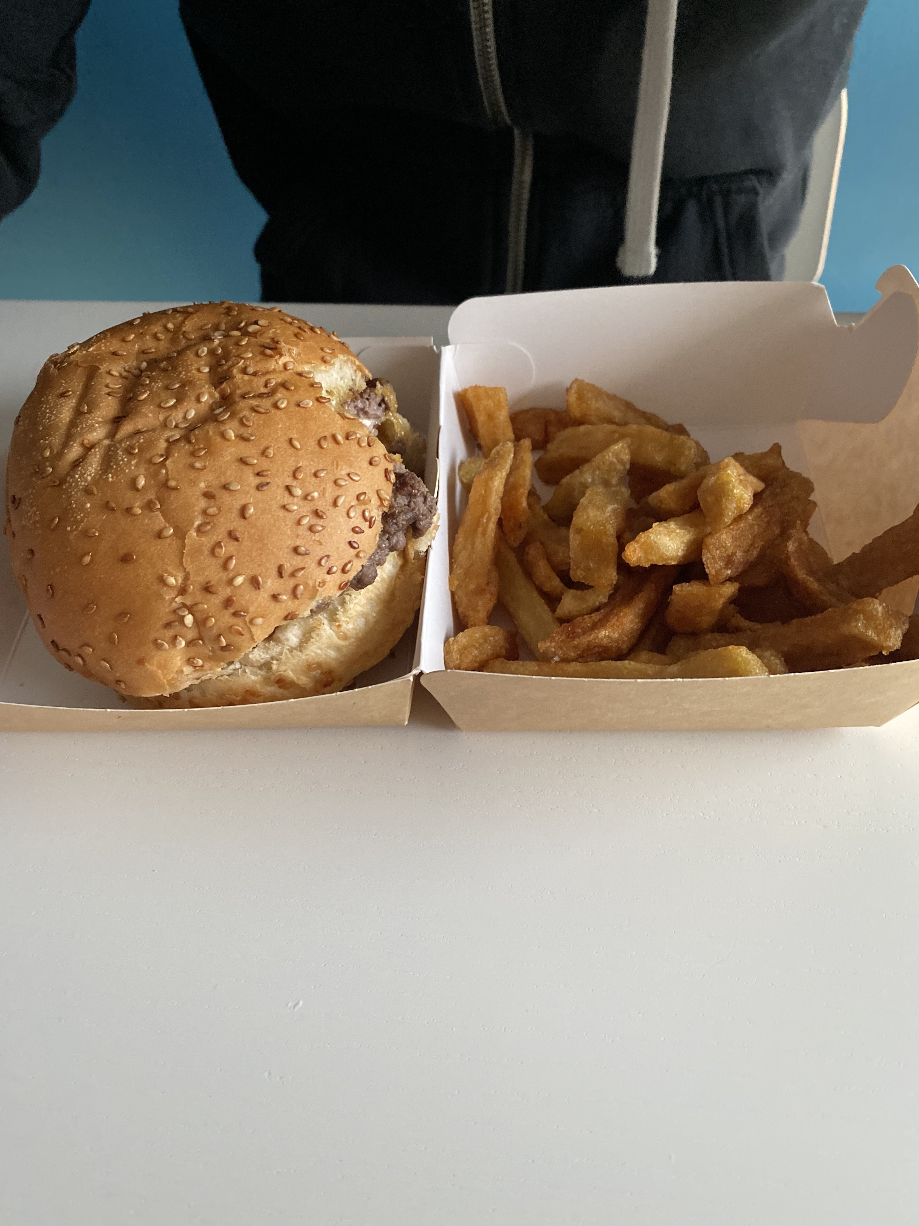 Pain & burger frais et délicieux ! La sauce est très bonne, pareil pour les frites maison !