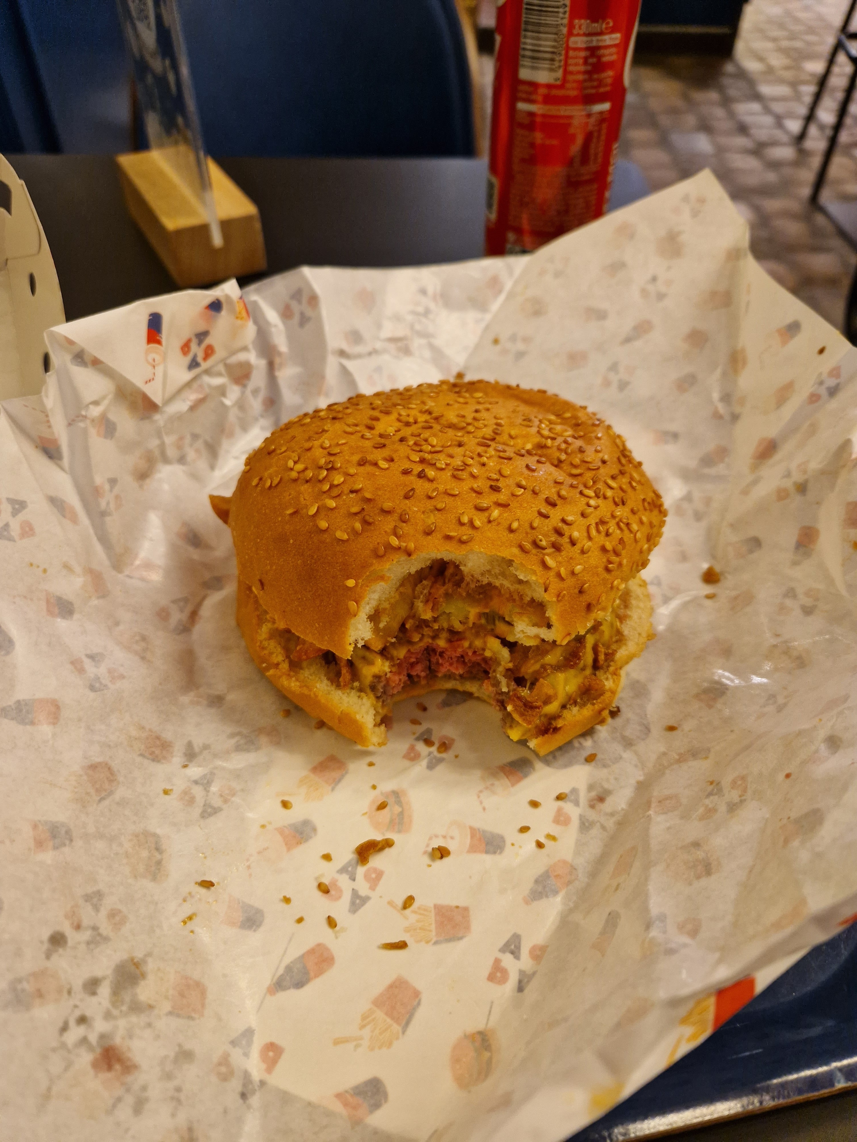 Je retiendrai mon repas à ce burger king comme le souvenir d'une vie. Nous avons été accueilli par la caissière un large sourire au lèvre, après avoir commandé au comptoir (pour une expérience encore plus humaine et immersive sans doute) le tarif étudiant nous est appliqué d'office. Le repas est un chapitre à part entière. Les oignons frit était parfait, les frites rentrait en concurrence direct avec les plus prestigieuse friterie belges (même si les française sont meilleur et ce restaurant le prouve une fois de plus). Quant au burger, j'ai pleuré à chaude larme comme cela n'était jamais arrivé depuis que mon ex m'a largué. Nous avons eu droit à un plateau cadeau en plus, ( je l'utiliserai sûrement pour roulé mes gauloise) En conclusion, Je recommande vivement ce étoile d'or (le gérant a en effet remporté la médaille au jo d'hiver catégorie curling)