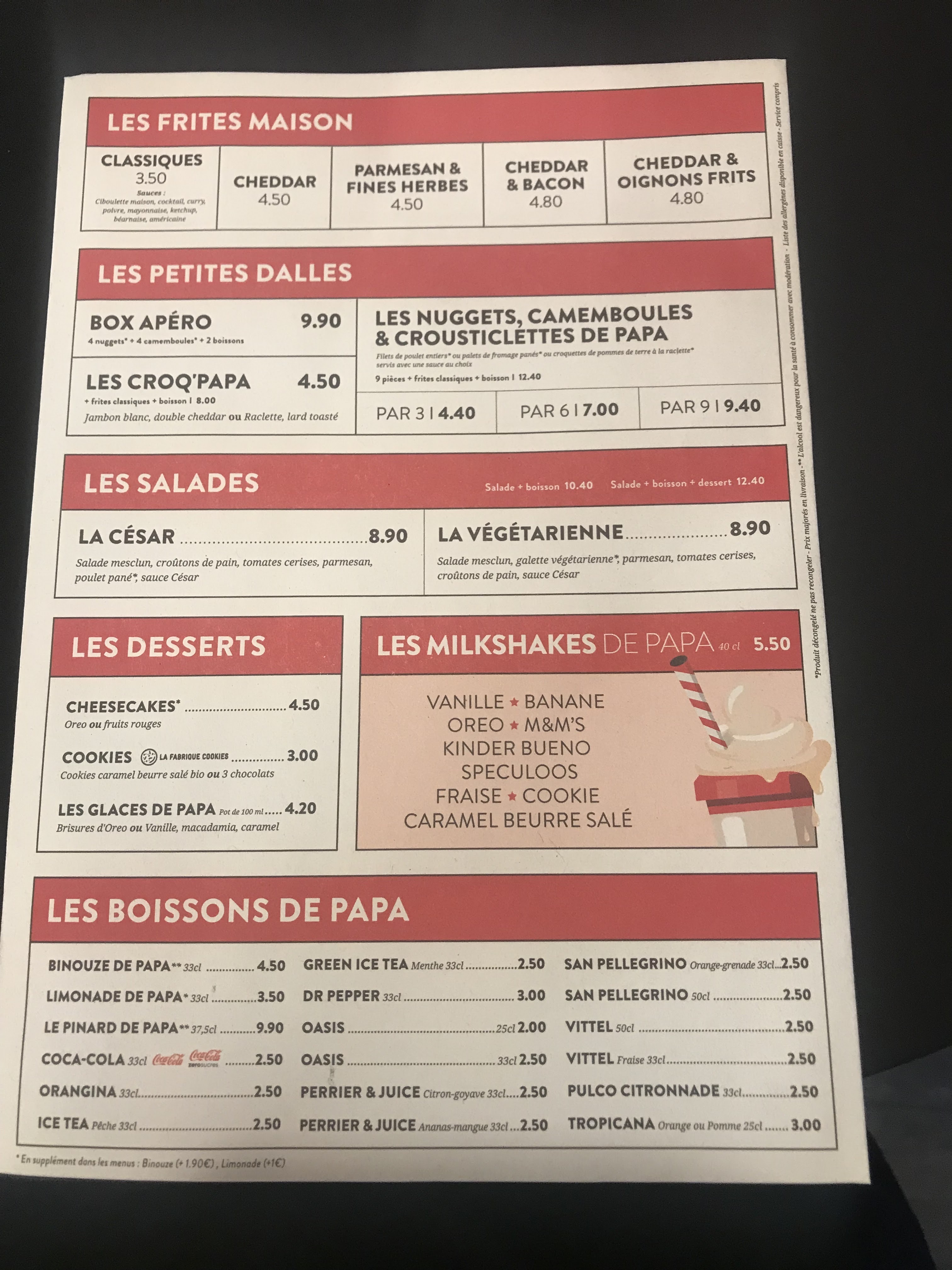 J'ai commandé via UberEats une barquette de frites et deux milkshakes. Les frites sont arrivées à moitié cuites et pas du tout croustillantes ! Quant aux milkshakes, ils étaient bien trop sucrés ; j'ai dû ajouter un verre d'eau pour les rendre buvables. 18 euros jetés par la fenêtre.