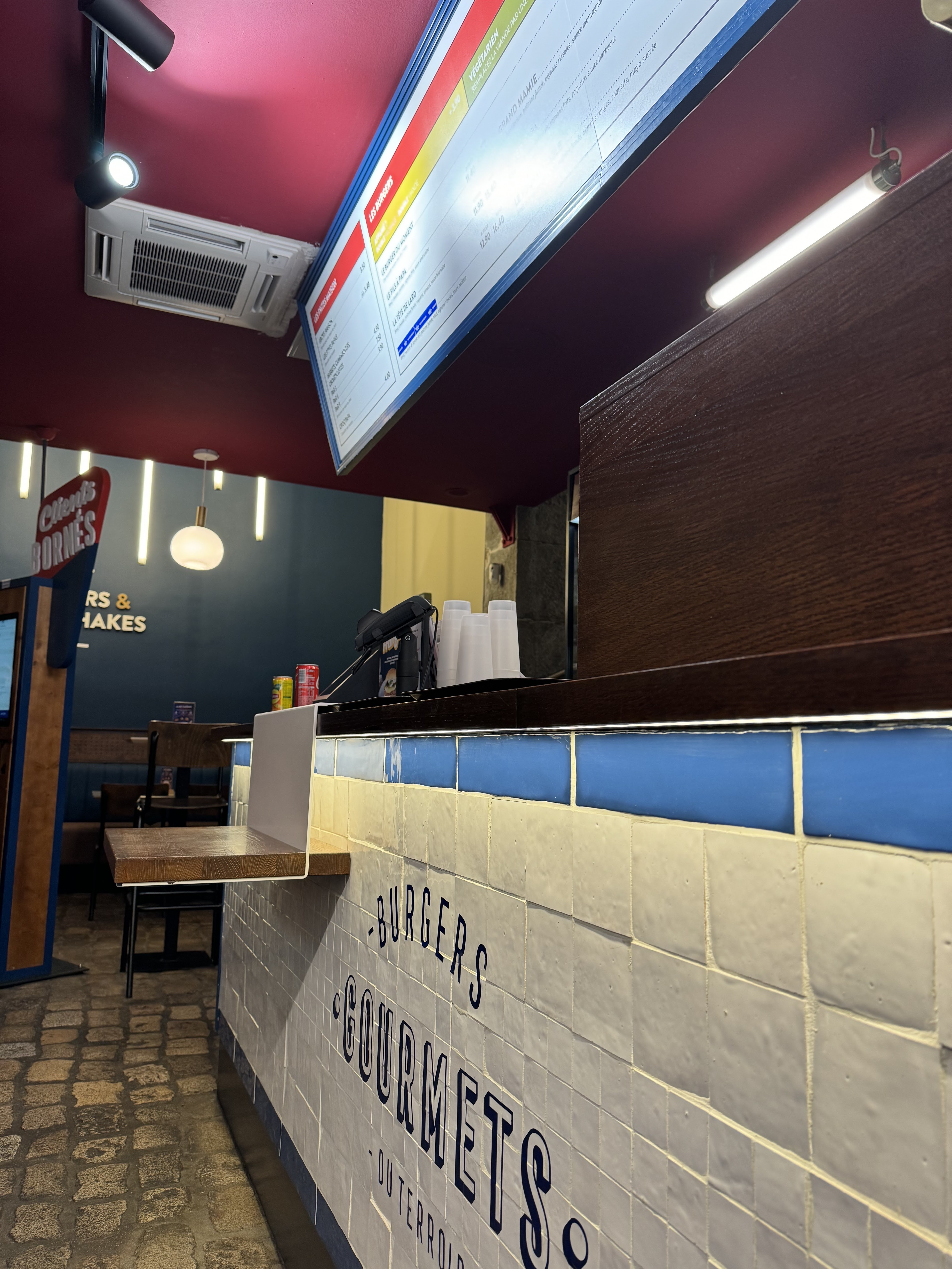 L’ambiance est chill et idéal pour les jeunes, les burgers sont plutôt bons mais les prix des menus sont un peu élevés.