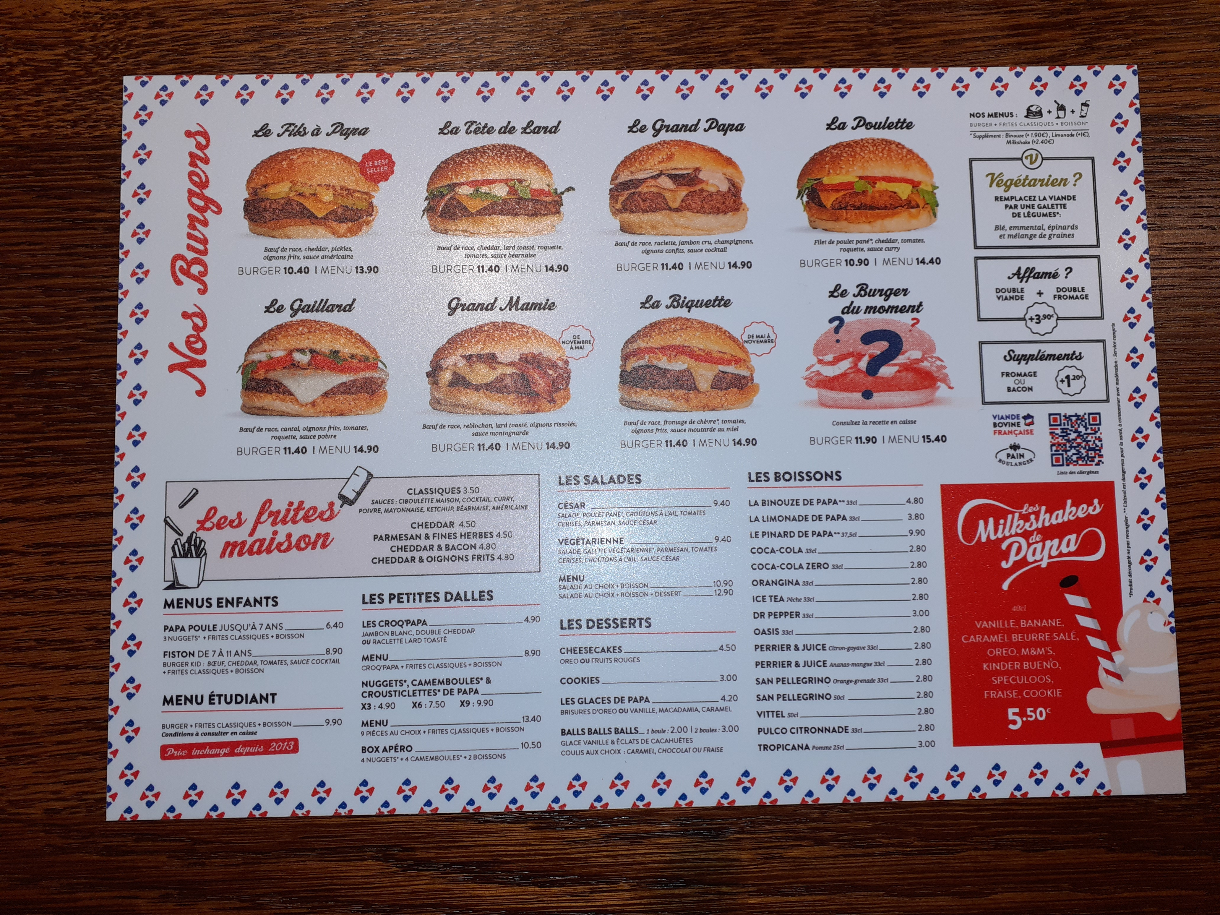 Très bonne expérience aujourd’hui chez Les Burgers de Papa; les burgers sont délicieux et les serveurs très accueillant. Je recommande fortement!
