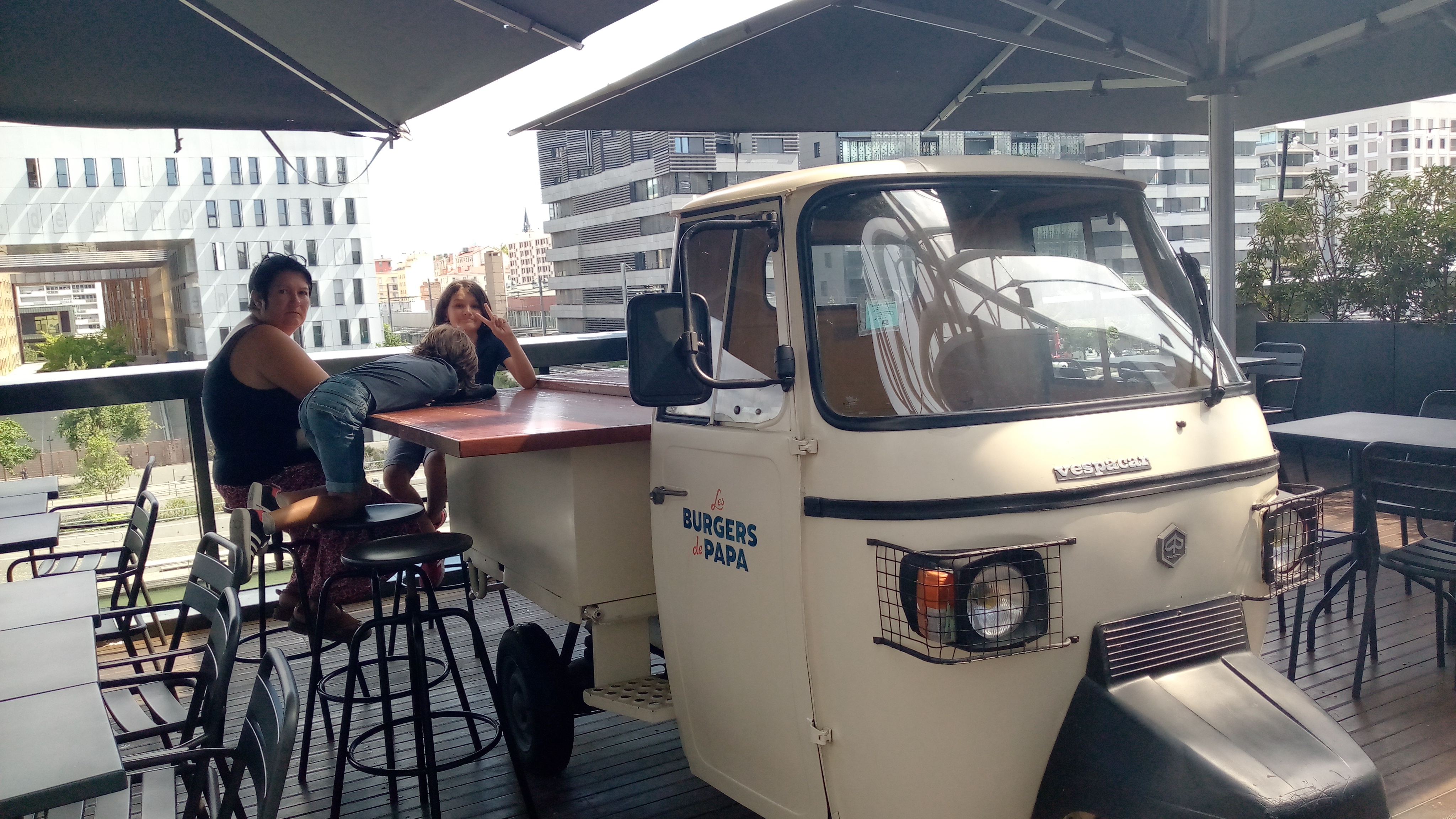 La terrasse est cool on a une belle vu sur confluence et il y avait peu de monde à ce moment là. Je trouves les burgers petit et nous (6p) n’avons pas du tout aimé votre sauce cheddar sur les frites, qui elles étaient bonnes. Le service est difficilement notable car tout est fait par le client, de la commande en borne, allé chercher son plateau puis le ranger. La « binouze de papa » est très bonne, je recommande d’essayer.