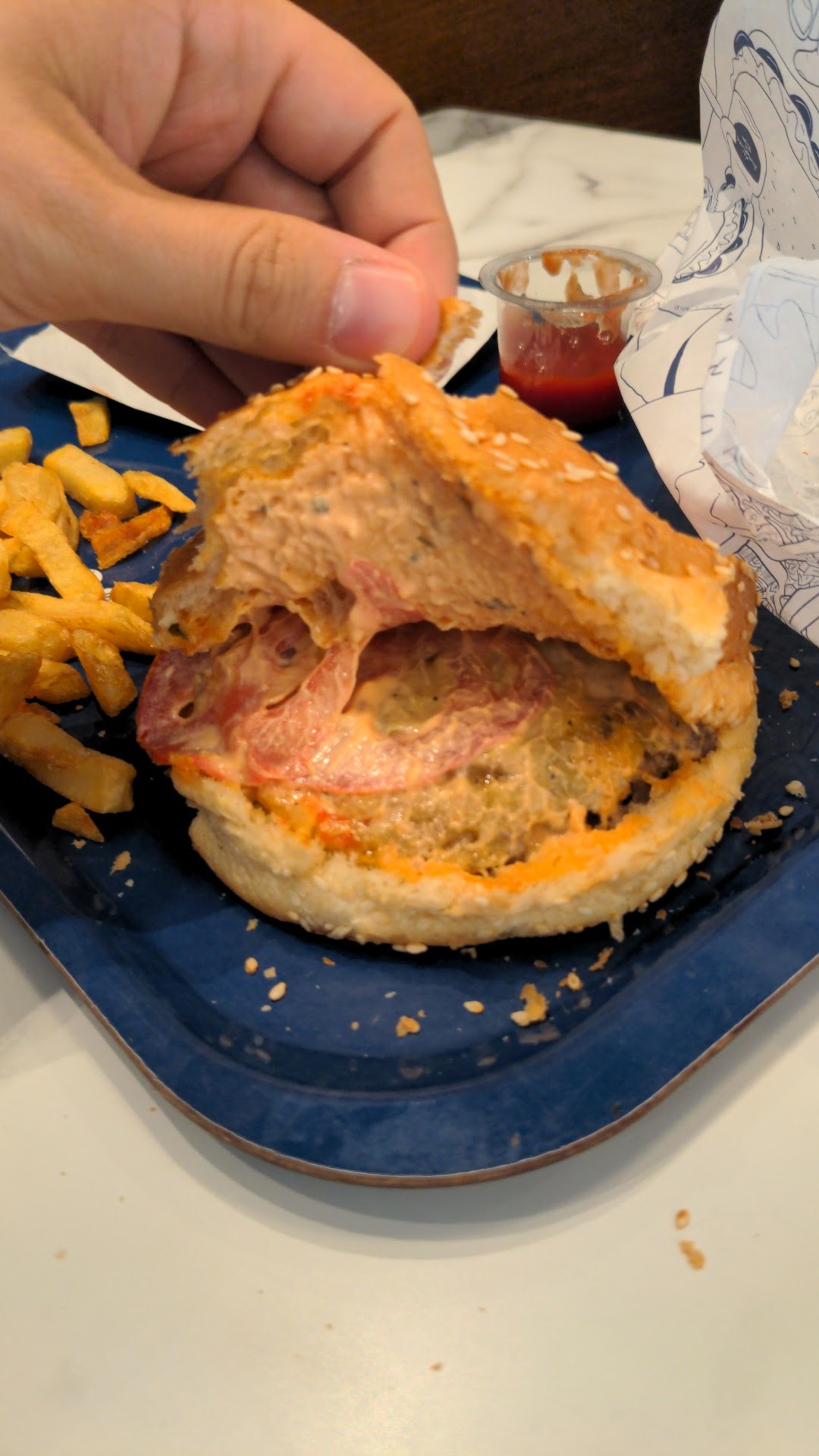 Burger correct même si un peu sec. Les frites en revanches, certainement les pires de ma vie. Molles, fades et pleines d’huile. Sans parler de la sauce « fromage » qui avait un goût de beurre ? A vomir et je n’exagère pas. Bref pour un Burger pourquoi pas mais fuyez leurs frites pour le bien de votre estomac