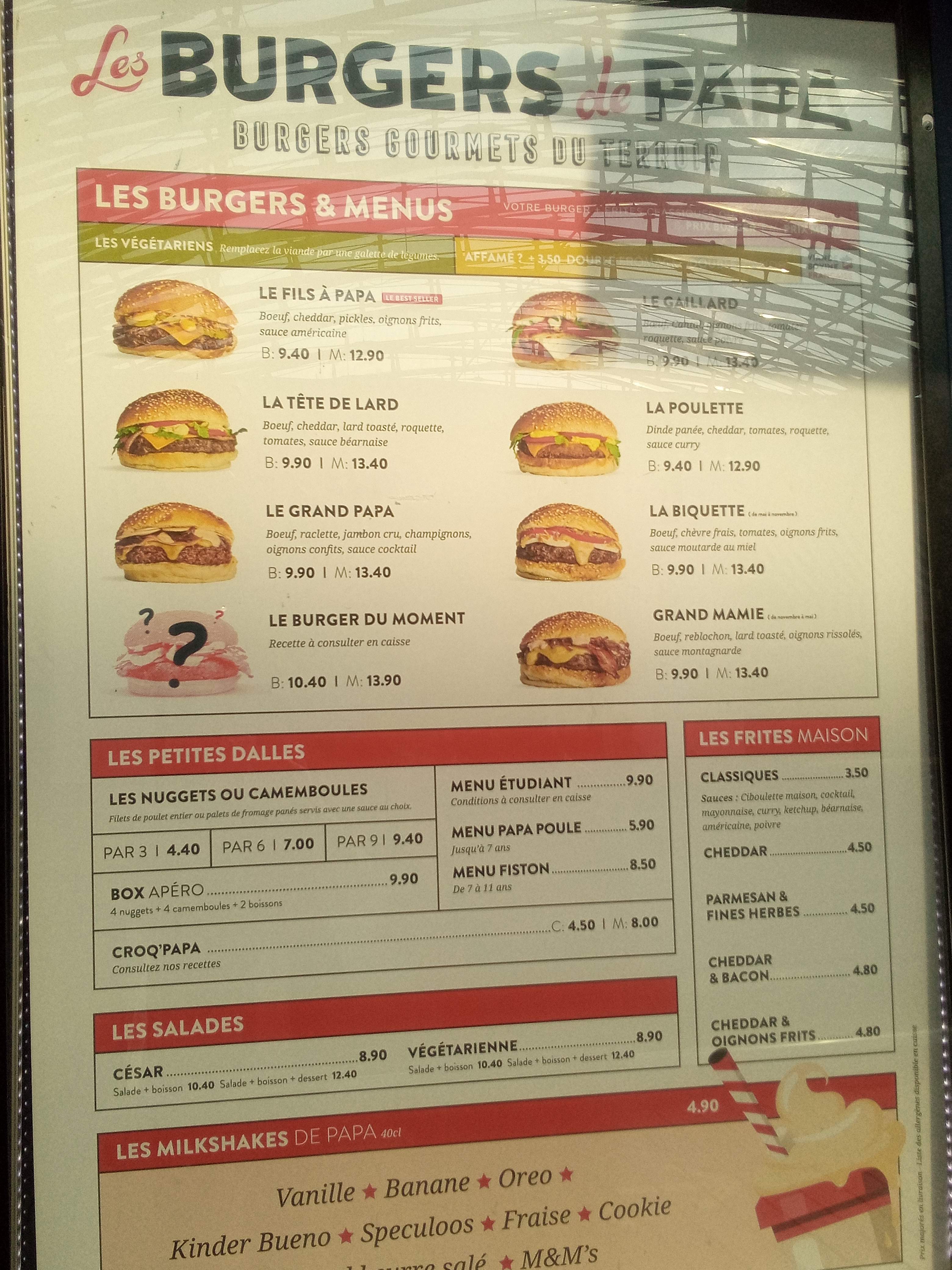 J'ai fait presque tous les burgers papa et encore une fois les burgers ça allait pas ils comprennent toujours pas quand il y a trop de sauce dans un burger ça enlève le goût du steak et le goût du fromage il sont toujours pas compris par contre les frites elles étaient bonnes salées mais le reste ça reste à voir j'ai enlevé la moitié de la sauce et là je sentais le goût du steak et du fromage qui était très bon en plus et le prix que j'ai payé 16 € j'aurais mis à 13 € le menu mais bref.