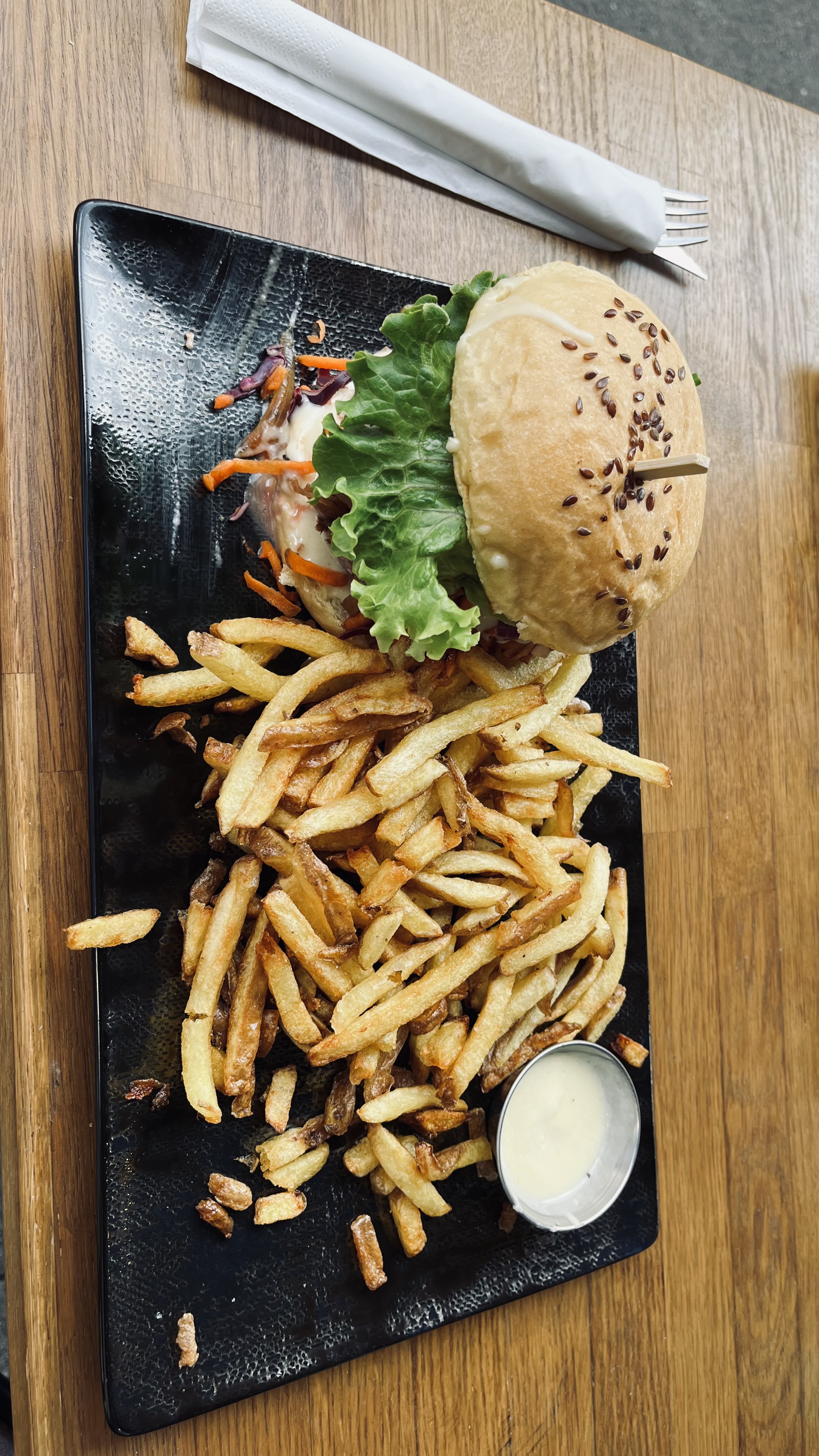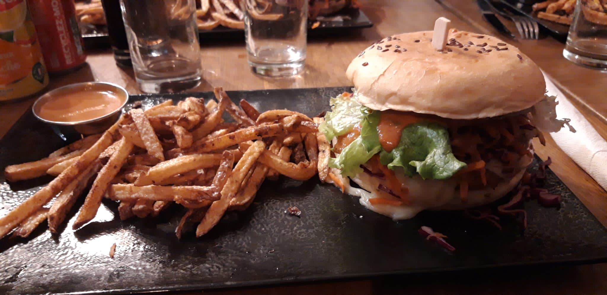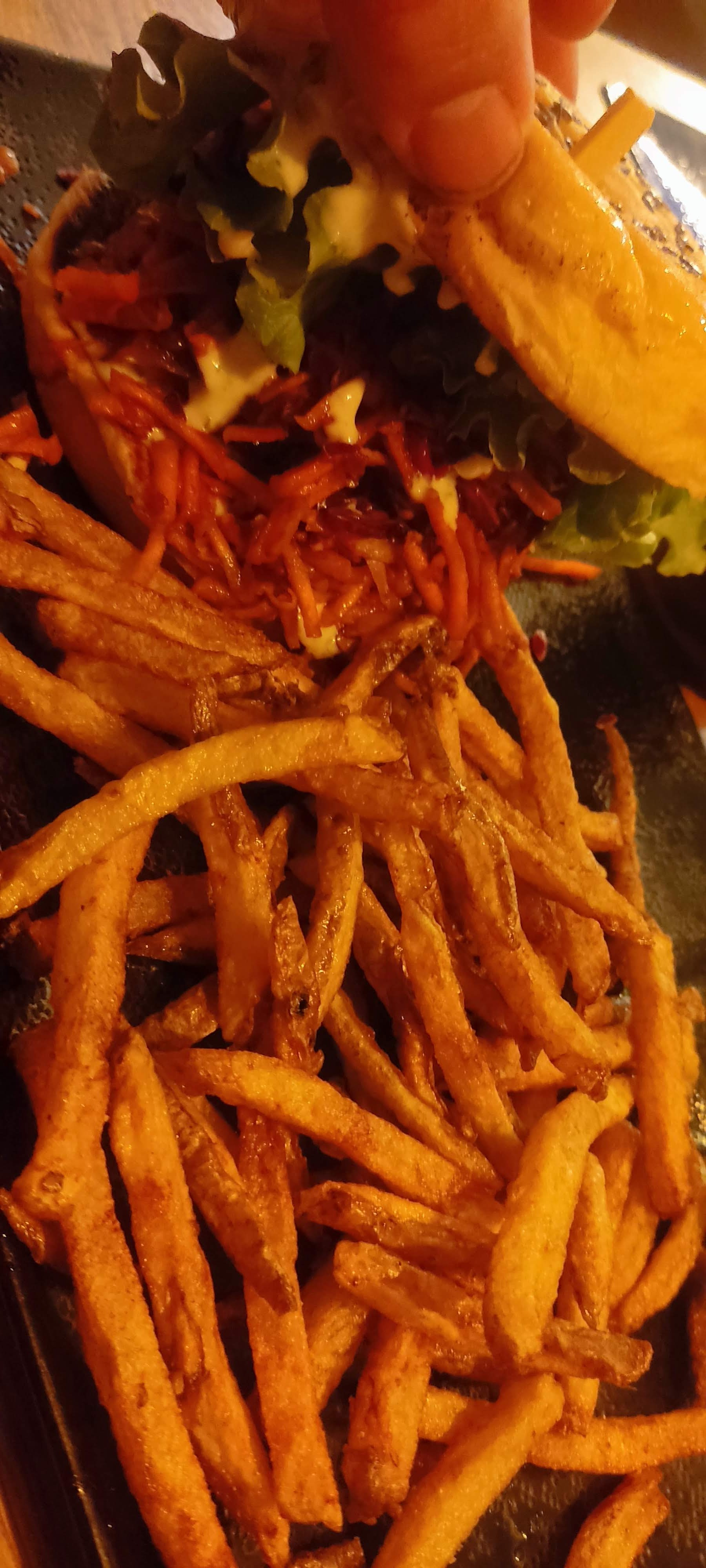 Belle expérience culinaire. Un hamburger revisité aux légumes de saisons et locaux. On ne peut que souhaiter qu'une belle suite à cette aventure de deux amis d'enfance. Bravo !