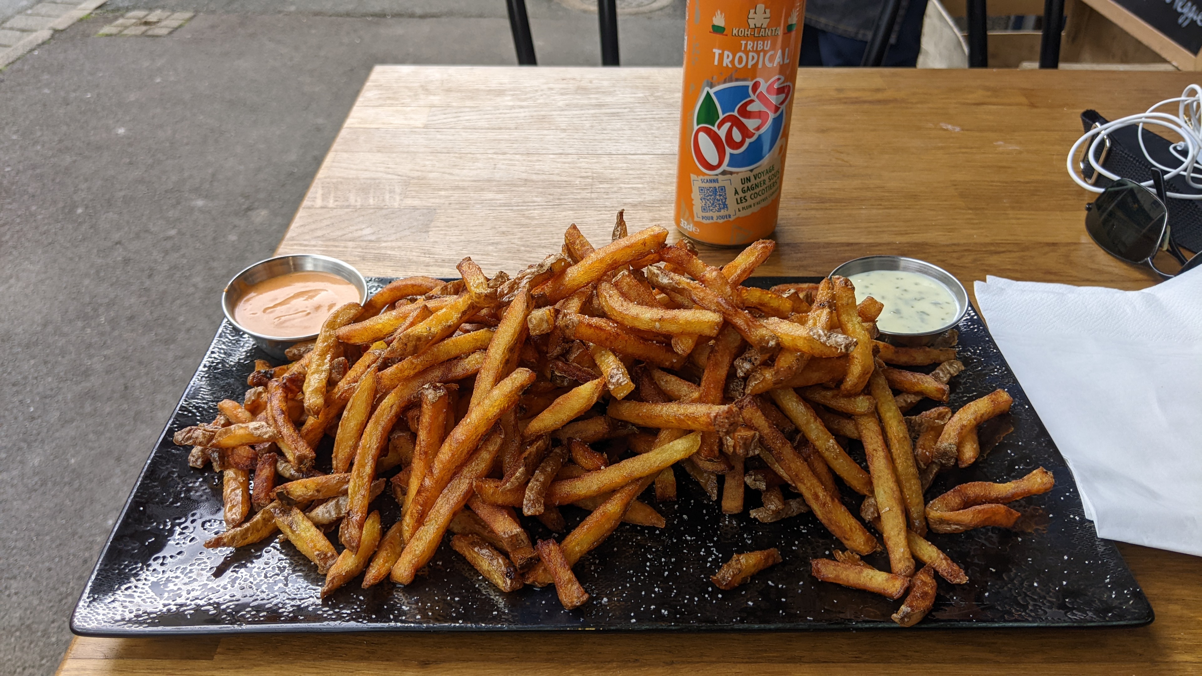 De passage sur le chemin de Compostelle, Cevan m'accoste pour m'offrir gentiment un plateau de leurs excellentes frites avec deux sauces : fromage + indienne et une boisson. Un régal. Cevan et Bertrand, deux jeunes chefs qui ont de la classe. Gérard, le brestois.