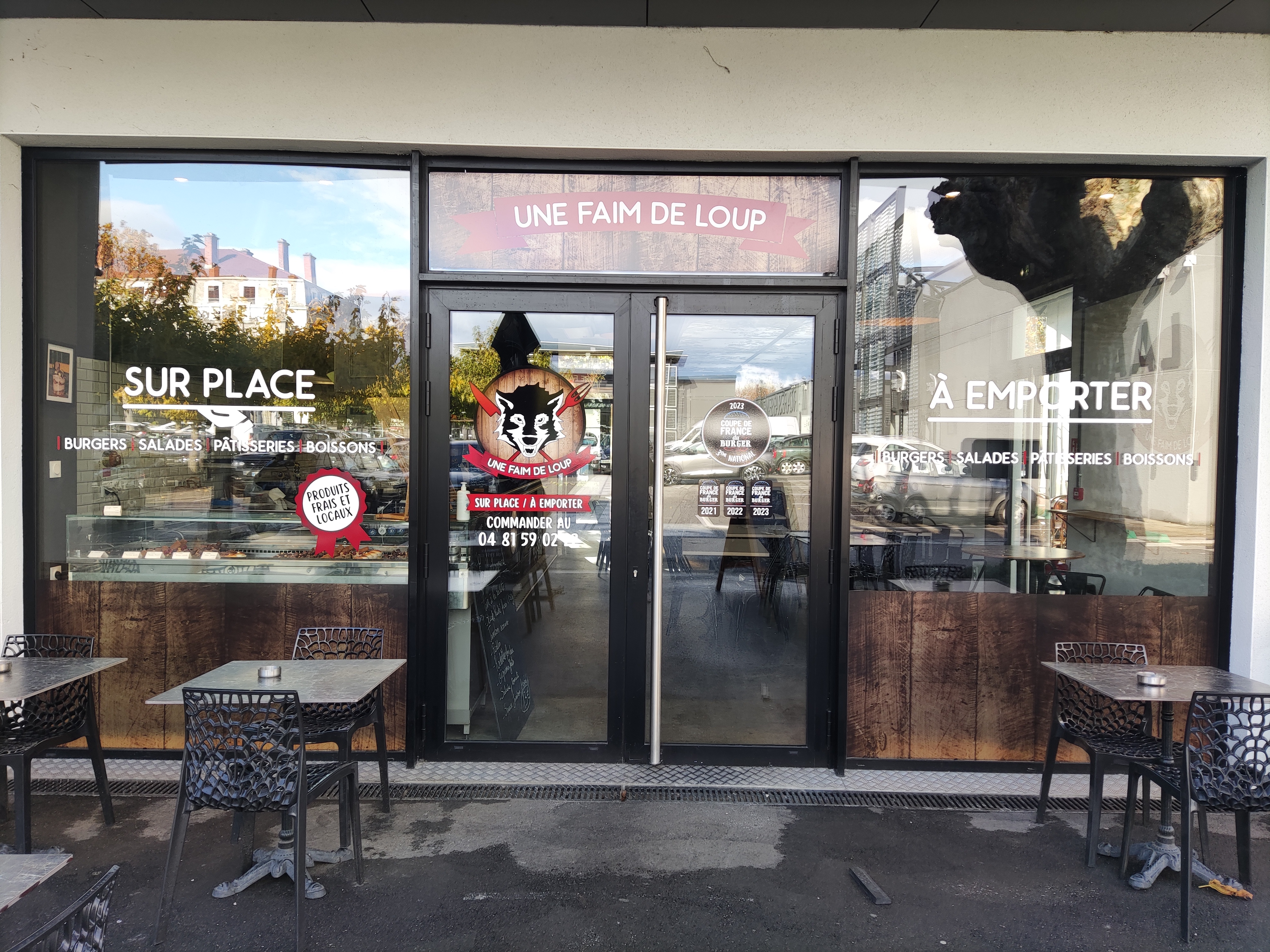 Situé dans Marque Avenue à Romans-sur-Isère, Une Faim de Loup nous promet une expérience gustative. En effet le concepteur des burgers à terminer 3 eme au prestigieux championnat de France de Burger. De plus il est idéalement positionné en face du lycée du Triboulet. Ambiance • Niveau cadre, le restaurant a été refait entièrement. Pour l’instant le cadre est minimaliste, mais les nouvelles tables arrivent bientôt. Le gros plus c’est l’ouverture vers l’extérieur de Marque Avenue. Le restaurant peut etre ouvert sans que Marque Avenue le soit. Il y a deux terrasses qui pourront etre exploiter quand il fera beau. Service • Accueil jeune et sympathique, on commande notre repas à l’accueil et ensuite nous sommes servit à table. Le service a été très rapide malgré le monde dans le restaurant. Carte et Cuisine • Le concept et simple c’est un restaurant de burger. Il y a cinq burgers permanents dont un VG + un burger du mois. Il y a aussi trois salades différentes, un système de tapas à partager, (jalapeños, poulet frit, ravioles frits, frites etc… et pour terminer des desserts. • La carte n’est pas très grosse mais tout est fait maison. • J’ai pu tester trois burgers, le classico, le franchouillard et le burger du mois le montagnard. Les trois était excellent avec une préférence pour le franchouillard. Le pain est vraiment exceptionnel, il vient de la boulangerie « chez Vincent » à Mours Saint Eusebe et le steak est du bouché. Les frites sont très bonnes mais c’est des frites à la française. Pour le dessert, j’ai pu tester le tiramisu ou kinder bueno qui est très bon. Vins et Boissons • Les boissons dans le menu son des canettes simples (coca, Orangina etc…) Il y a possibilité de prendre de la bière fournis par le « Mybeer d’étoile » Niveau du vin bon là, il y a une grosse marge de progression, car le vin n’était pas bon. Mais cela va vite changer selon le patron. Rapport Qualité-Prix • Les prix ne sont vraiment pas chers, le classico est à 8.90 soit 25 centimes de plus qu’un double big-tasti du MacDo. Le burger le plus cher est à 12.90. Pour le menu c’est 5 euros de plus. Pour moins de 20 euros vous avez mangé de la qualité et vous n’avez plus faim. Les étudiants ont le droit à une réduction avec le menu classico à 11 € 90 Conclusion • Enfin une enseigne sur Romans qui fait du Fast Food de qualité. Cela manqué. Je recommande 100 %.