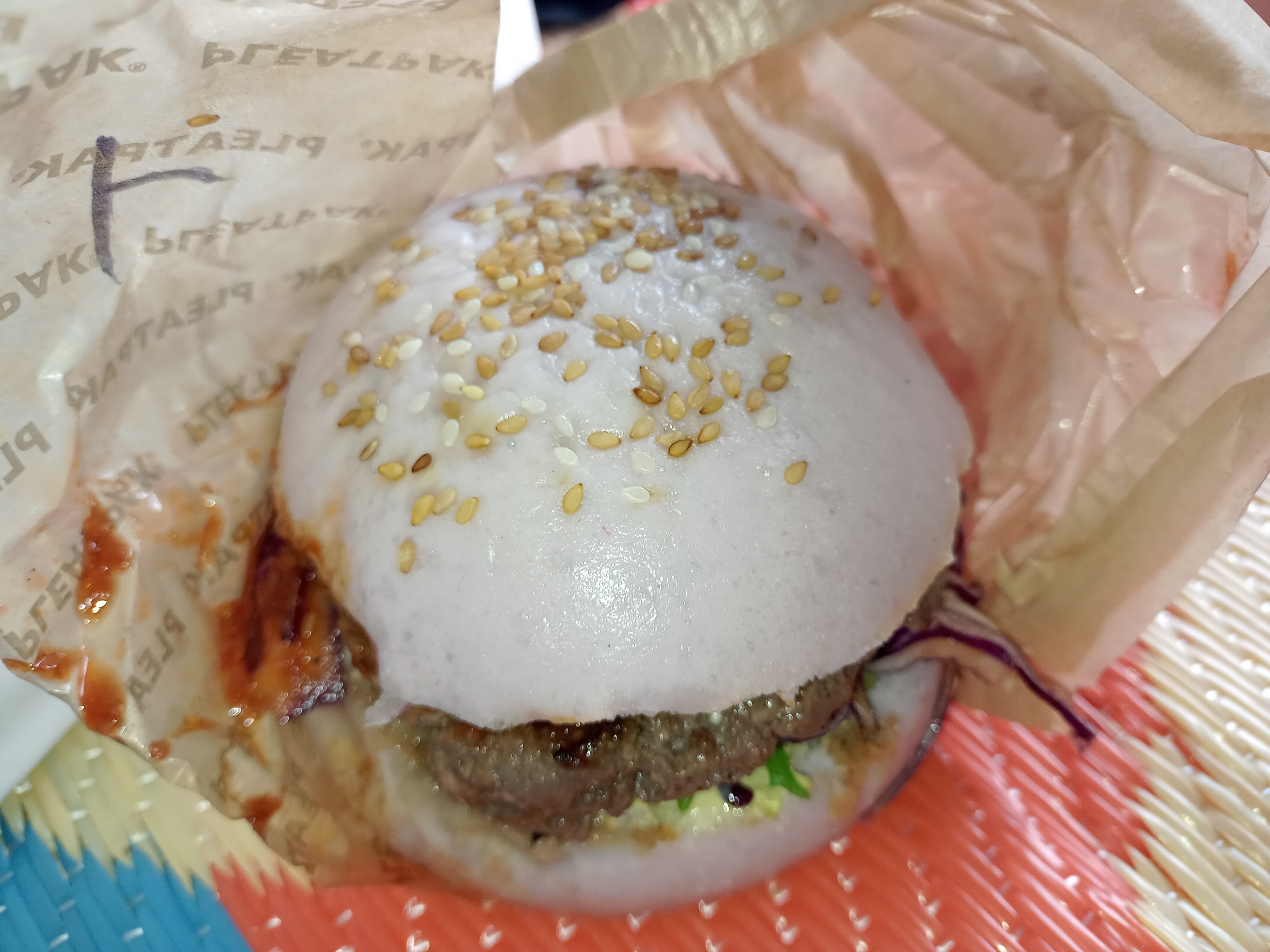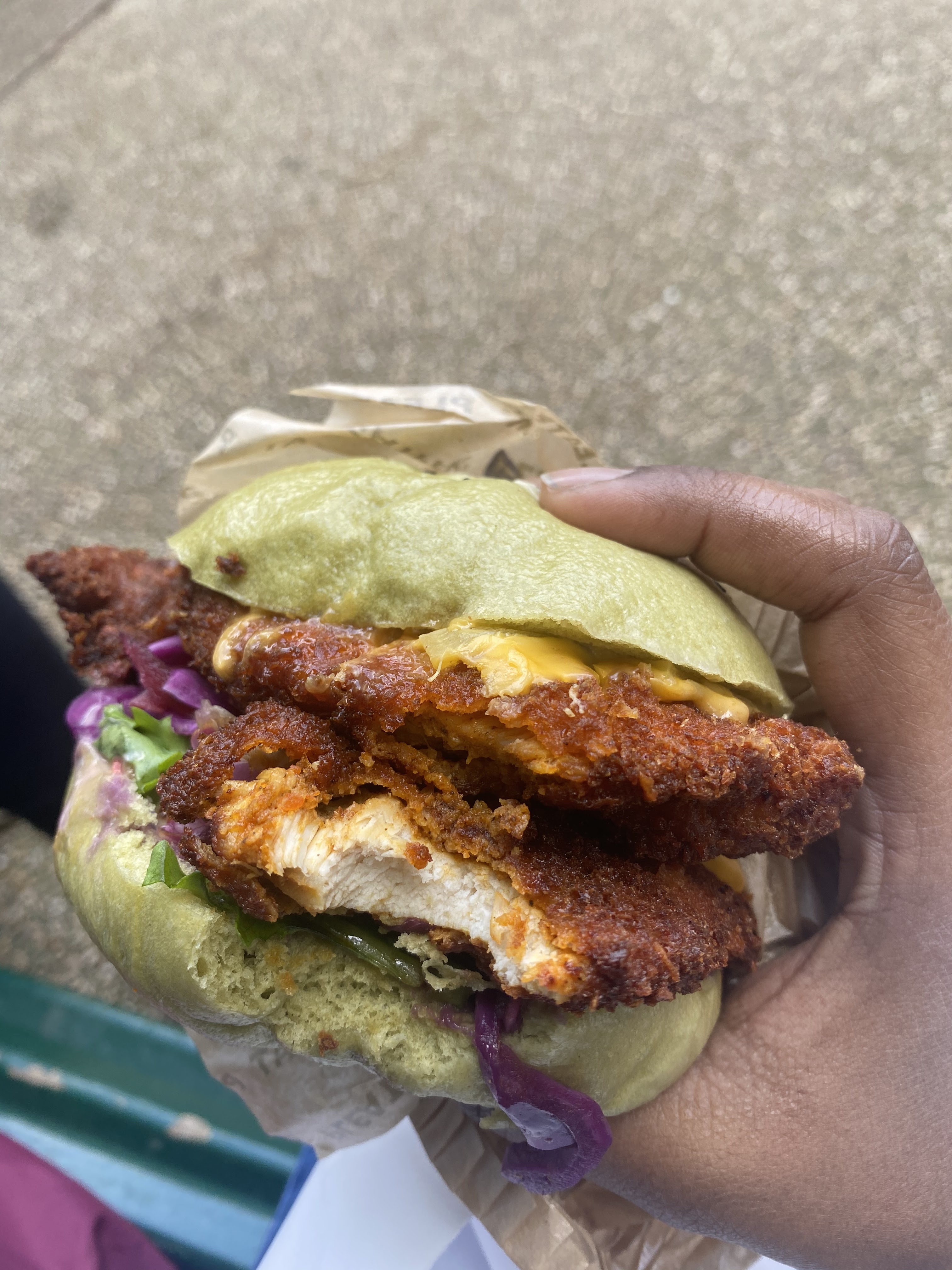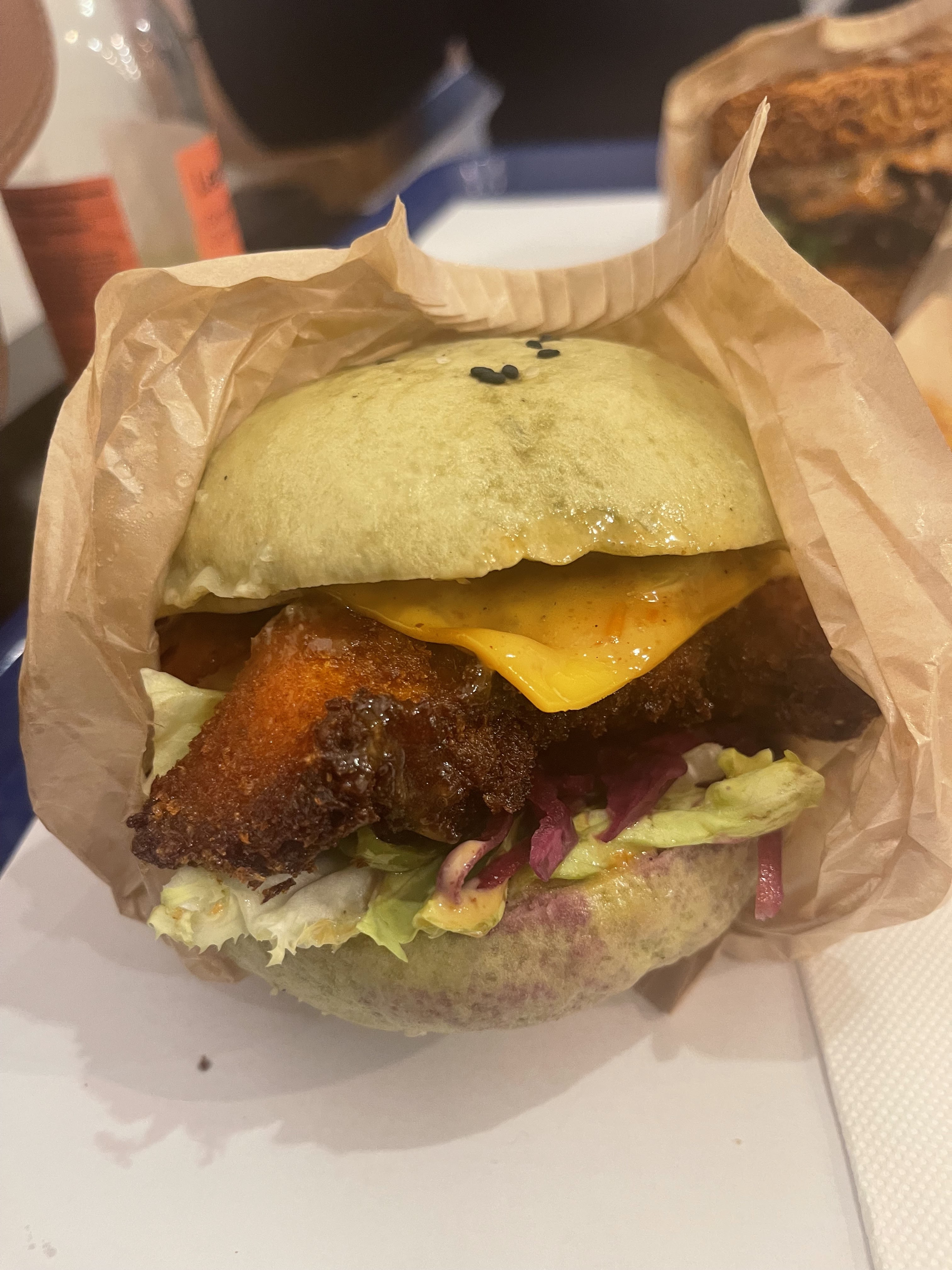 Un burger différent, au matcha mélange sucré/salé intéressant et qui cale bien.