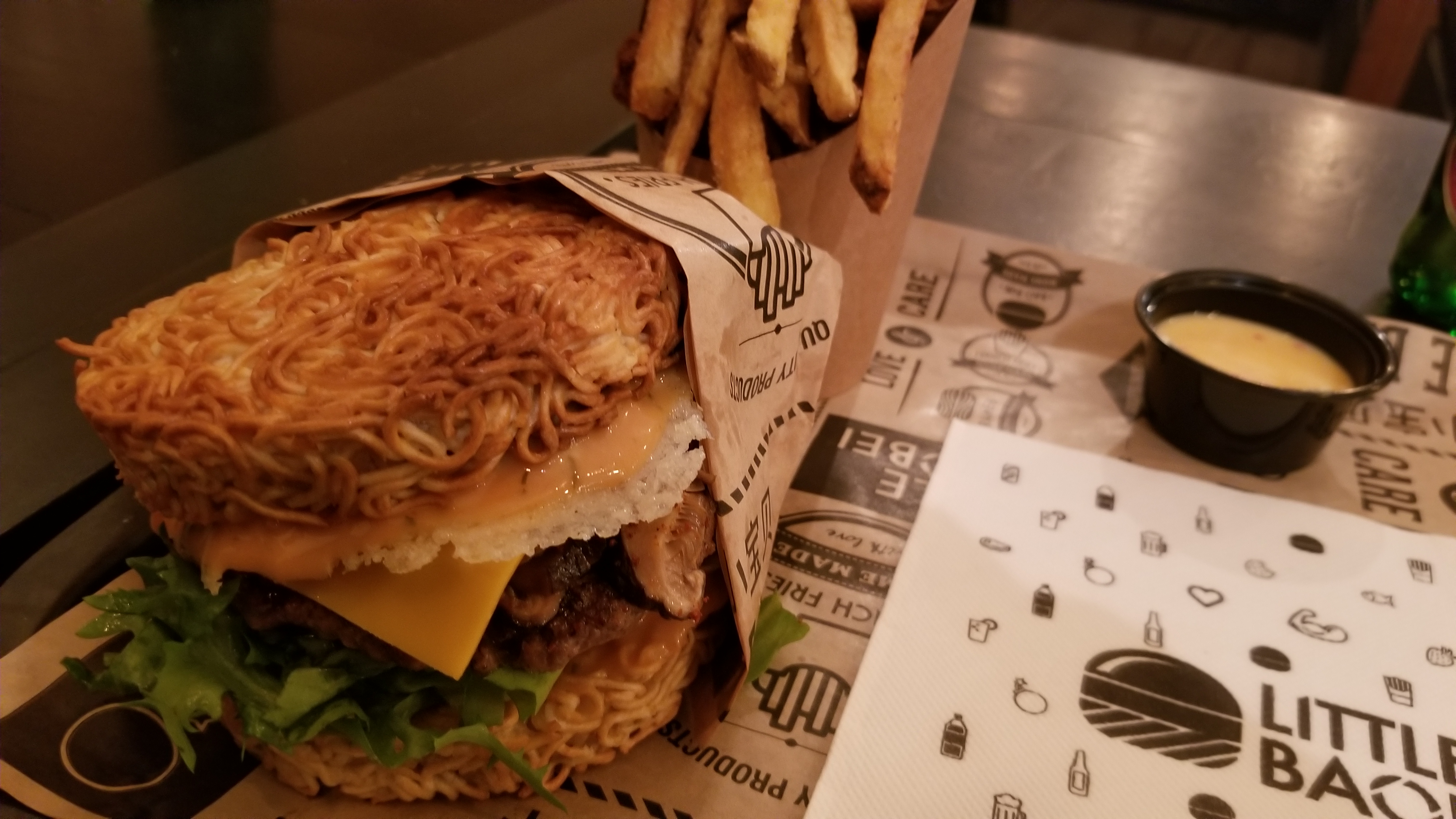 Au risque de paraître excessive, c’est de loin le meilleur burger et les meilleures frites que j’ai mangé ! Tout avait énormément de goût même si j’avoue avoir moins aimé le ramen burger que le bao. Vous pouvez y allez en étant certain d’être bien accueilli par le personnel très sympathique.