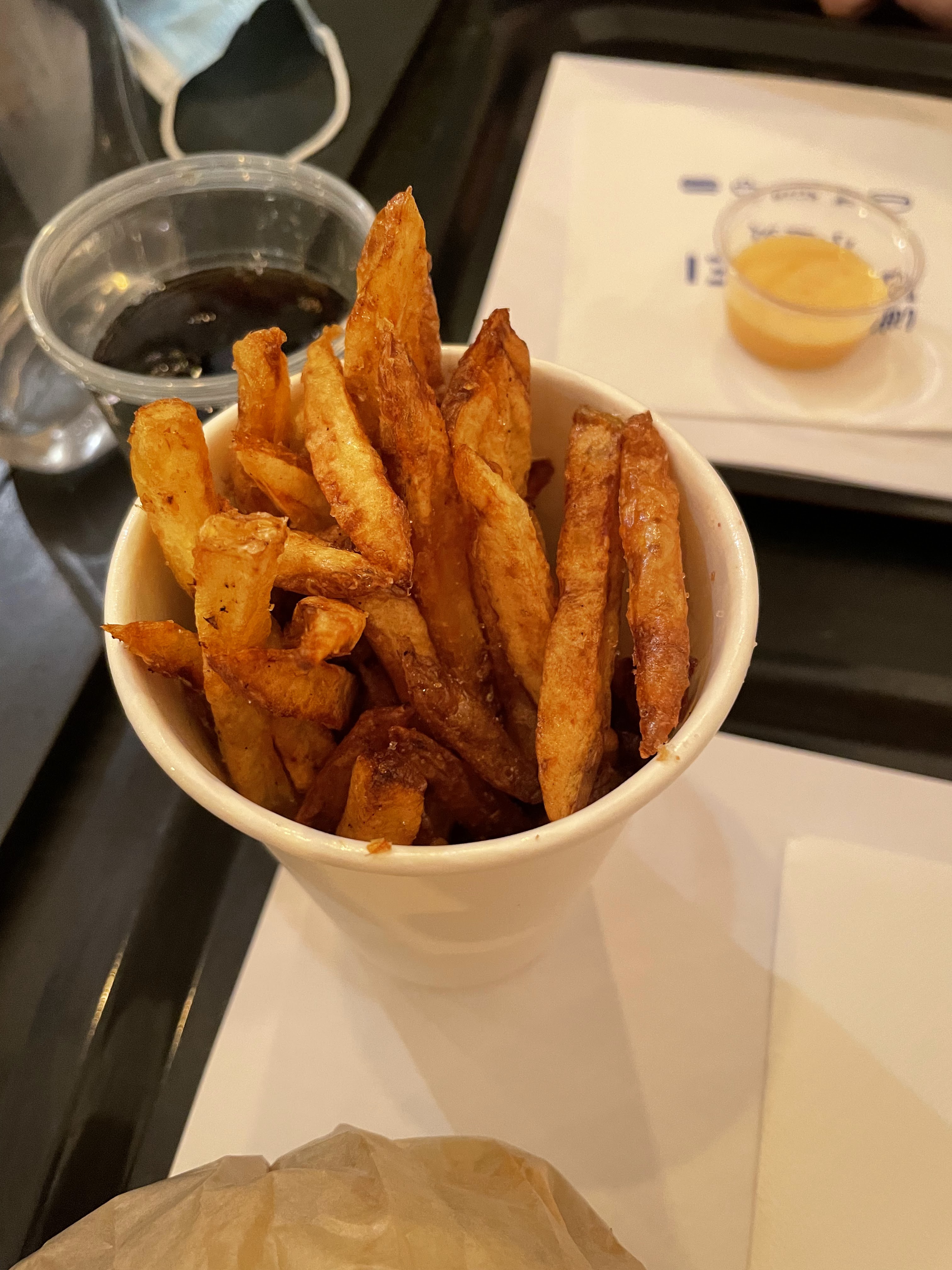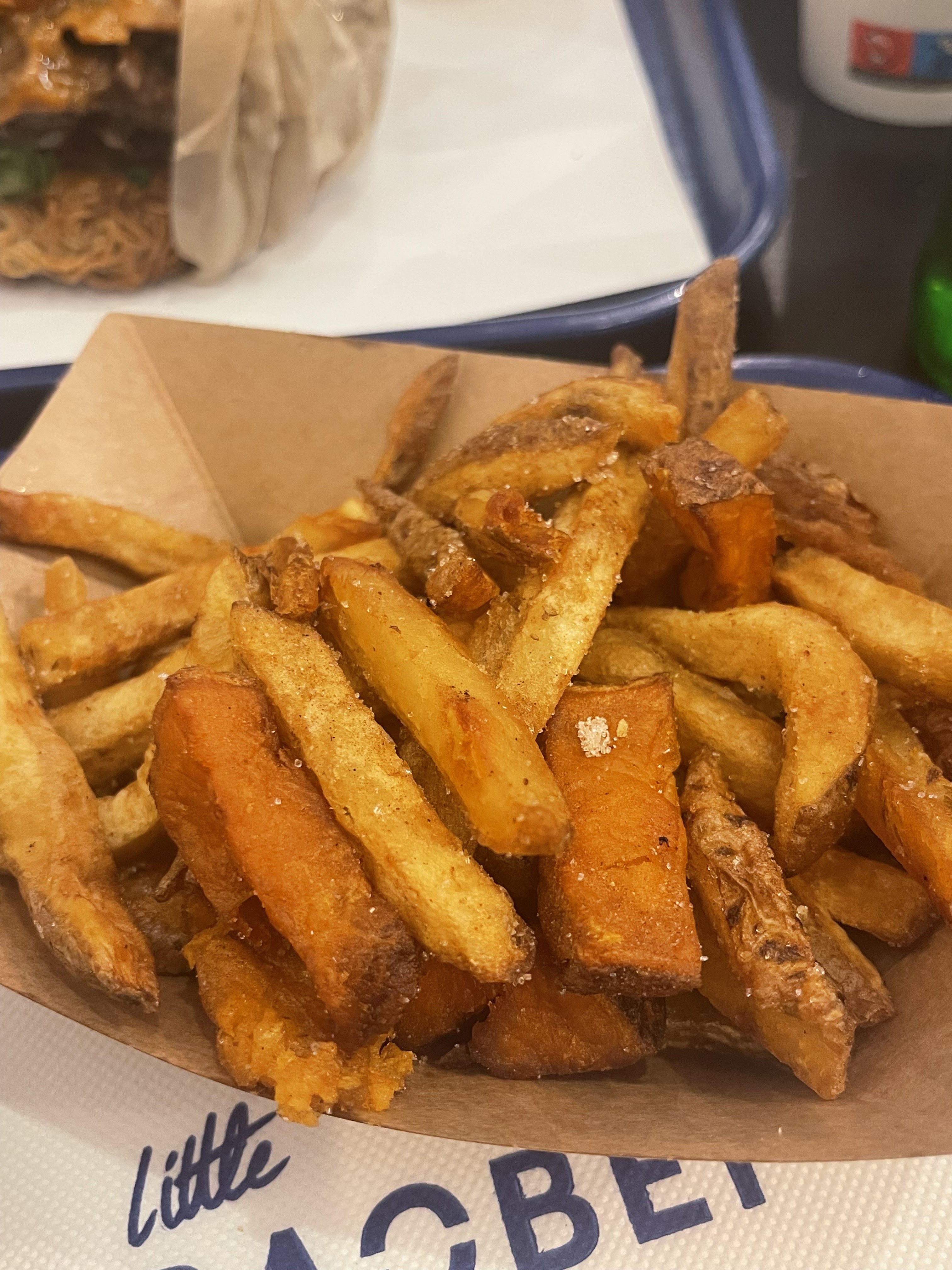 Un mélange de saveur intéressant. Les frittes sont plutôt bonnes. Si vous aimez le salé avec du sucré et que vous souhaitez manger un burger, je vous conseille de goûter.