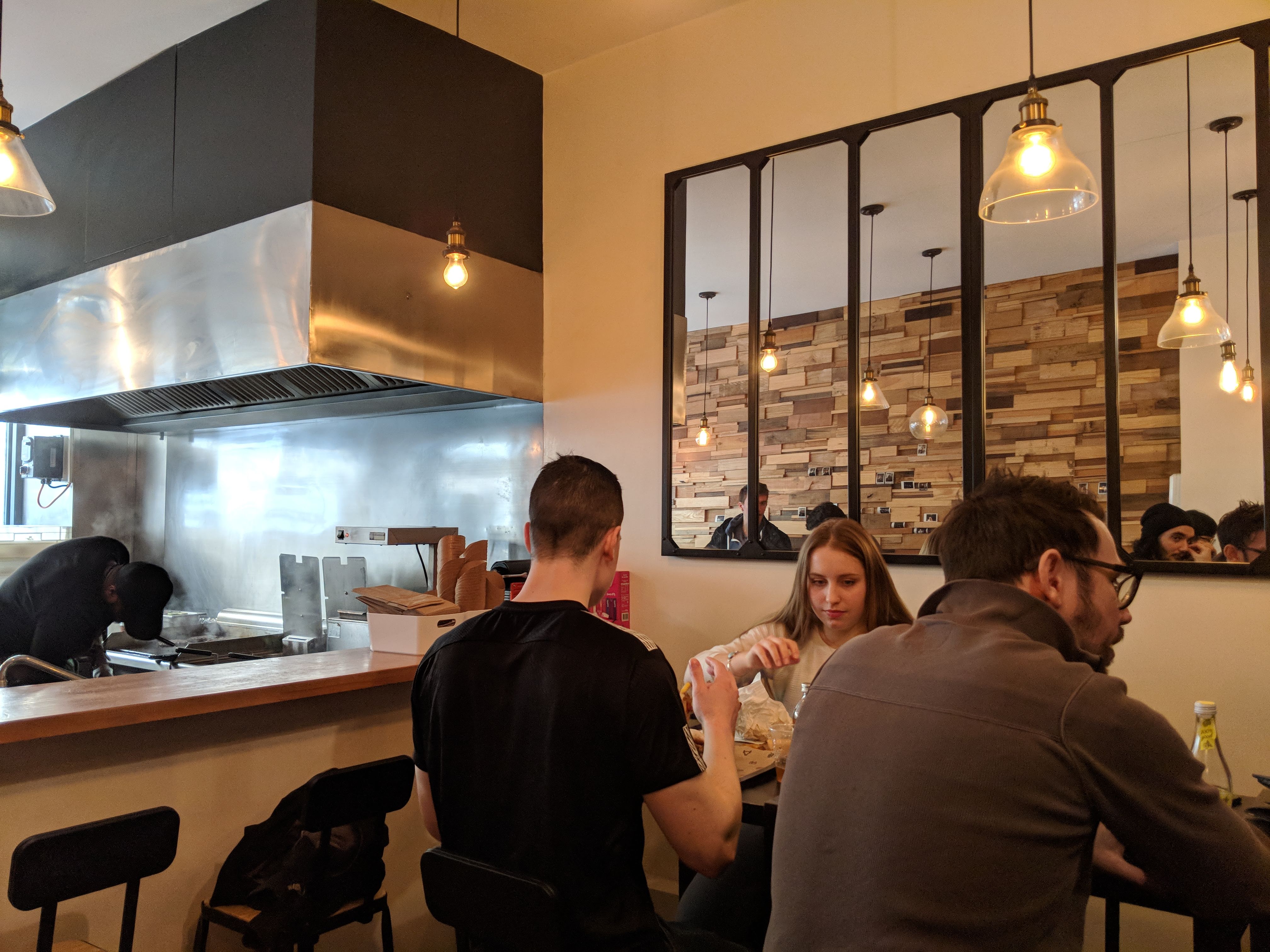 Nous avons adoré le concept de l’emballage du burger. C’était bon. Mais le poulet trop épicé et cela n’est pas annoncé. Dans son ensemble, Bonne découverte. Par contre, lieu non chauffé et les tables étaient collantes . Pas très agréable.