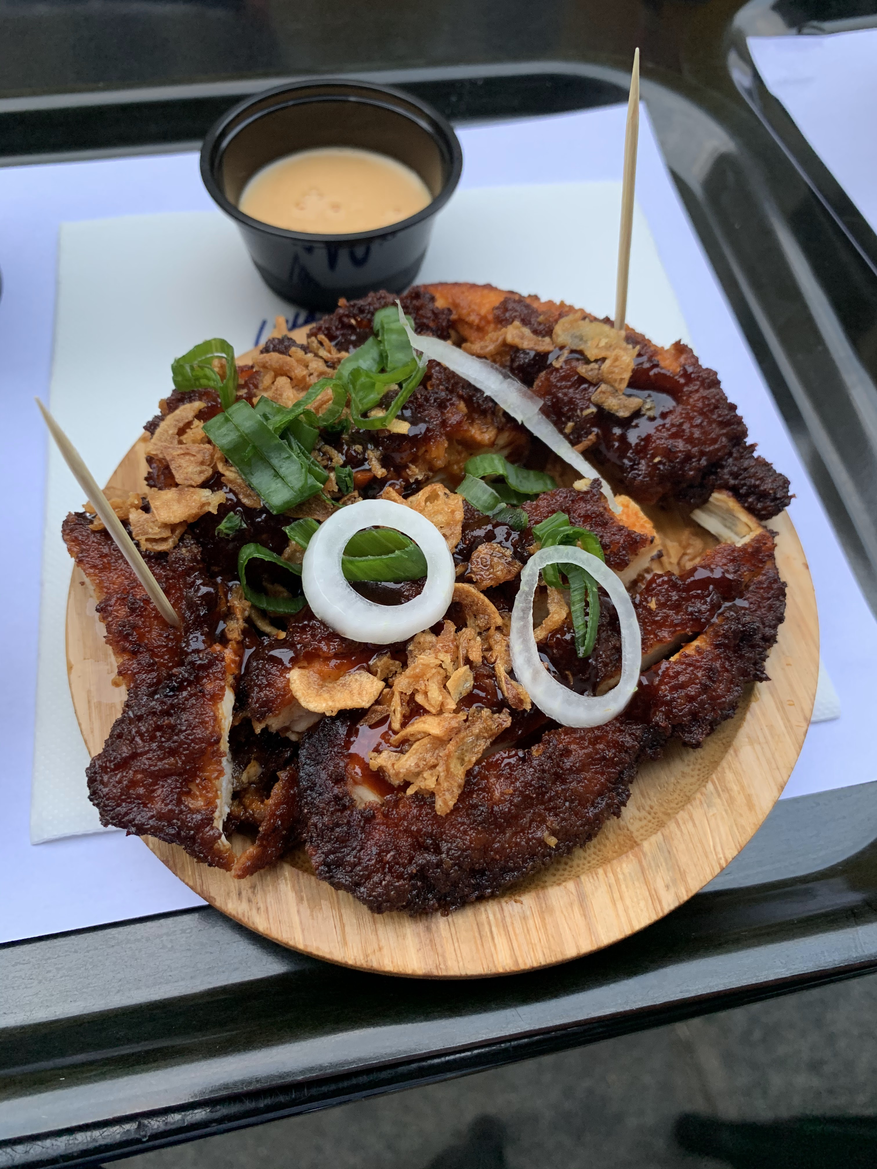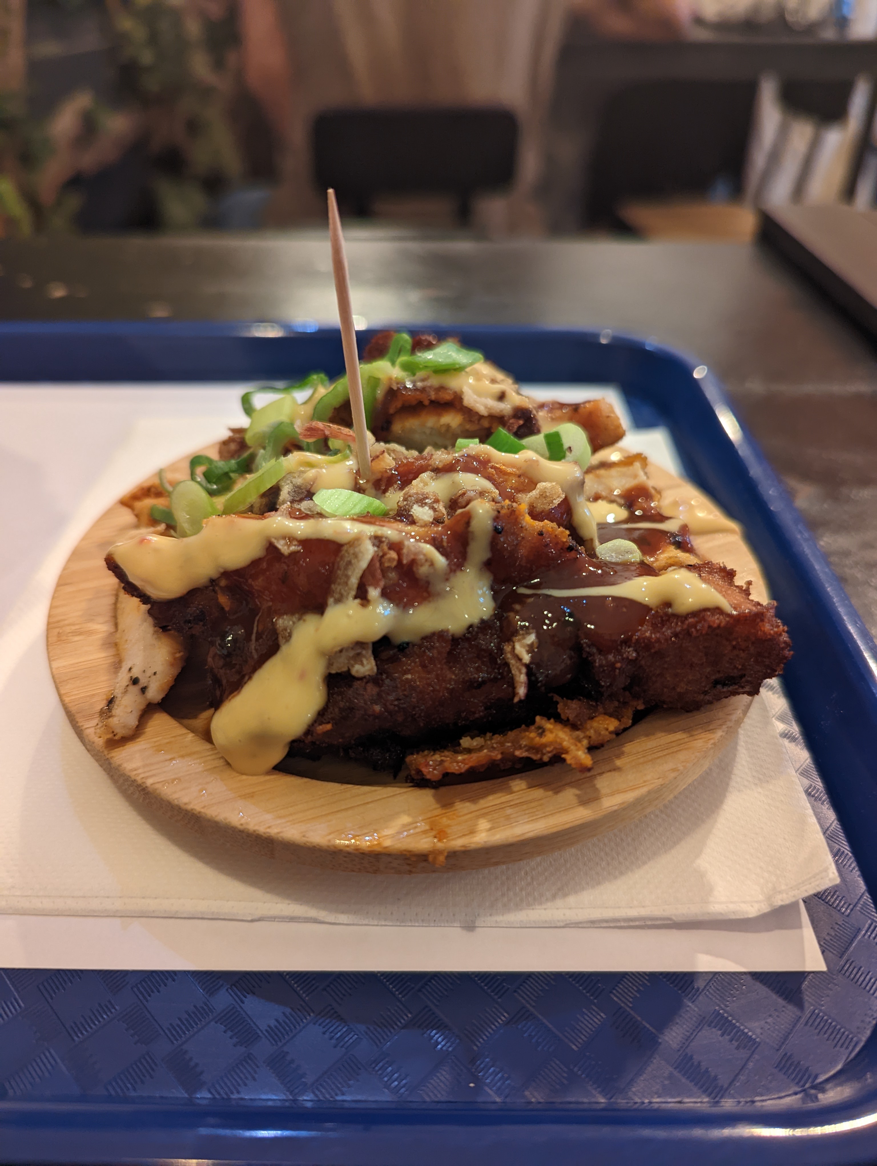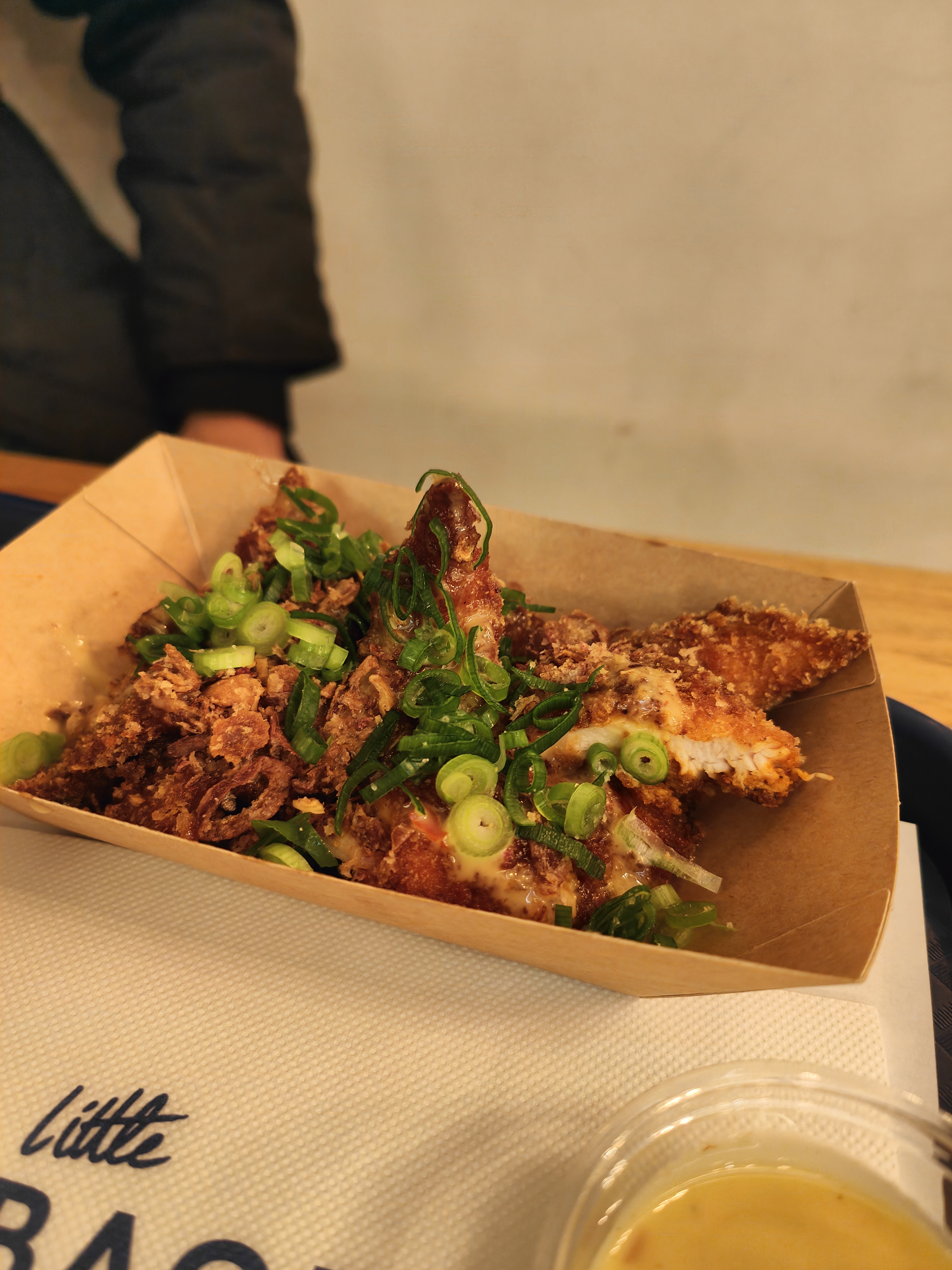 Délicieux (bao poulet croustillant) et copieux. Les frites étaient assaisonnées sucré salé, j'ai apprécié mais ce n'est pas au goût de tout le monde. Par contre l'endroit est vraiment petit et nous avons un peu attendu pour nous faire servir, dans un nuage de graillon 😅