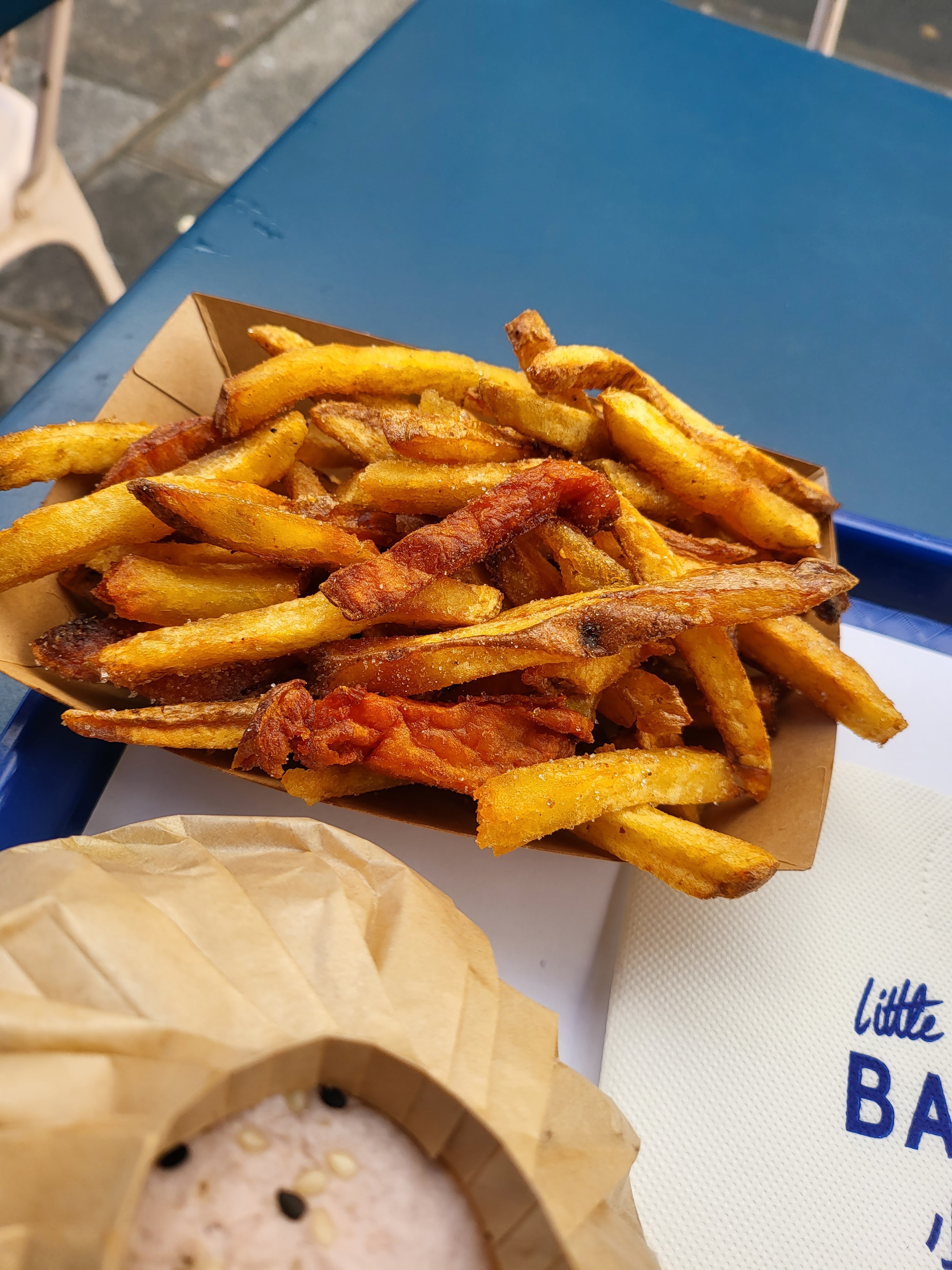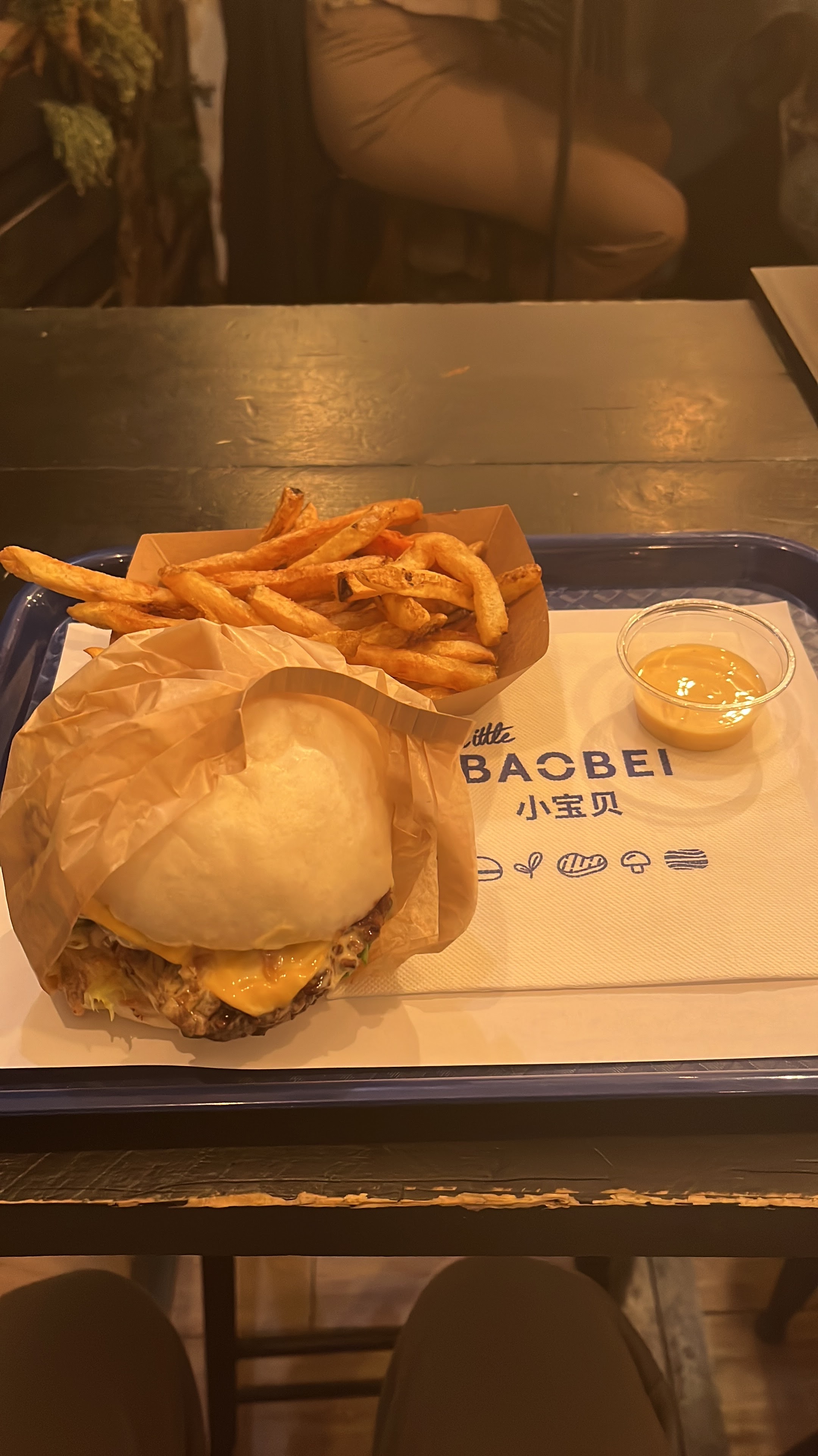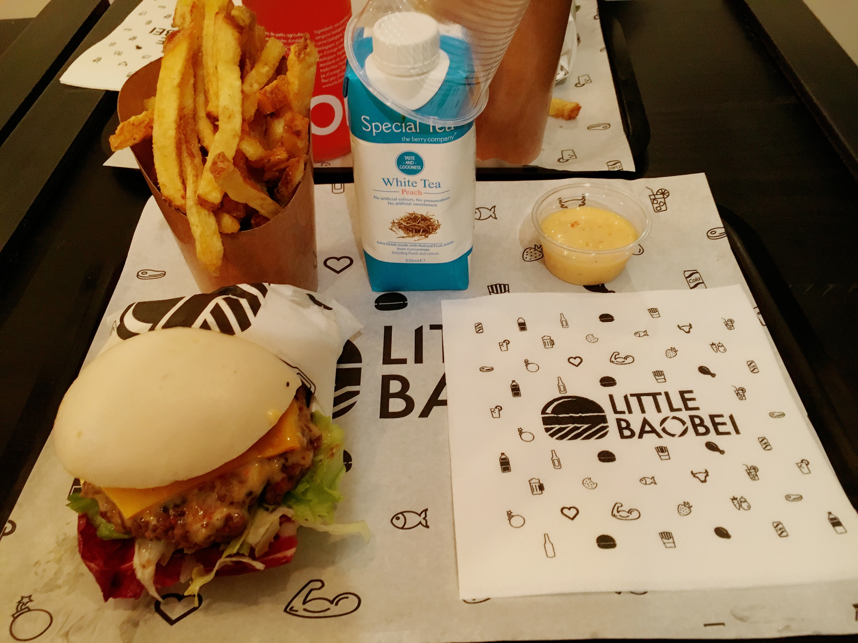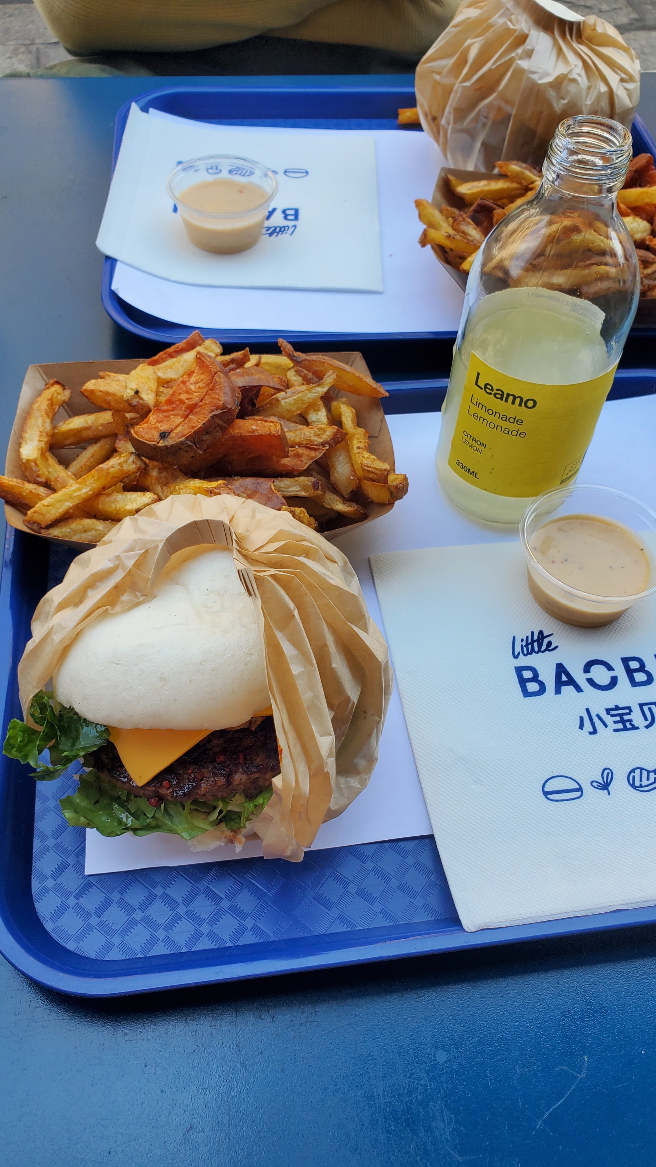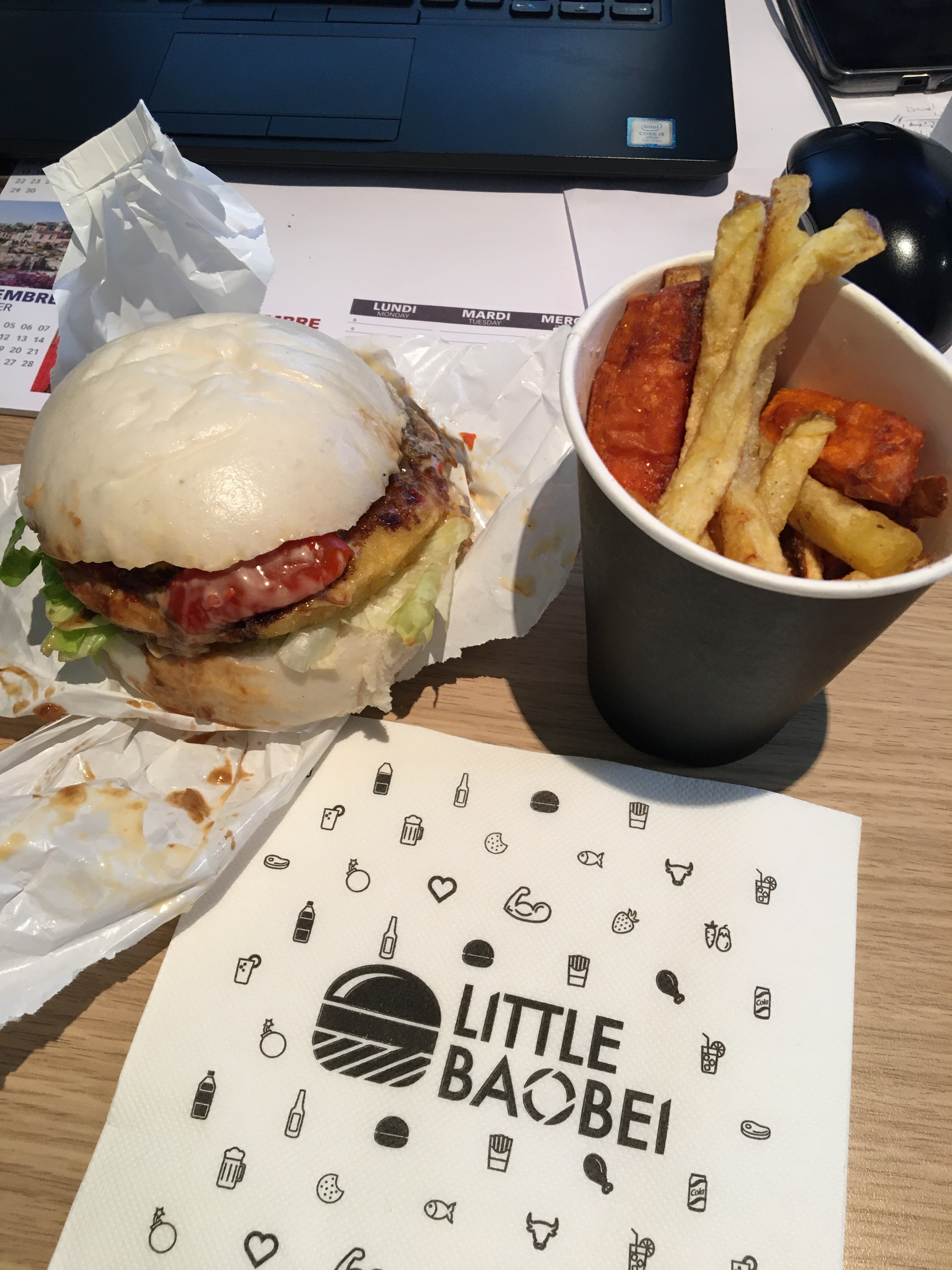 Cela fait un bon moment que je mange chez Little Baobei, j’appelle ce restaurant la valeur sure car le gout du burger festif n’a jamais changé et reste délicieux. La sauce frite maison est également superbe. Le prix est parfaitement convenable pour la qualité des produits. Le service est rapide ainsi que la prise de commande. Il n’y a pas beaucoup de places donc à ne pas venir en grand groupe et vous ne pouvez pas réserver. - : il n’y a plus la poudre sur les frites et on a perdu des gouts sur les limonades