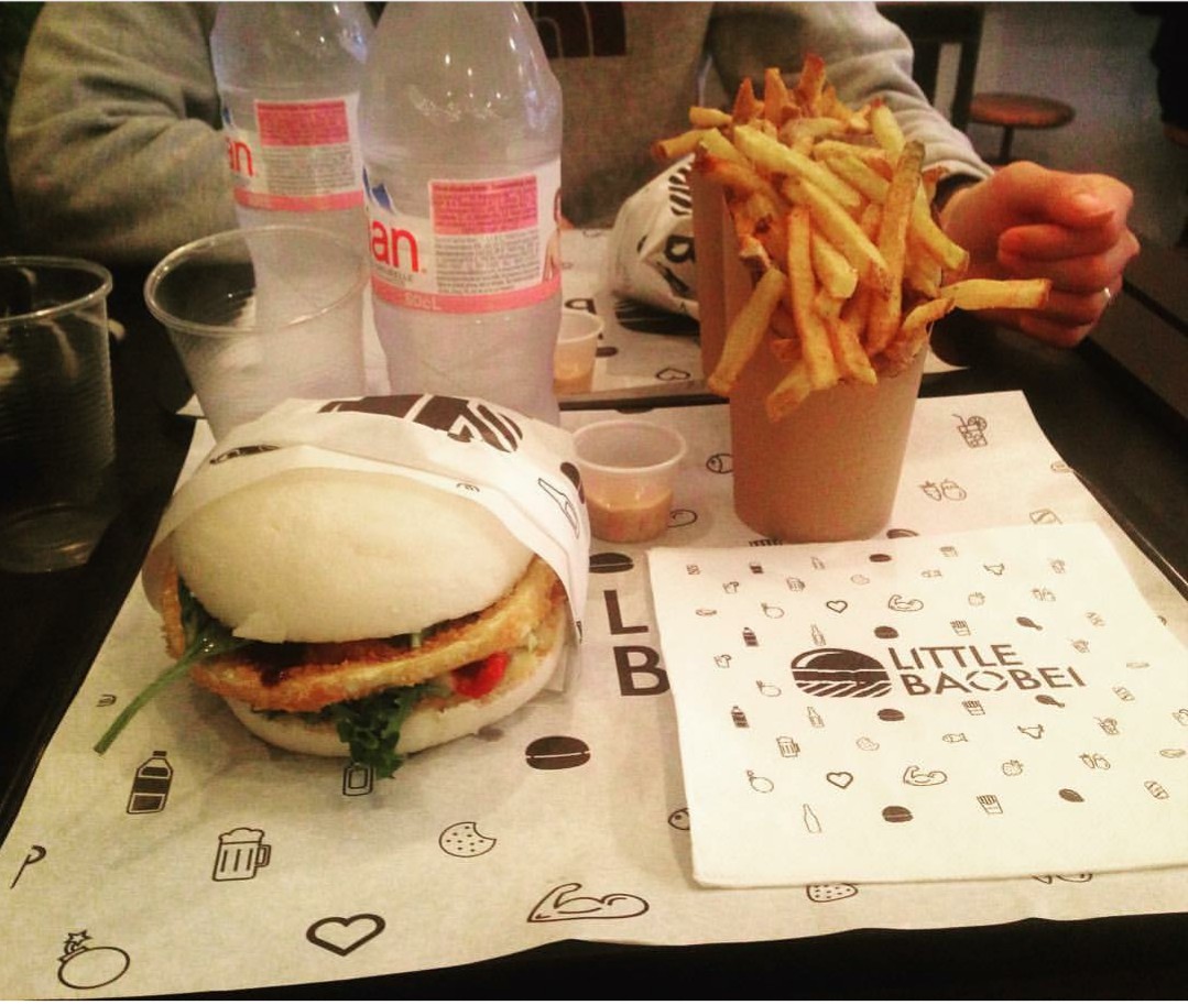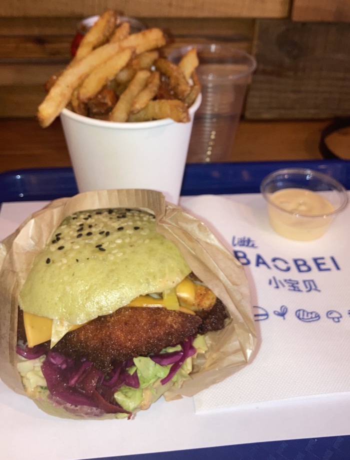 🍔 Des Baos Burgers 🍔 Little Baobei est spécialisé dans le bao burger : le pain est une brioche cuite à la vapeur, avec une protéines au choix (bœuf, poulet, poisson, ou fromage). La brioche est excellente: aussi bien légère que moelleuse, elle se mariera très bien avec la sauce et la protéine. En revanche, je suis un peu déçue des frites qui étaient gorgées d'huile et peu croustillantes. Les tenders de poulet étaient secs et trop salés. Il faut compter 16€ pour une formule.