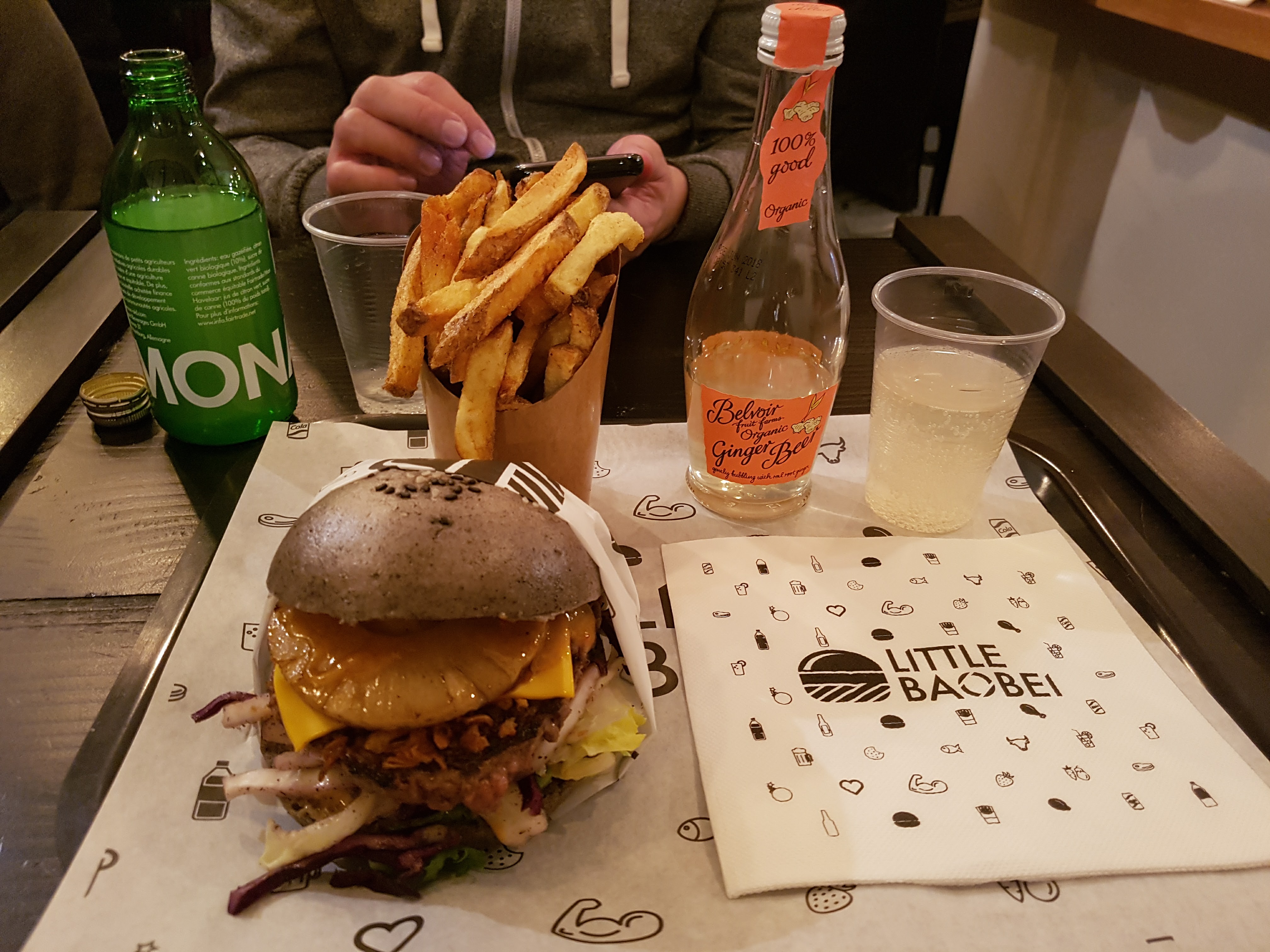 Deuxième fois que je goûte Little Baobei et je trouve les burgers super original. J’ai adoré mon fish burger au saumon, le seul hic serait le gingembre mais chacun ses goûts ! Les serveurs étaient super sympa mais le service un peu long.