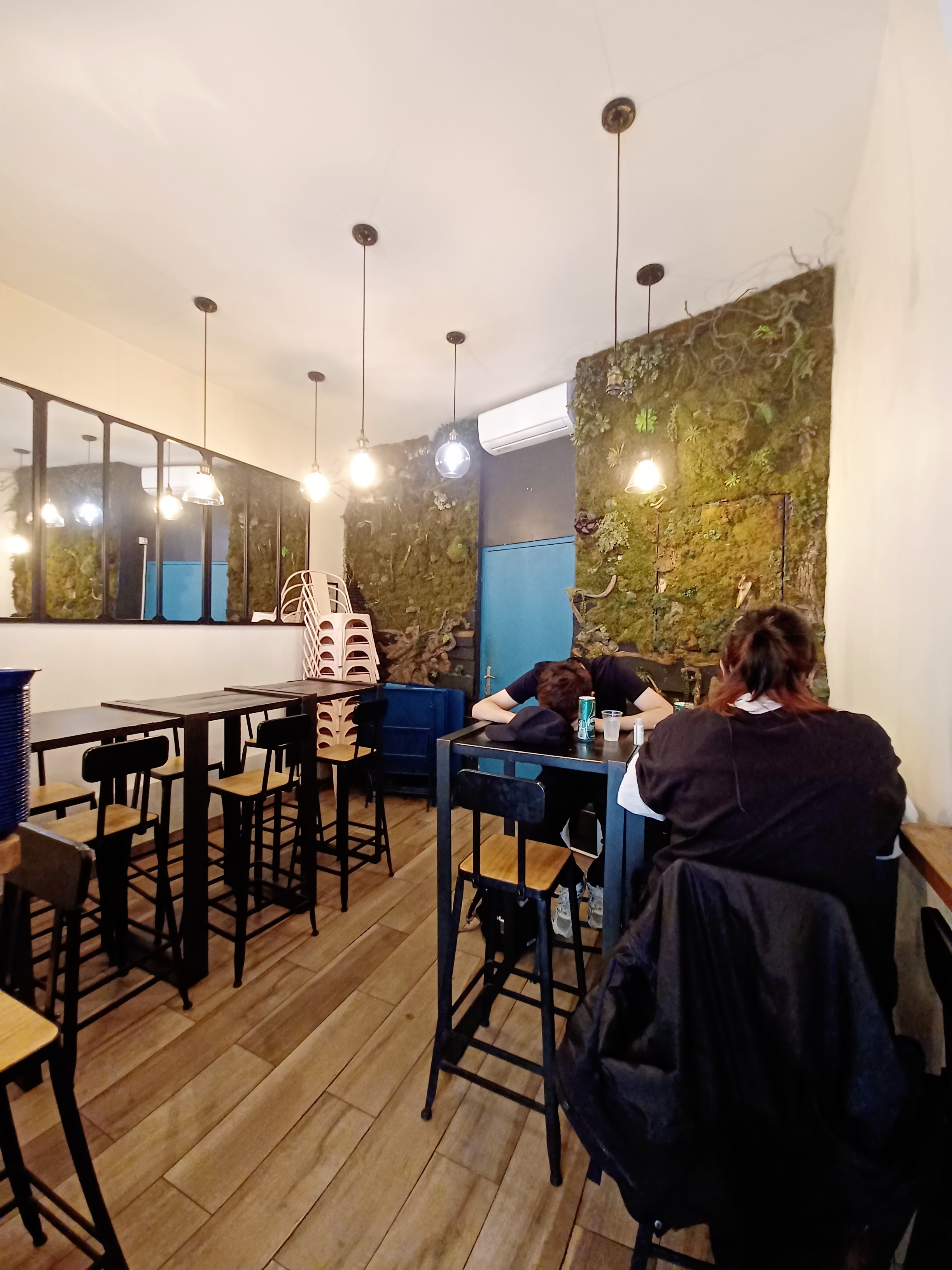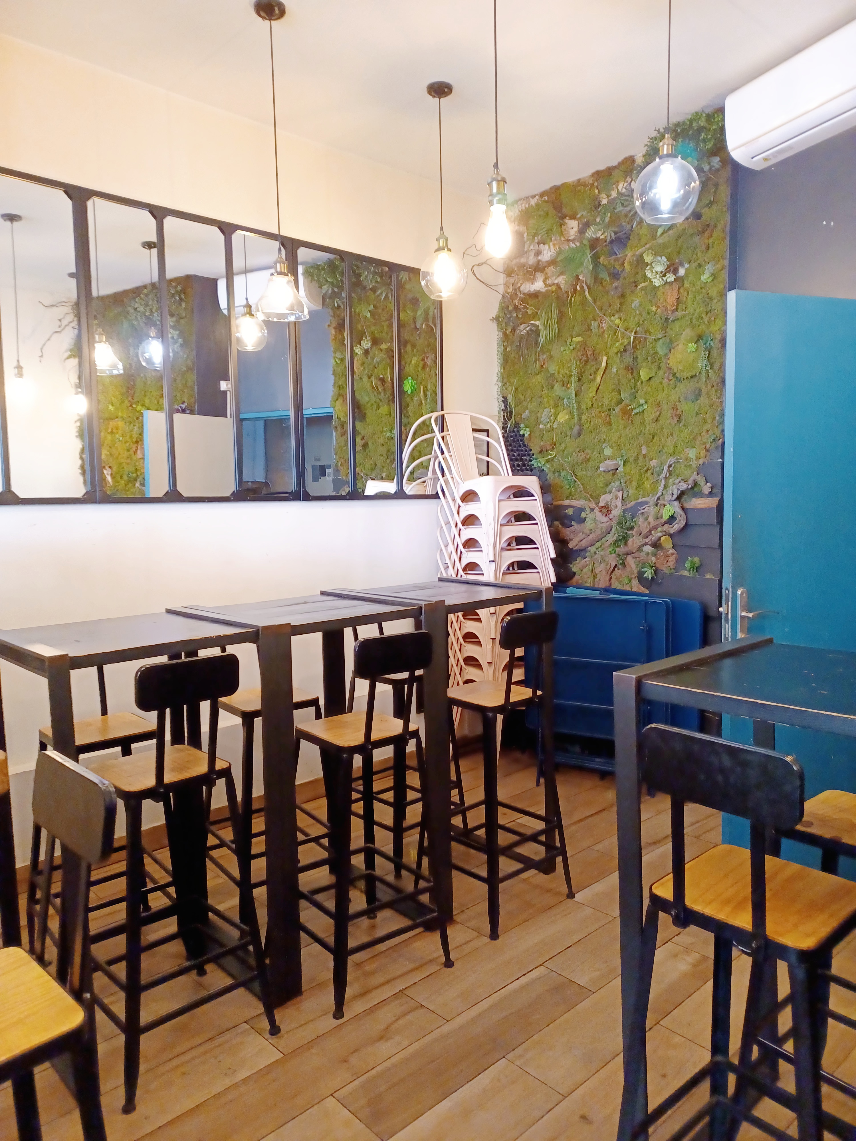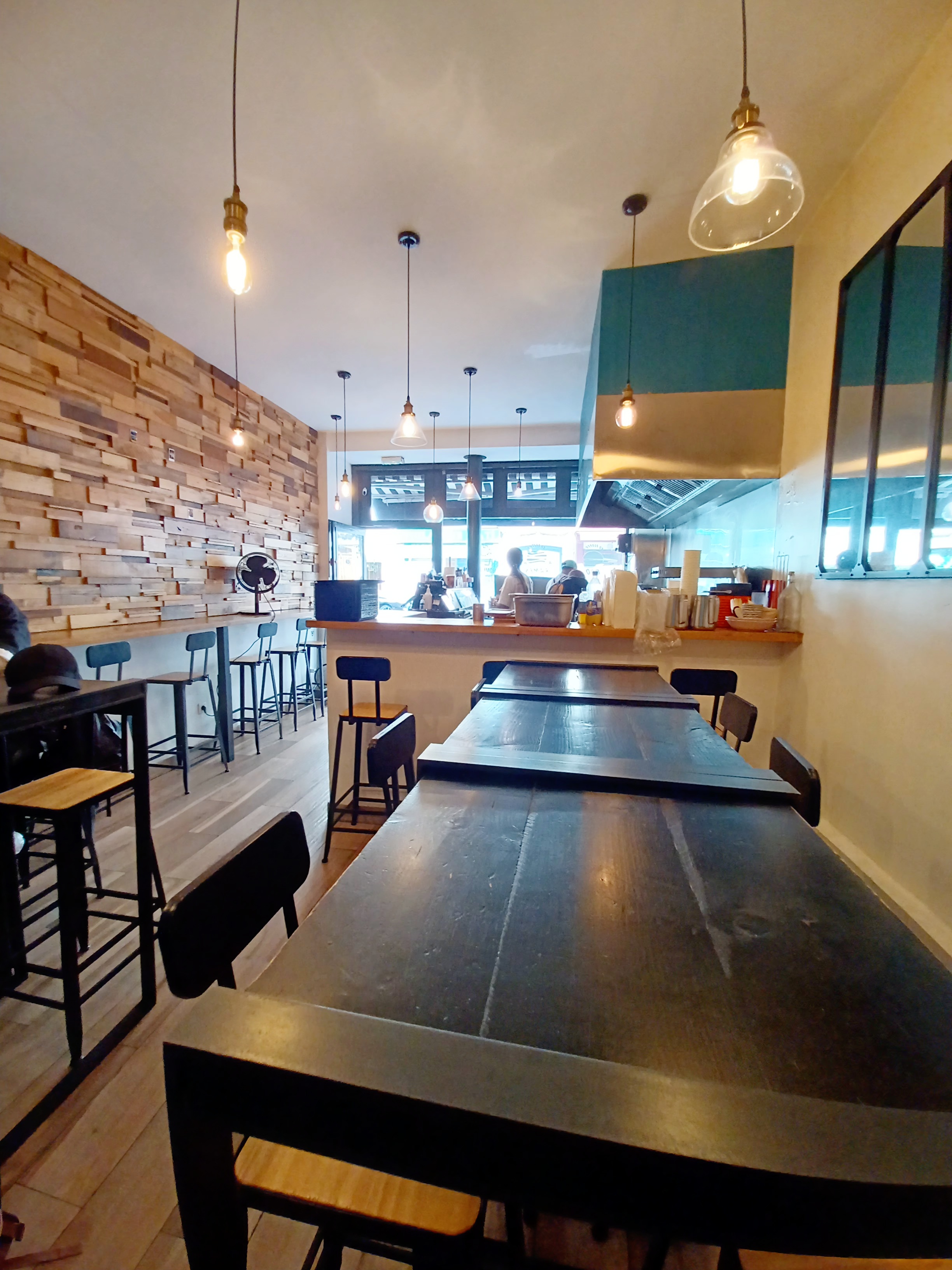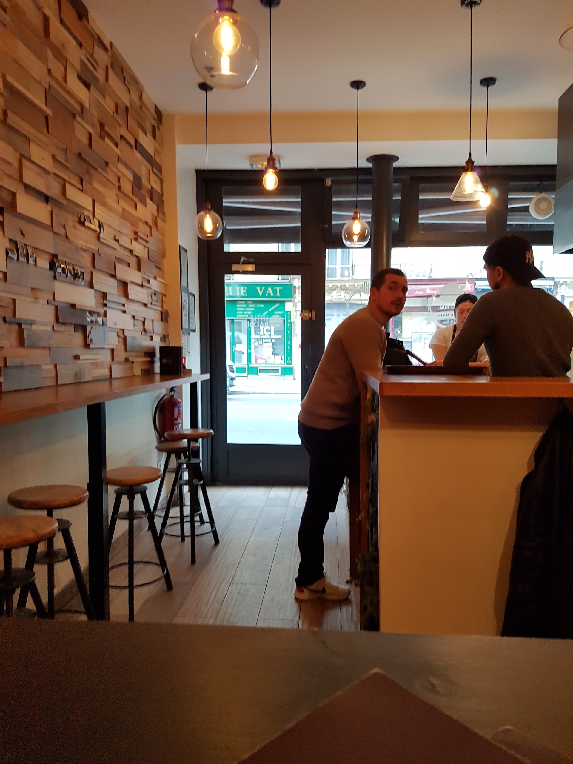 4 étoiles car la perfection est difficile. Mais burger excellent. Surtt le pain Bao. Rapidement mais très bien conçu. Ingrédients bien choisis et recette bien trouvée. J'appréhendais le burger avec un pain bao mais finalement ça marche très bien !!! C'est très bon. À l'arrivée du burger et à la première bouchée on se dit qu'on va vite en reprendre un deuxième tellement c'est bon mais un peu petit, mais ça c'est quand on a les yeux plus gros que le ventre ! En réalité c'est amplement suffisant, en tt cas pour moi. Surtout avec les frites qui sont très bonnes, mélange de pommes de terre et patates douces. Ces dernières sont coupées grossièrement ce qui fait qu'on sent bien la chair et c'est top ! Ils laissent un peu la peau ce qui fait croustiller (on ne la sent pas la.peau pr ceux qui n'aiment pas ne vs inquiétez pas).Le burger au saumon est une tuerie aussi, le morceau de saumon ne blague pas et est succulent !! La sauce IDEM. Bémol : le dessert. Le cheesecake au malteser laissait espérer un super dessert à l'annonce. Mais il arrive dans une boîte en plastique (fait maison ou industriel ?), Et personnellement je ne trouve pas que la texture est semblable à un vrai cheesecake. . Autre bémol : il faudrait refaire les toilettes ! Et oui ça compte quand même. Sinon serveuse très sympathique. Playlist AU TOP !!!! Son superbe avec leur petit objet. Quand on est arrivé le volume était très bien. Un homme (avec une attitude un peu vantarde) est arrivé est l'a monté. C'était du coup un peu fort alors que c'était très bien avant... Mur végétal très beau donnant une bonne atmosphère avec le bois. Bref : bel endroit où l'on mange TRÈS BIEN ! Déjà envie d'y retourner ;)