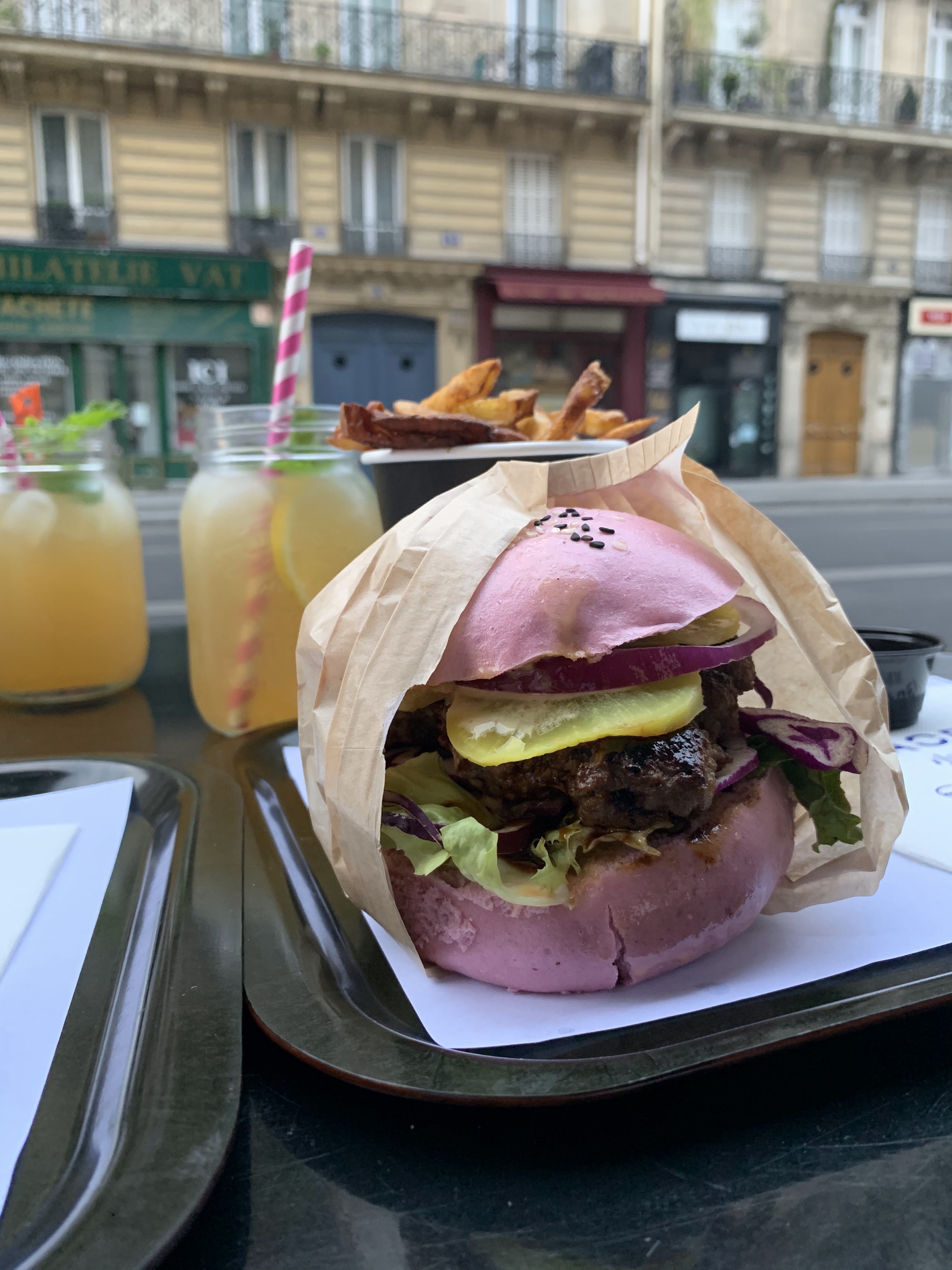 Trop trop bon! Les frites artisanales. Ça change du pain traditionnel à base de farine de riz je pense. Ça doit faire moins gonflé le ventre que le pain classique. La viande est très généreuse, très bien cuite! Personnel très sympathique! J’ai téléphoné pour passer ma commande pour ne pas attendre par ce temps de chaleur à Paris ! J’y retournerai dès que j’en aurai l’occasion!