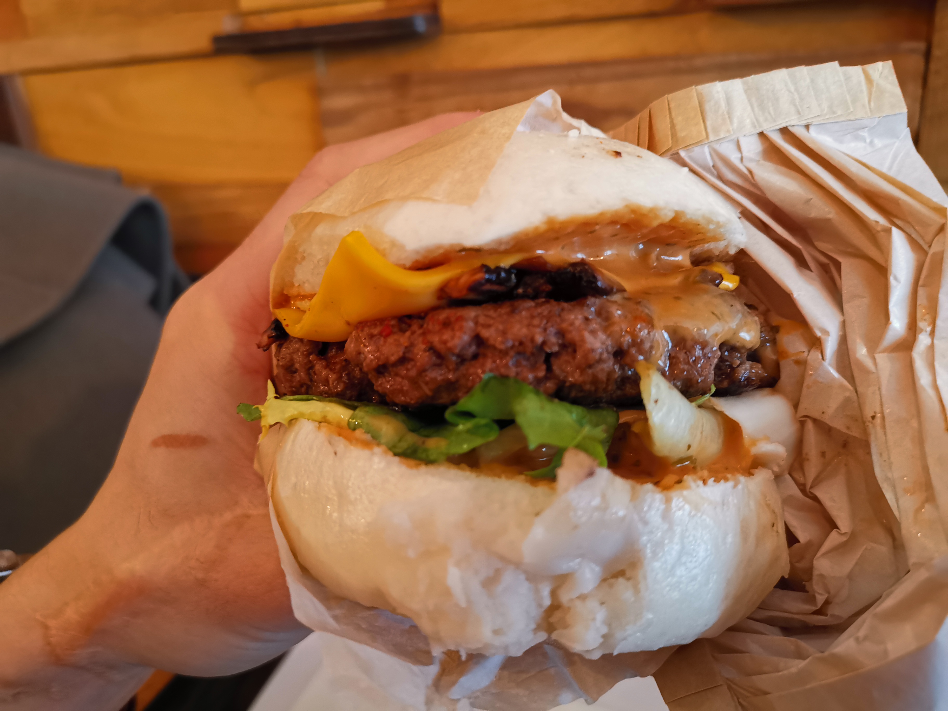 J'adore ! Le cadre est hyper chaleureux et l'idée des Burger avec le pain bao c'est vraiment splendide ! Je recommande énormément ! Les frites aussi saupoudré de paprika et maman que c'est bon !