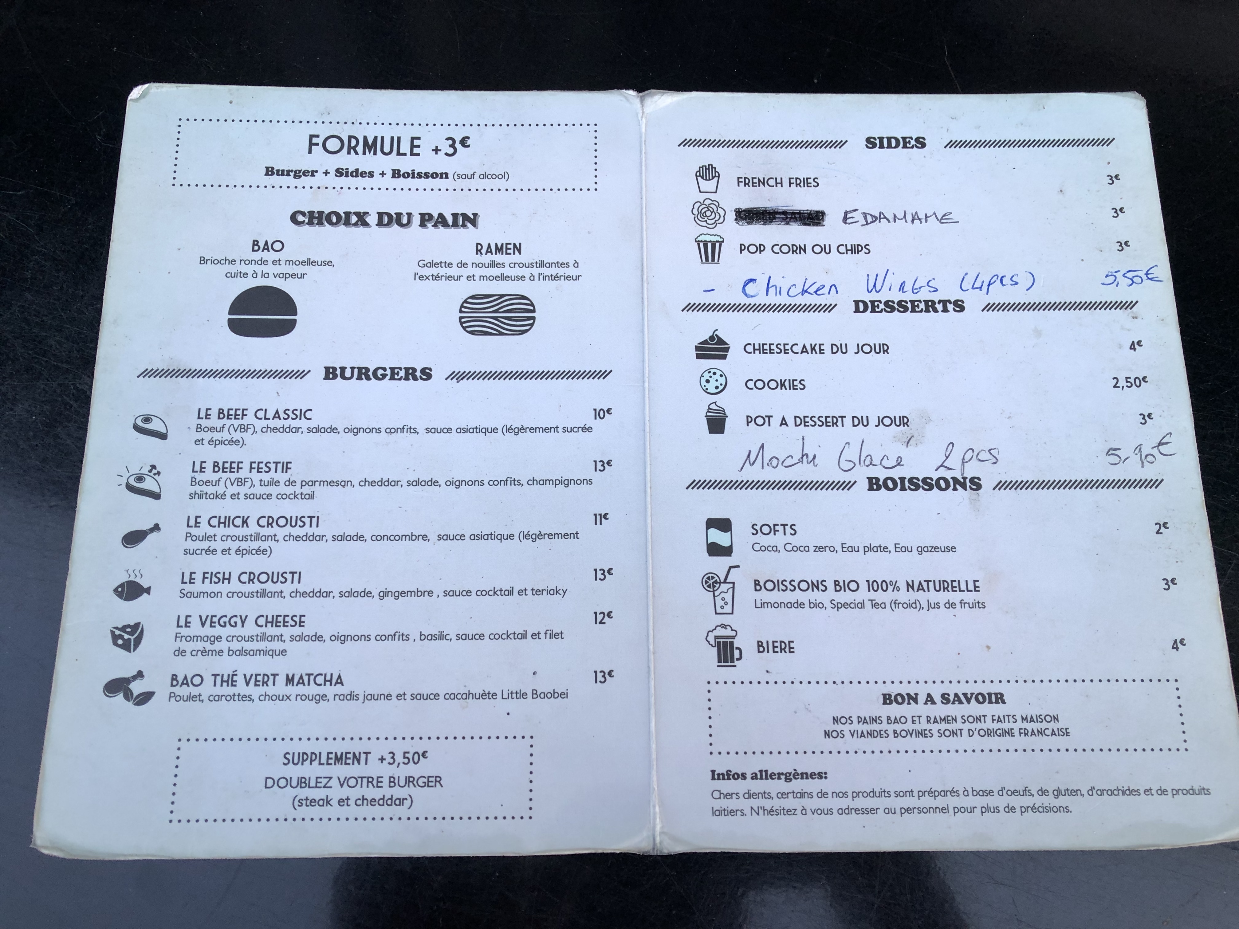 Nous avons commandé sur UberEats, c’était vraiment excellent ! Nous avons pris le burger bao chicken croustillant et vraiment whaou ! Le poulet était tellement tendre et croustillant ! Nous avons pris les gyozas et les frites qui sont également un régal. Je vous recommande à 200%