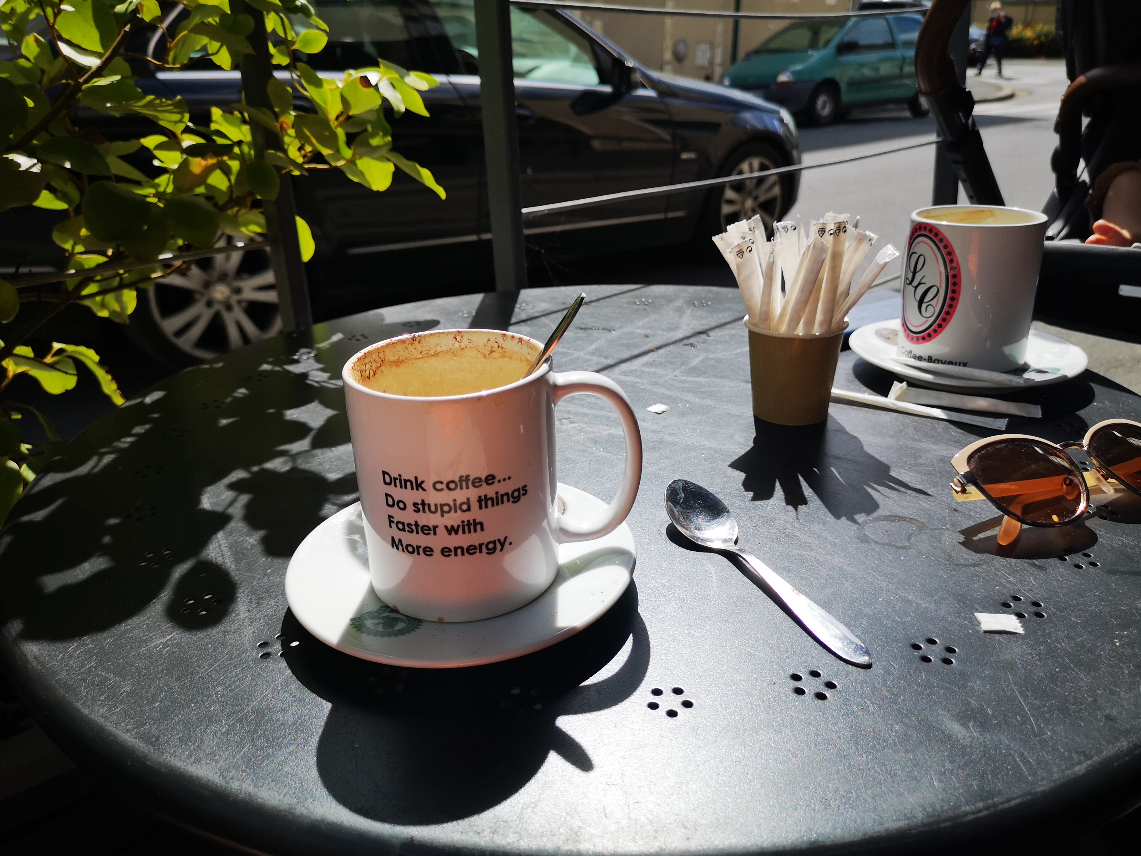 Super café à Bayeaux. Ma femme et moi nous sommes arrêtés pour un café au lait et un croissant.