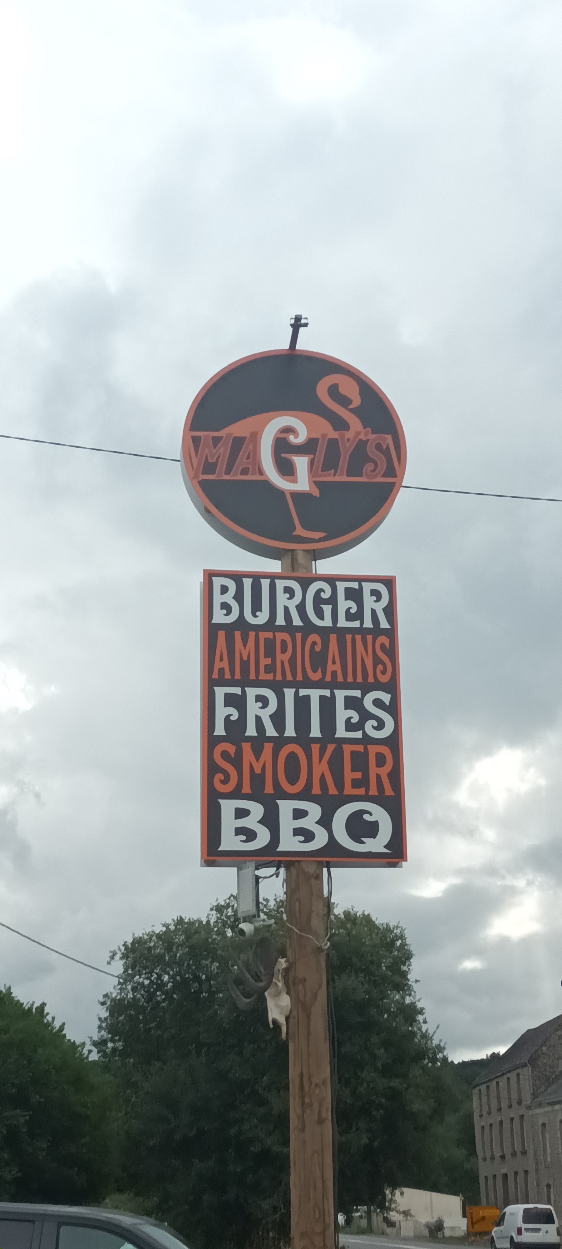 Après en avoir beaucoup entendu parlé et découvert pour la première fois hier soir lors d'une soirée Karaoké, je ne peux que laisser un avis positif de 5/5 pour les trois rubriques concernées. Le seul point négatif que j'y ai trouvé c'est que le restaurant se trouve trop loin de chez moi 😅😅😅. Aimant la nourriture épicée, je suis content d'y avoir trouvé un burger avec une sauce pimentée. Et quel régal, les produits sont de qualité et le pain à Burger, le meilleur que je n'ai jamais mangé. Ayant été déçu un jour des frites cuites au gras de boeuf dans un autre restaurant, j'étais un peu réticent quand à ce mode de cuisson. Peut-être le fait que ce n'était pas des frites fraîches ou d'une autre variété de pommes-de-terre. Au final, je ne sais pas ce qui a été différent mais je peux dire aujourd'hui que, au même titre que le pain à Burger, ce sont les meilleures frites que je n'ai jamais mangé. Étant un gros mangeur, je peux aussi dire que les proportions sont tout à fait adapté à ma capacité d'absorption 😅. Le service était top, le patron très agréable et ouvert à la discussion et l'ambiance familiale nous a tout de suite mis à l'aise. Je n'ai pas encore parlé du décor, tout est préparé dans une caravane américaine et le dépaysement fut total. Dernier bon point, ayant fait notre première visite lors d'une soirée Karaoké et en en ayant moi-même animé il y a quelques années, j'ai été surpris de la qualité du matériel, de l'organisation et de la gentillesse de l'animateur. Je n'ai plus le nom de sa société en tête mais je sais qu'il s'appelle Colin et vous trouverez sa page fb en allant sur celle du Magly's. Je vais m'arrêter là malgré que j'aurai d'autres choses positives à dire mais je crois que mon avis commence à être un peu long. Vous pouvez y aller les yeux fermés et même si les prix sont légèrement plus élevés que dans d'autres restaurants de ce type, vous comprendrez vite que cette petite différence est justifiée par la qualité de leurs produits, par la quantité servie et par leur travail, vous ne serez pas déçu.