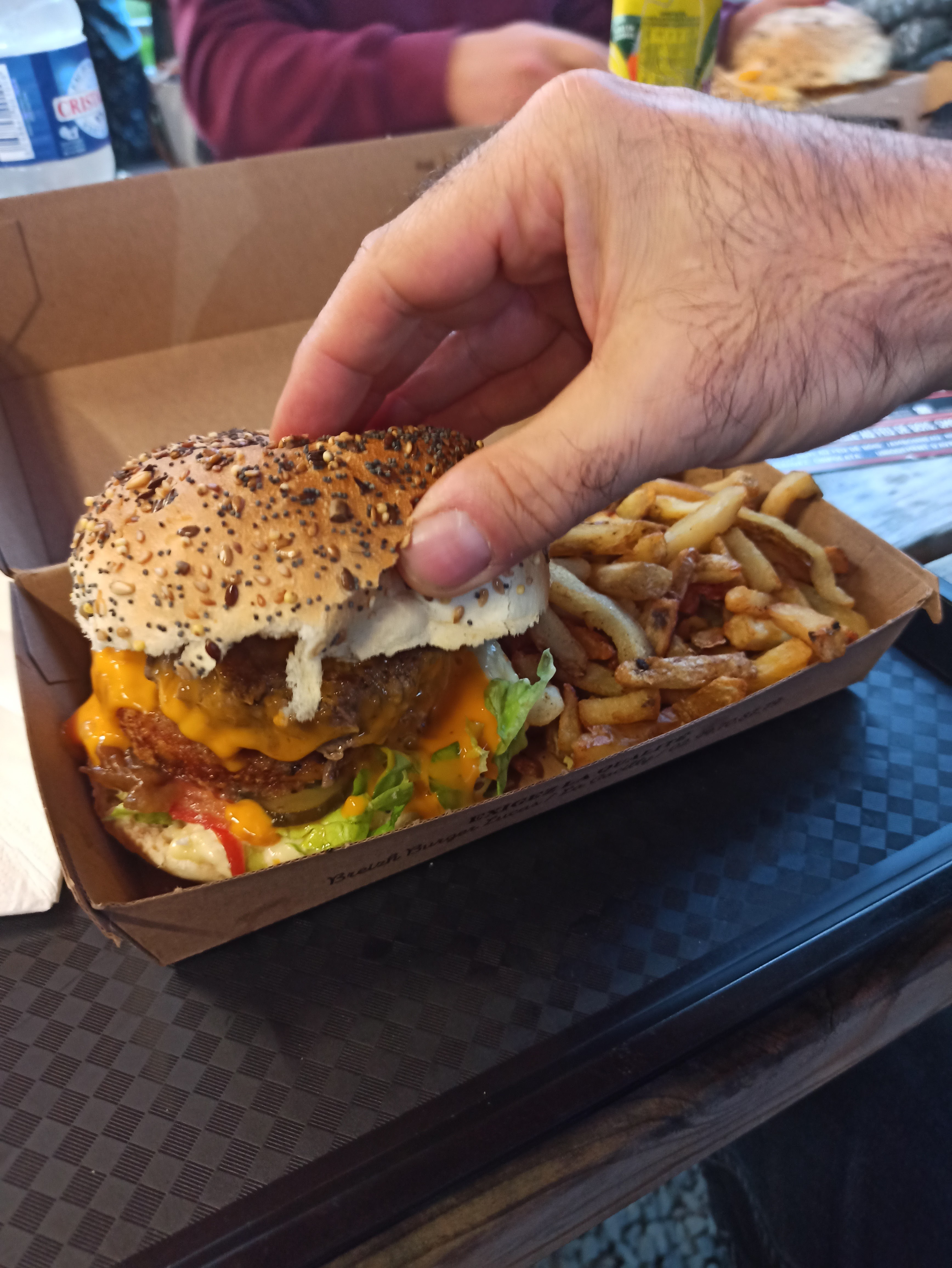 Superbe découverte ! On en ressort repu ! Délicieux hamburger, frites maison à la graisse de bœuf et le nappage miam miam... Je recommande !! Super accueil 😁😁😁