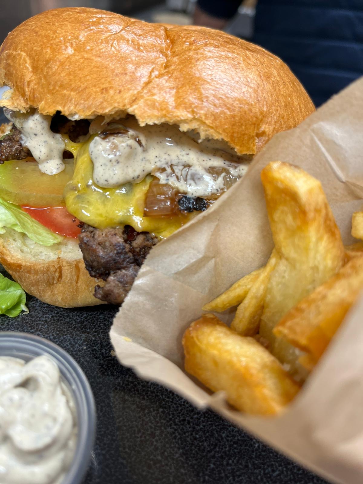 Première commande de 2 menus burger et une salade caesar : livraison rapide et ponctuelle, les burgers sont excellents, avec des ingrédients de qualité. Cuisson des steaks parfaite, frites maison, les plats sont copieux, on en a pour son argent. Personnel très sympathique et souriant, une adresse que je recommande sans hésiter.
